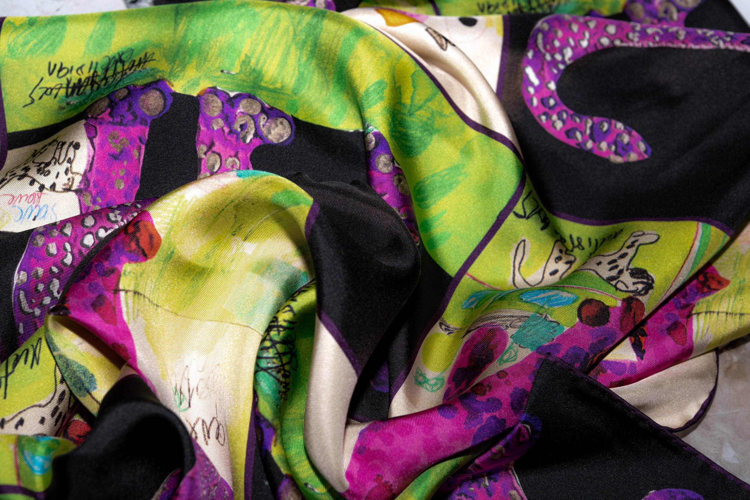 The collection features five silk scarves, each adorned with vibrant depictions of Armenia’s iconic wildlife, including the elusive leopard, graceful fish, soaring birds, and the resilient wild boar. Through intricate designs and masterful artistry, these scarves capture the spirit of Armenia’s untamed landscapes, blending tradition with contemporary artistic expression.