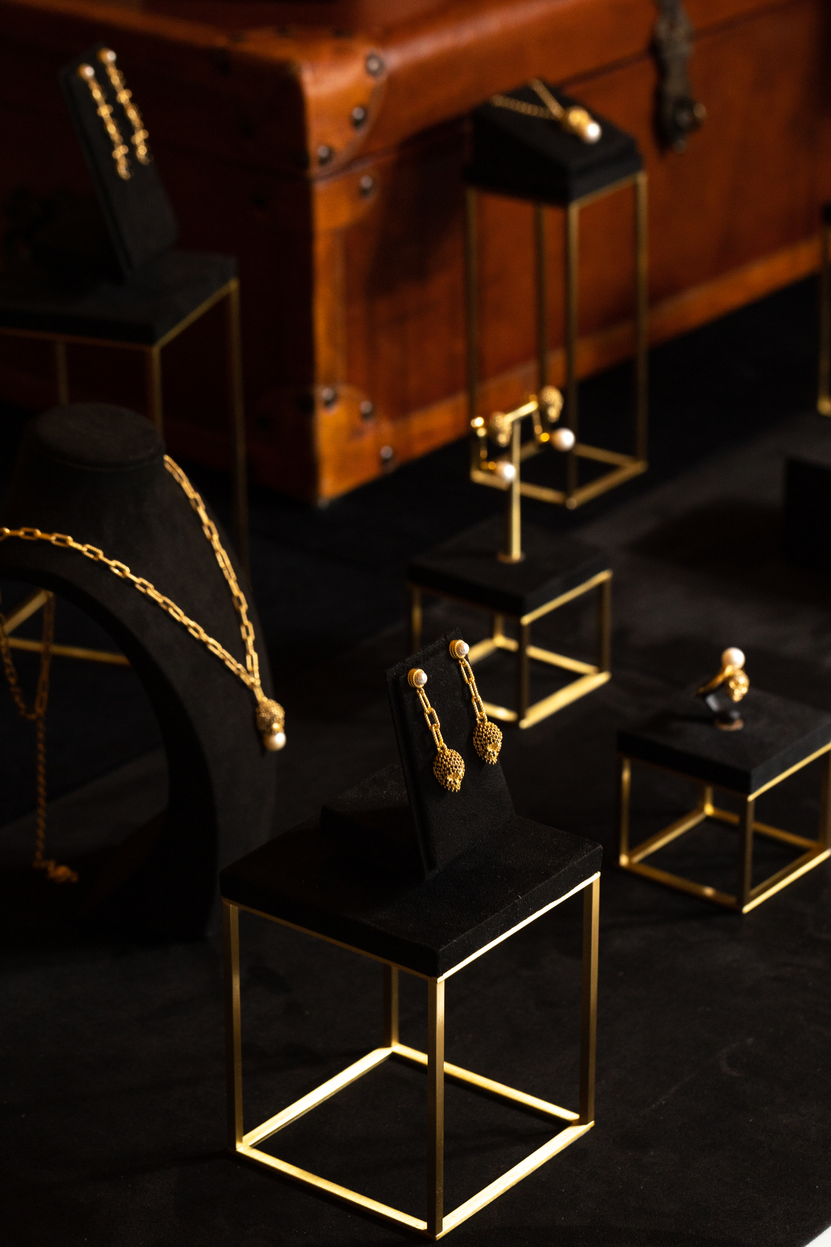 Gold, silver, pearls, white and black gems are the materials that define the collection, distinguished by intricate craftsmanship such as twists, crossings, and meticulously refined settings.
