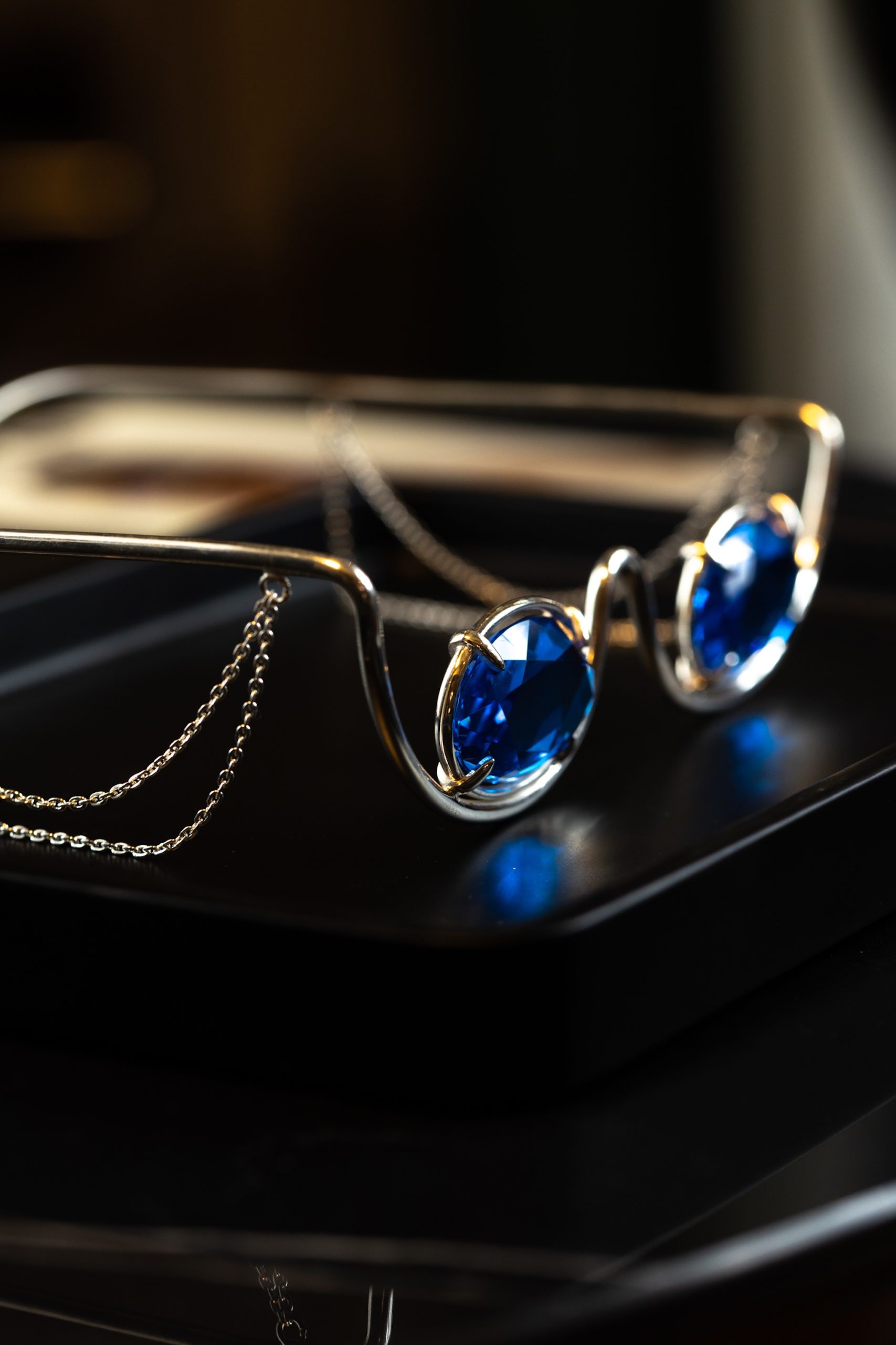 The ‘Eyeconic’ line is a stunning fusion of luxury and artistry, featuring frames crafted from sterling silver and carefully selected colored gemstones. Each stone is specially cut to enhance the design, creating a unique and exclusive piece. This collection is designed to elevate fashionable looks and make any style truly exceptional.