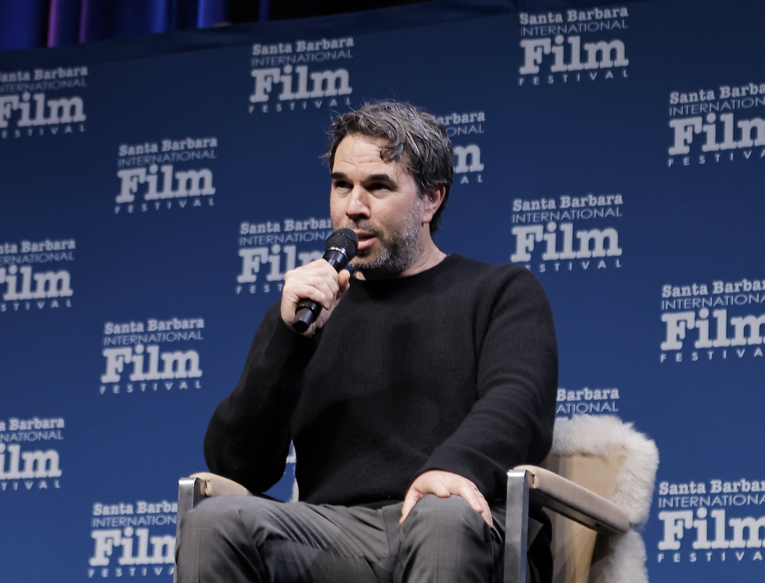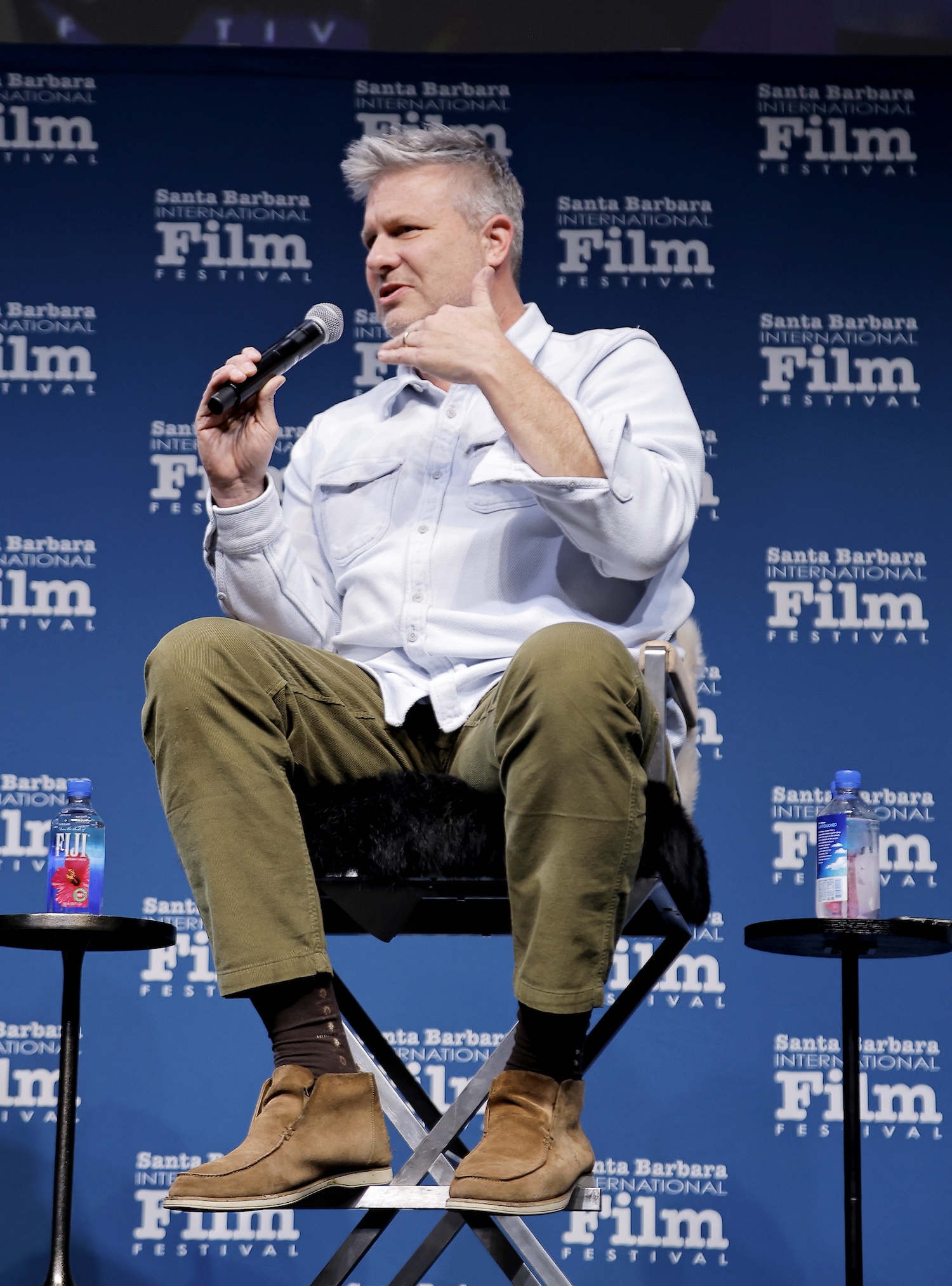 SANTA BARBARA, CALIFORNIA - FEBRUARY 08: Peter Straughan speaks onstage at the writers panel at the 40th Santa Barbara International Film Festival on February 08, 2025 in Santa Barbara, California. (Photo by Tibrina Hobson/Getty Images for Santa Barbara International Film Festival)