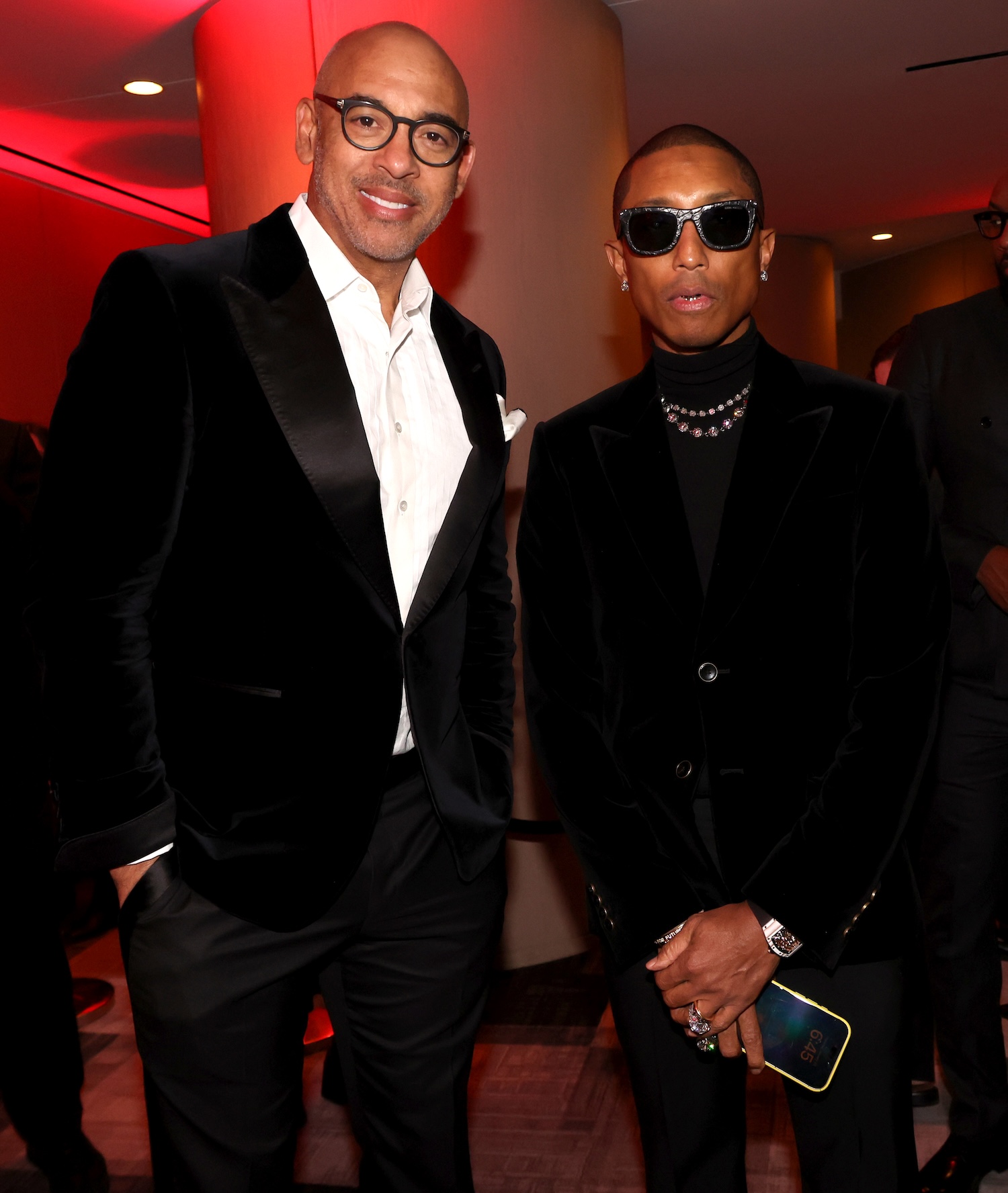 LOS ANGELES, CALIFORNIA - JANUARY 29: (L-R) Harvey Mason jr., CEO, the Recording Academy and Pharrell Williams attend the 2026 Recording Academy Honors presented by The Black Music Collective during the 68th GRAMMY Awards on January 29, 2026 in Los Angeles, California. (Photo by Johnny Nunez/Getty Images for The Recording Academy)