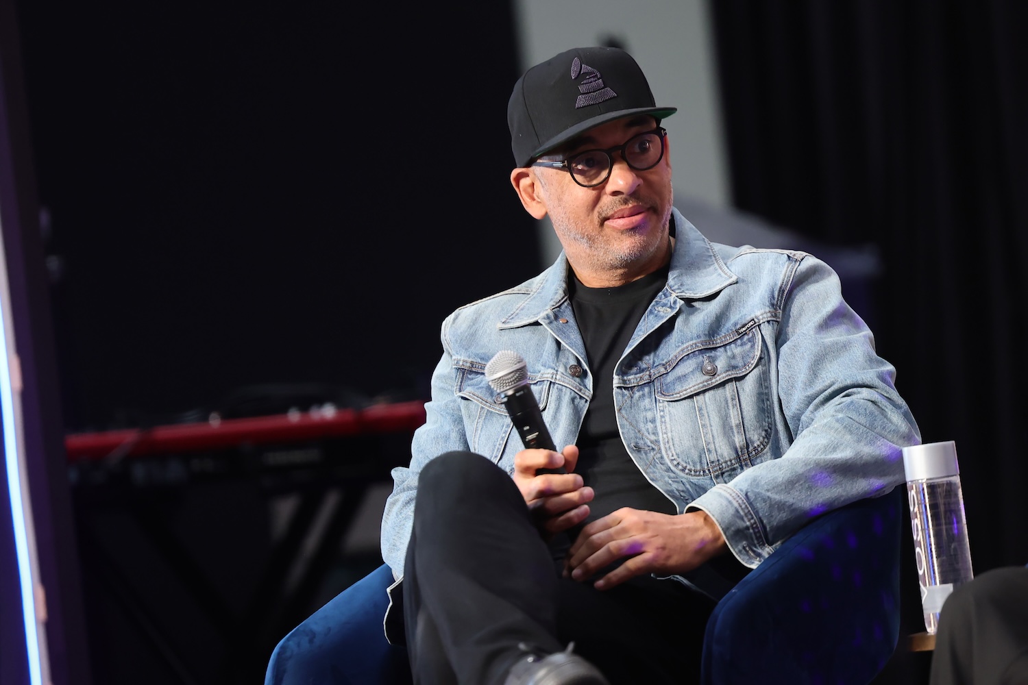 LOS ANGELES, CALIFORNIA - JANUARY 29: Harvey Mason jr., CEO, the Recording Academy speaks onstage during Forging Tomorrow's Music Landscape Today at GRAMMY House during the 68th GRAMMY Awards at Rolling Greens on January 29, 2026 in Los Angeles, California. (Photo by Emma McIntyre/Getty Images for The Rceording Academy )