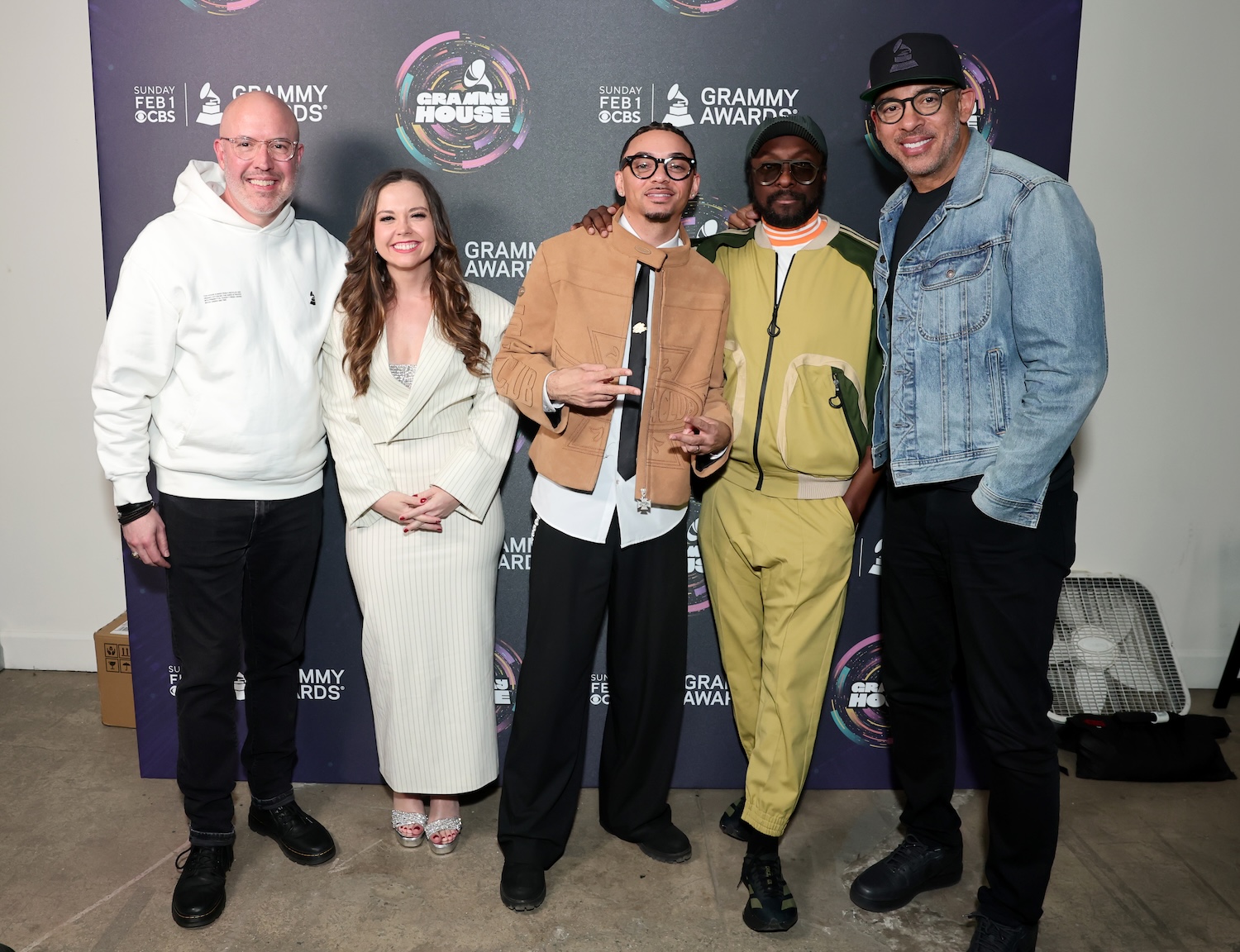 LOS ANGELES, CALIFORNIA - JANUARY 29: (L-R) Todd Dupler, Sierra Hull, Miles Minnick, will.i.am and Harvey Mason jr., CEO, the Recording Academy, attend Forging Tomorrow's Music Landscape Today at GRAMMY House during the 68th GRAMMY Awards at Rolling Greens on January 29, 2026 in Los Angeles, California. (Photo by Emma McIntyre/Getty Images for The Rceording Academy )