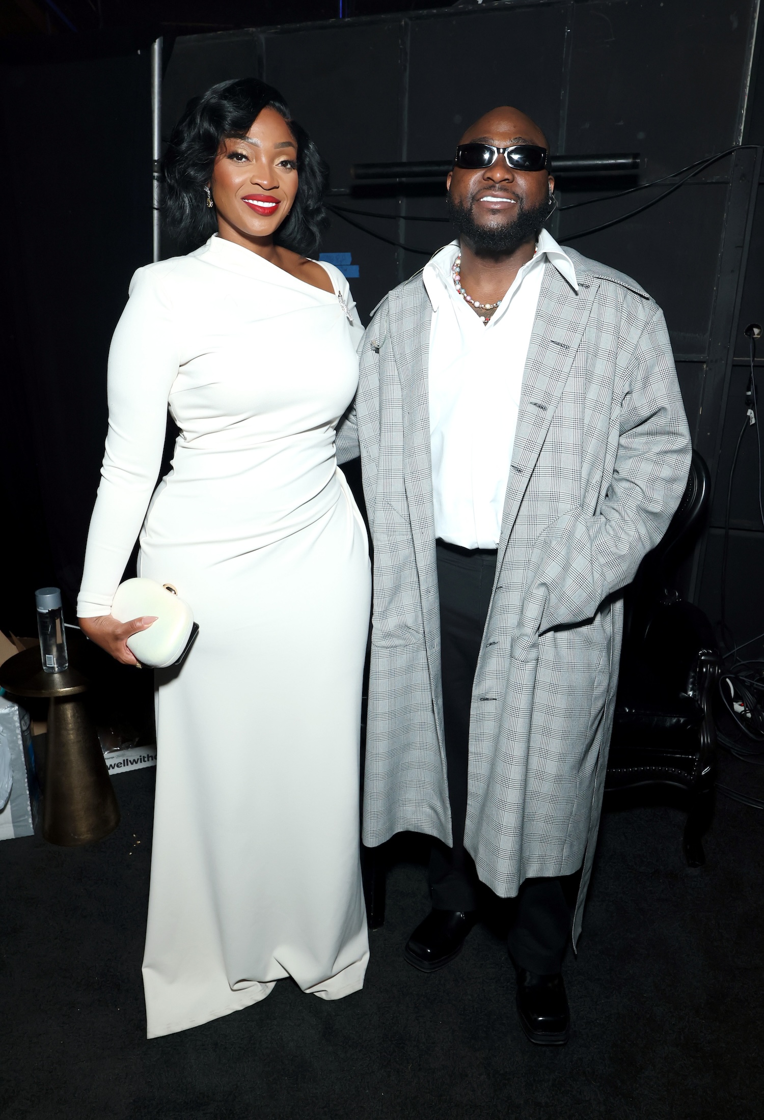 LOS ANGELES, CALIFORNIA - JANUARY 29: (L-R) Sharon Ademefun and Davido attend Global Mixtape at GRAMMY House during the 68th GRAMMY Awards at Rolling Greens on January 29, 2026 in Los Angeles, California. (Photo by Monica Schipper/Getty Images for The Recording Academy)
