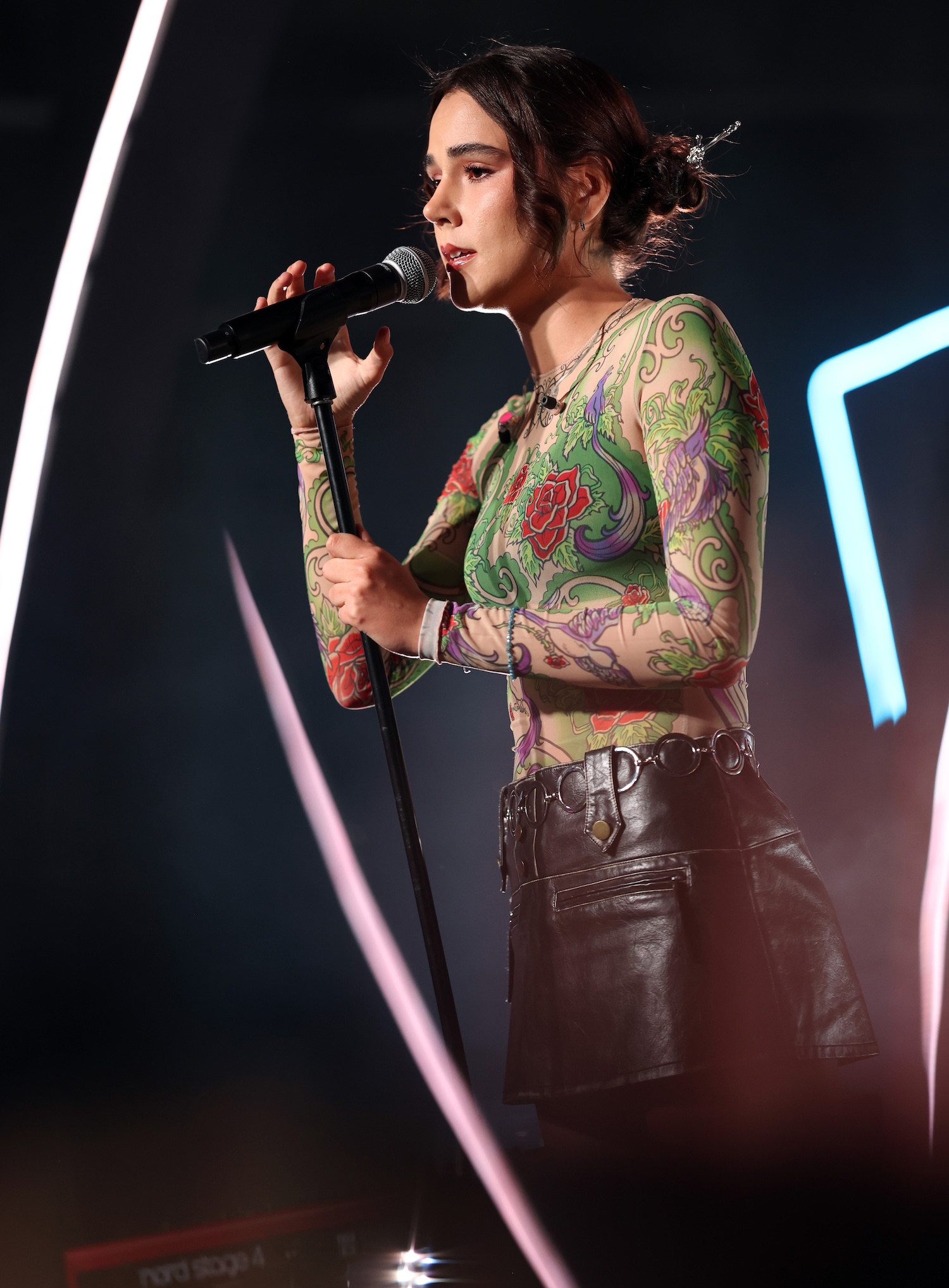 LOS ANGELES, CALIFORNIA - JANUARY 29: (L-R) Paloma Morphy and Me Dicen Jos perform on stage at the Global Mixtape at GRAMMY House during the 68th GRAMMY Awards at Rolling Greens on January 29, 2026 in Los Angeles, California. (Photo by Monica Schipper/Getty Images for The Recording Academy)