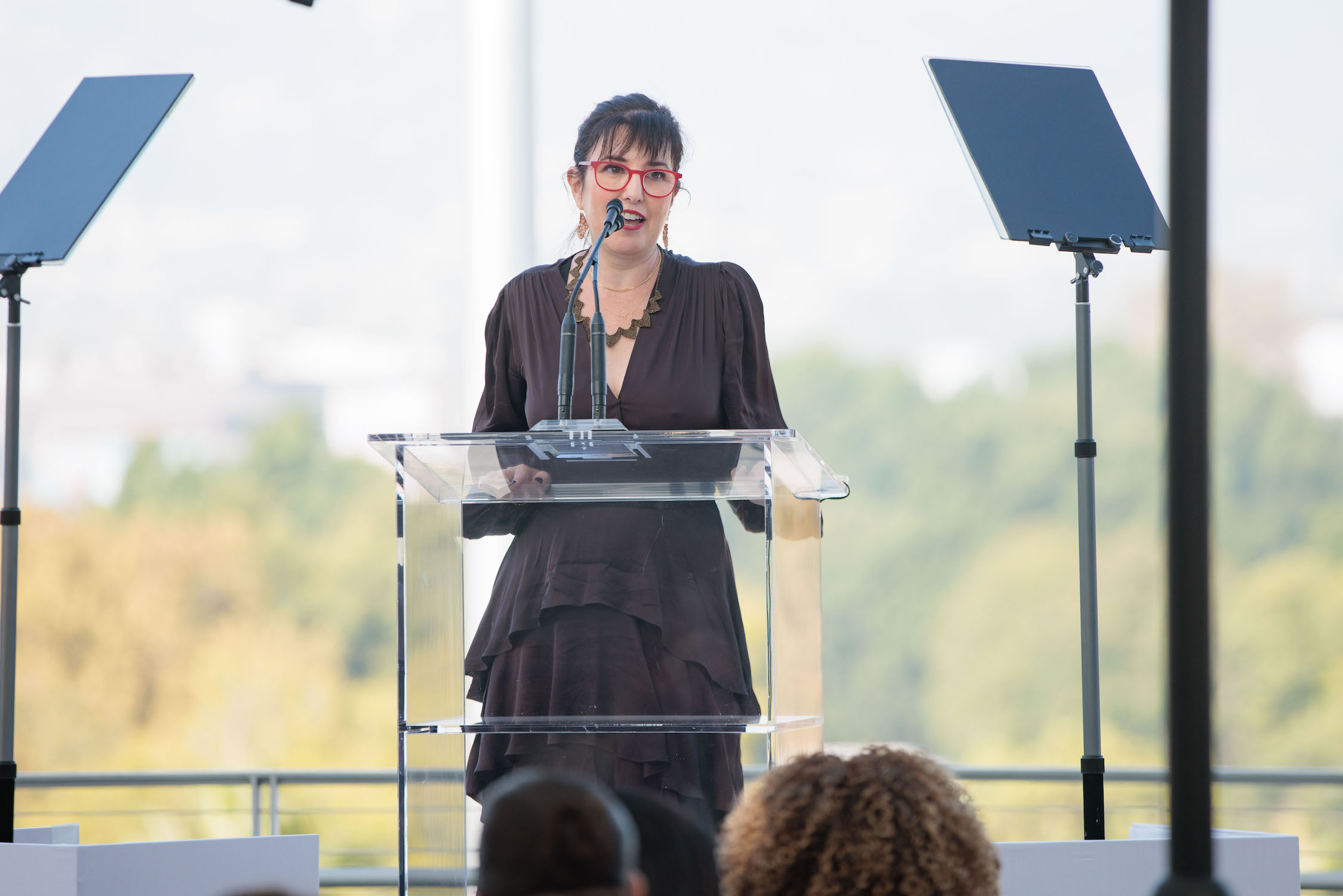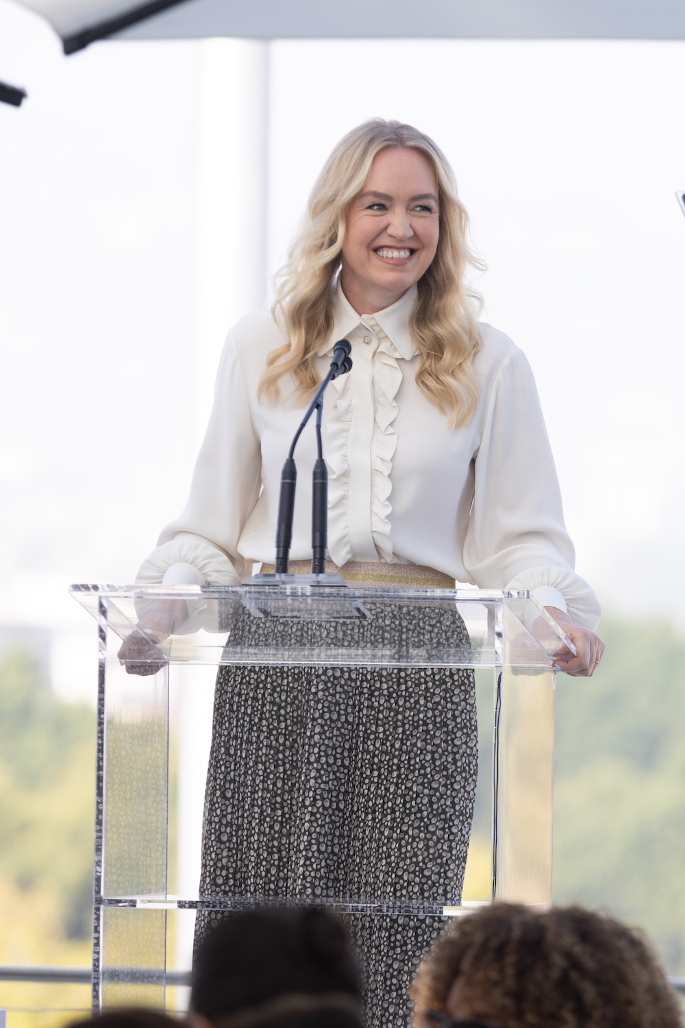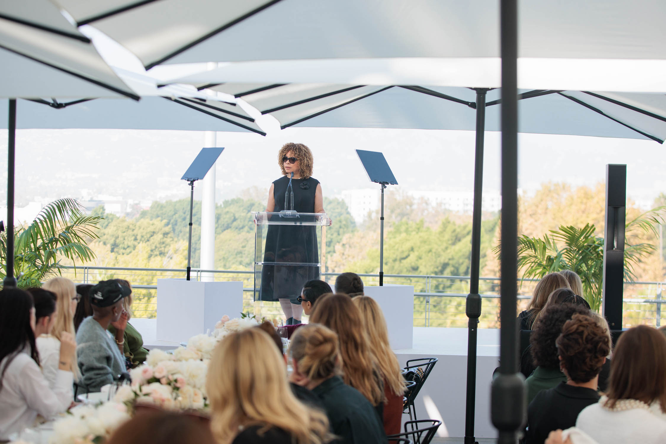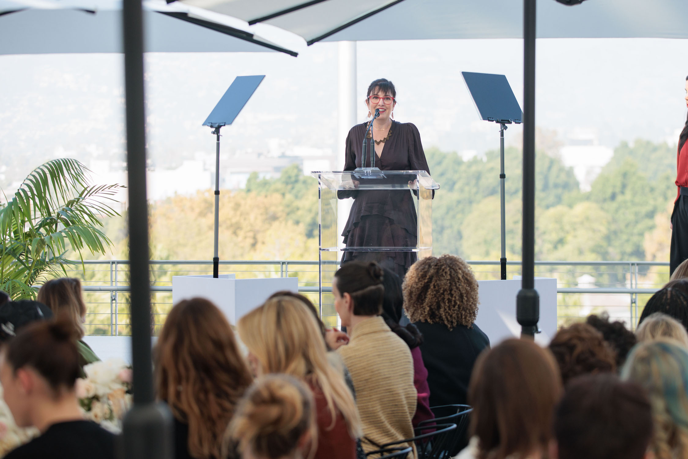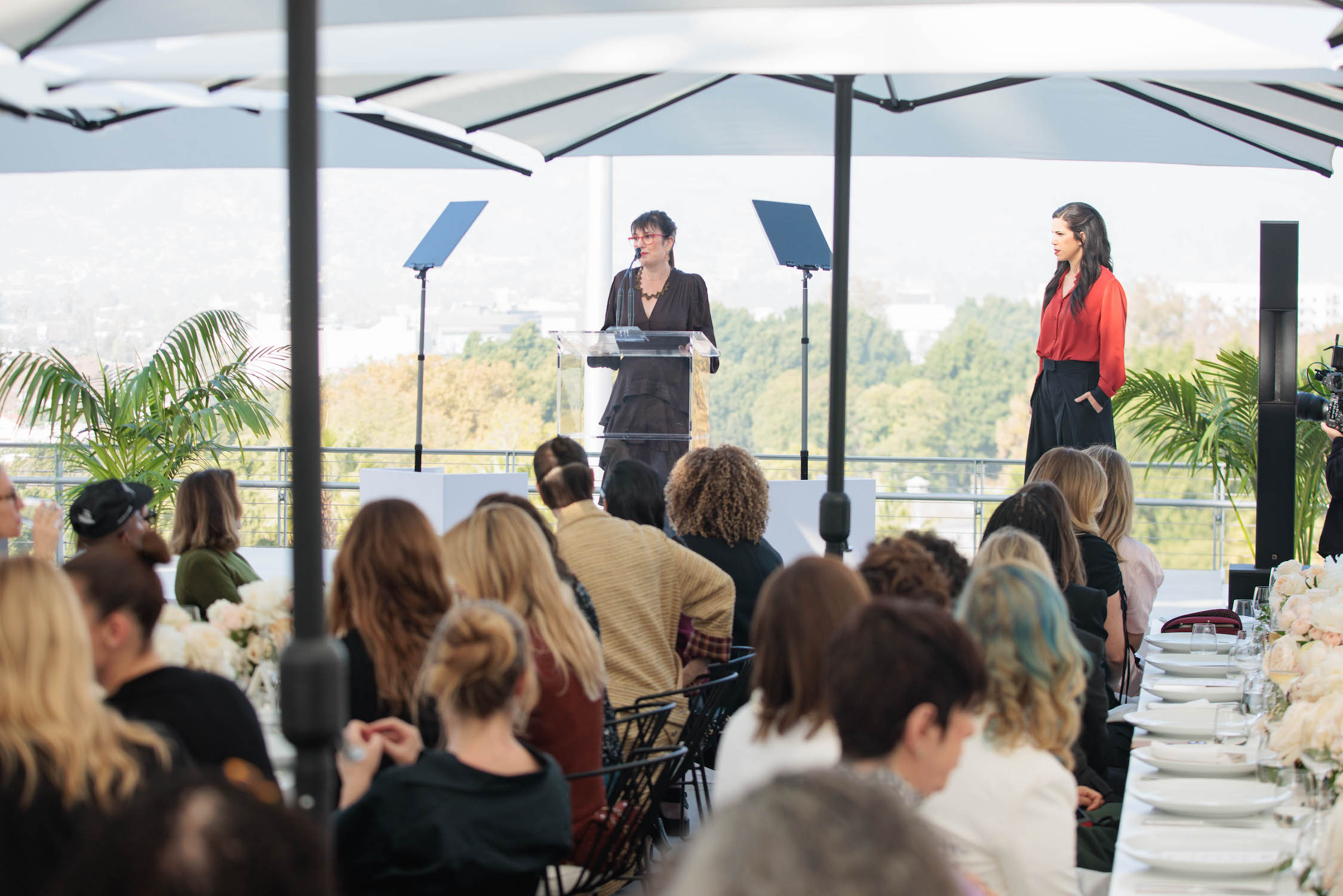 The luncheon at the Academy Museum of Motion Pictures was attended by Academy governors and leaders, and women from across the film industry, including Pam Abdy, Stephanie Allain, Debbie Allen, Maude Apatow, Colleen Atwood, Odessa A’Zion, Stacey Battat, Lucy Bevan, Thora Birch, Janicza Bravo, Mary Bronstein, Alice Brooks, Patricia Cardoso, Ruth E. Carter, Kerry Condon, Embeth Davidtz, Zoey Deutch, Kaitlyn Dever, Amelia Dimoldenberg, Barbie Ferreira, Claire Foy, Amy Homma, Lynette Howell Taylor, Kate Hudson, Patty Jenkins, Felicity Jones, Laura Karpman, Riley Keough, Julia Louis-Dreyfus, Emma Mackey, Leslie Mann, Allison McGourty, Dylan Meyer, Indya Moore, Tig Notaro, Katy O’Brian, Sarah Paulson, Arianne Phillips, Alicia Silverstone, Kristen Stewart, Kim Taylor-Coleman, Tessa Thompson, Nancy Nugent Title, Diane Warren and Janet Yang. The afternoon featured opening remarks by Academy President Lynette Howell Taylor , followed by costume designer Ruth E. Carter, who presented this year’s Gold Fellowships for Women to recipients Alina Simone (U.S. fellow) and Marlén Viñayo(non-U.S. fellow). Actor, director and producer Kristen Stewart delivered a keynote presentation.