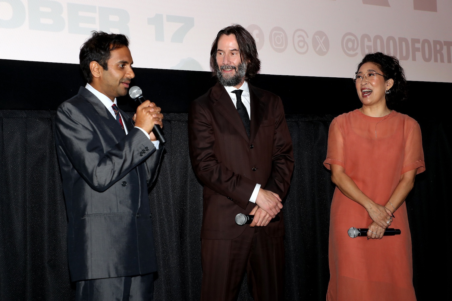 AZIZ ANSARI, SANDRA OH And KEANU REEVES bring GOOD FORTUNE to a special event screening in New York! Fun red carpet pictures