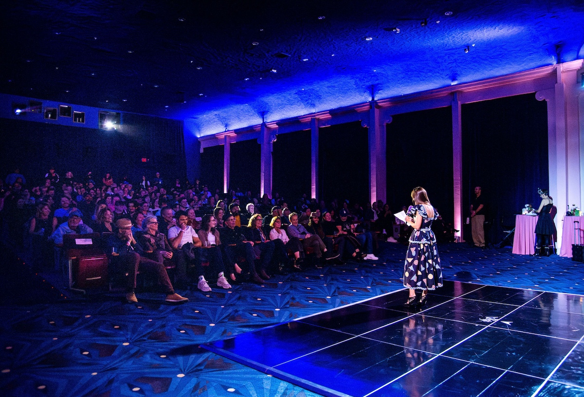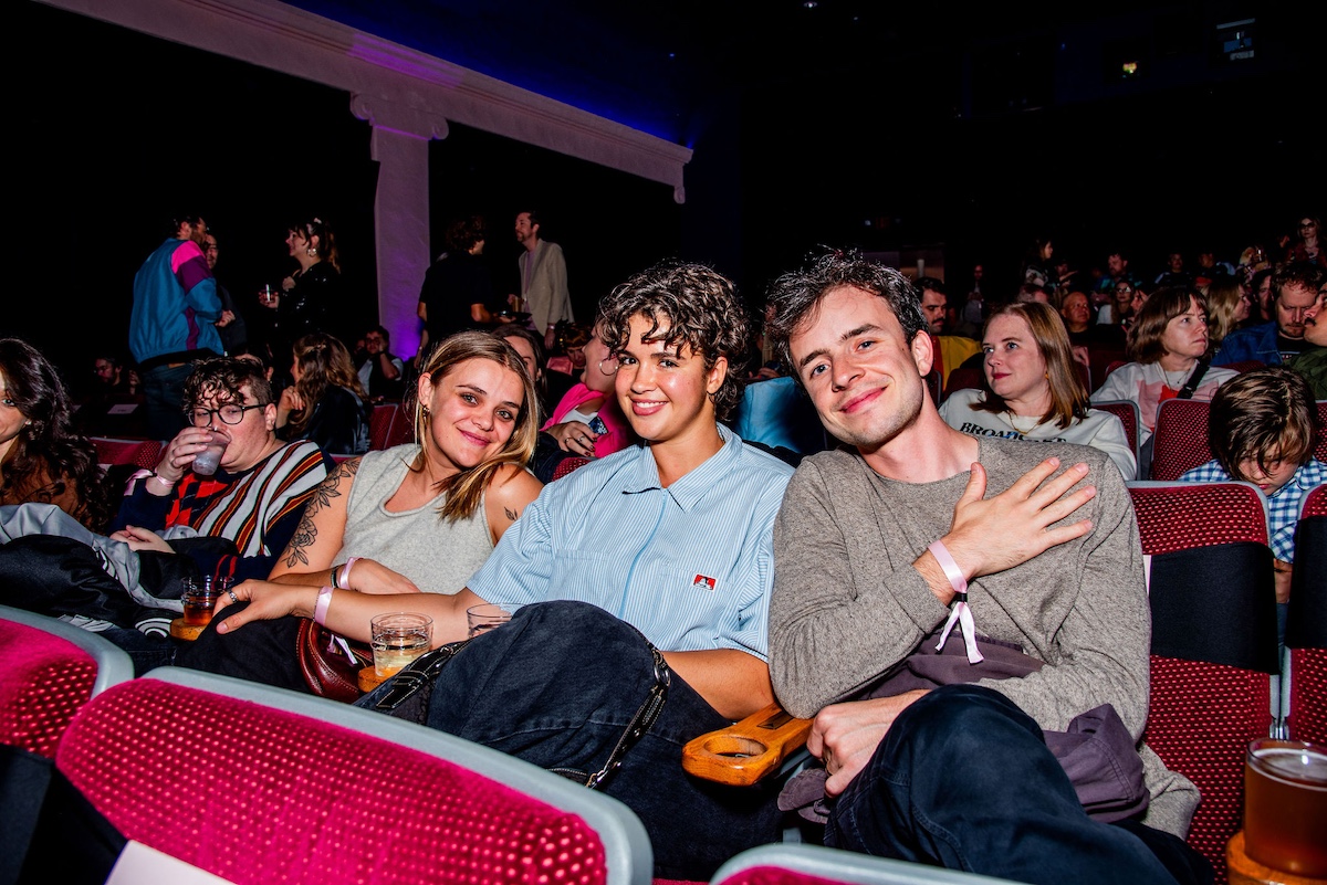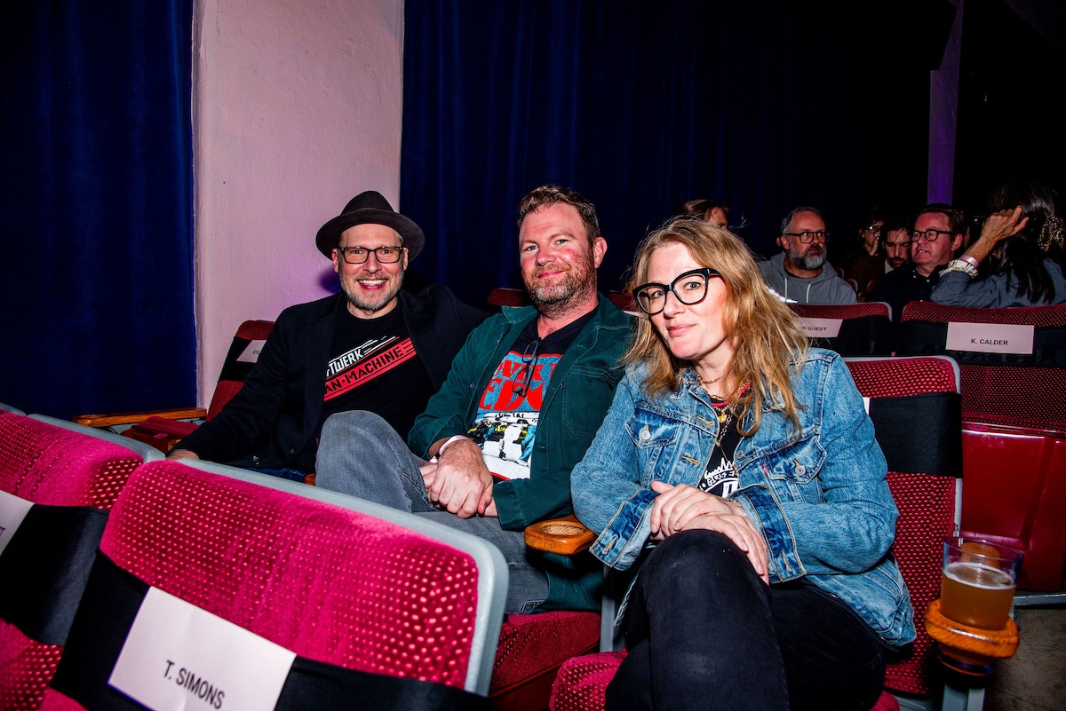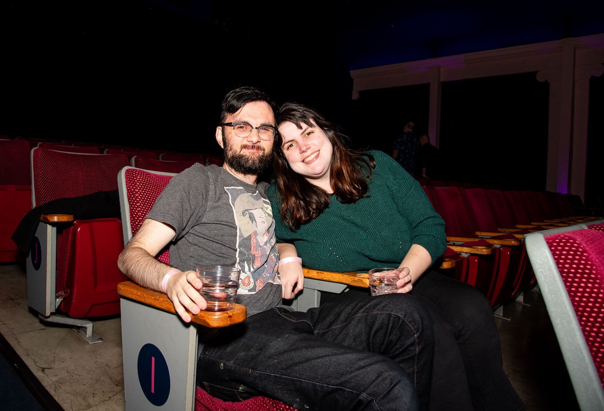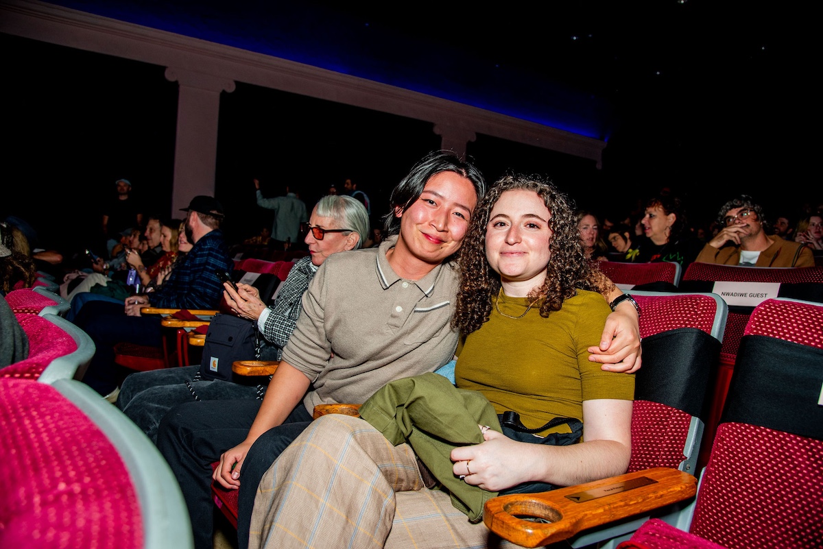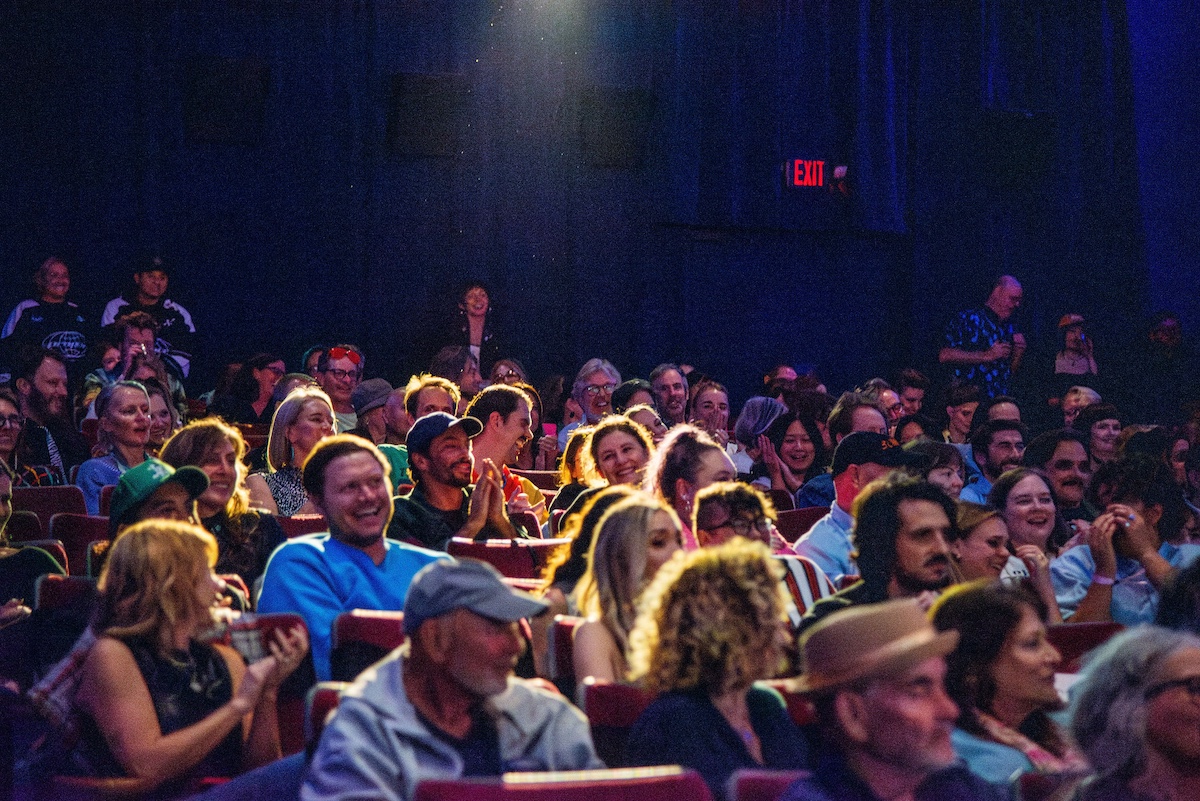 Throughout the night, surprise moments kept the crowd roaring. Tim Simons whispered “unbelievable” Hollywood gossip into two audience members’ ears; Kumail Nanjiani and Emily V. Gordon told their love story through movies that shaped their lives; Blakely Thornton delivered a comedic masterclass reviewing Scream fashion; Mary Elizabeth Ellis led a talk-along performance from Waiting for Guffman; Ify Nwadiwe stormed the stage as Vidiots’ self-appointed “bouncer”; and Tai Leclaire explained, convincingly, that Twister made him gay.