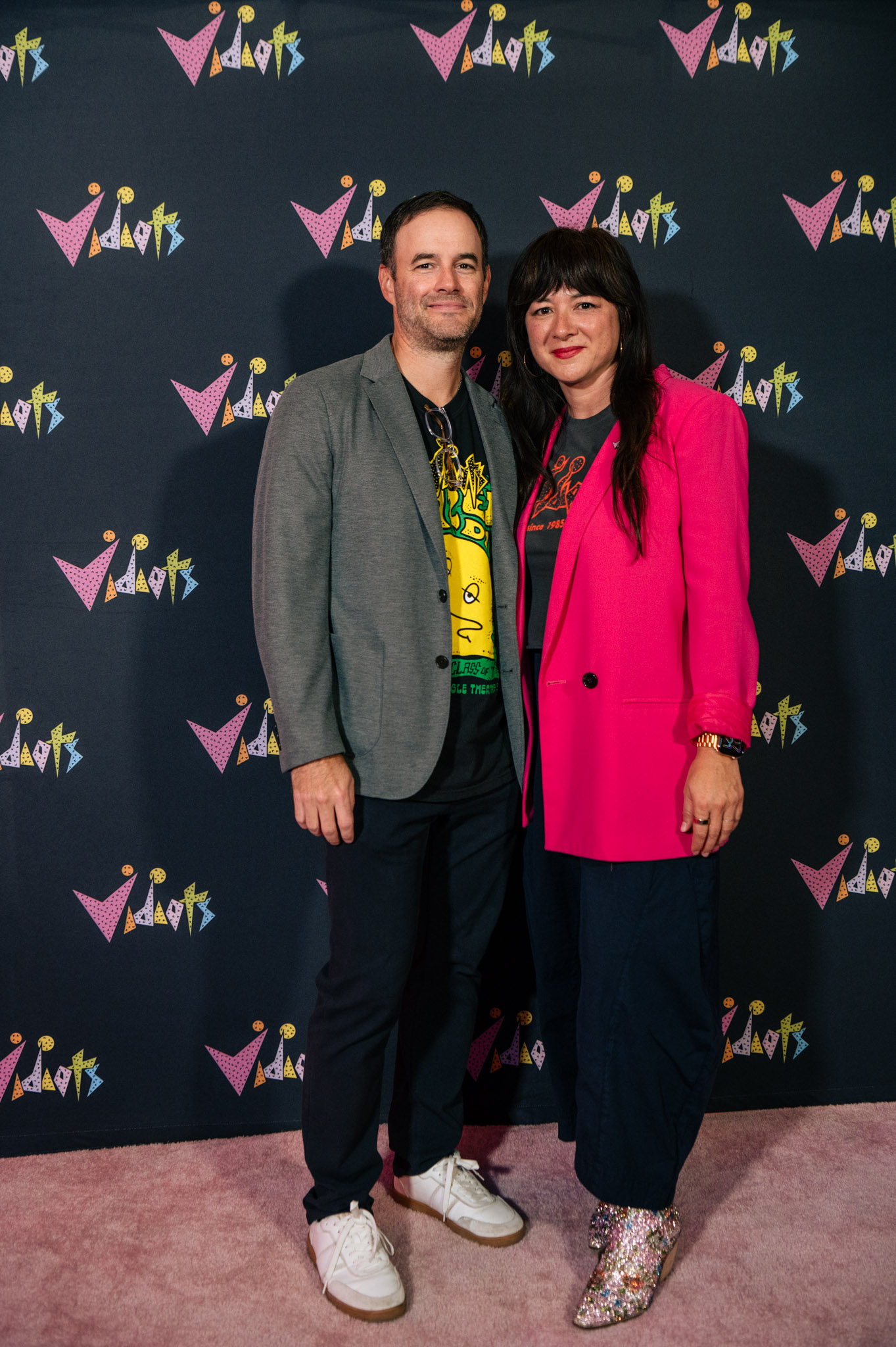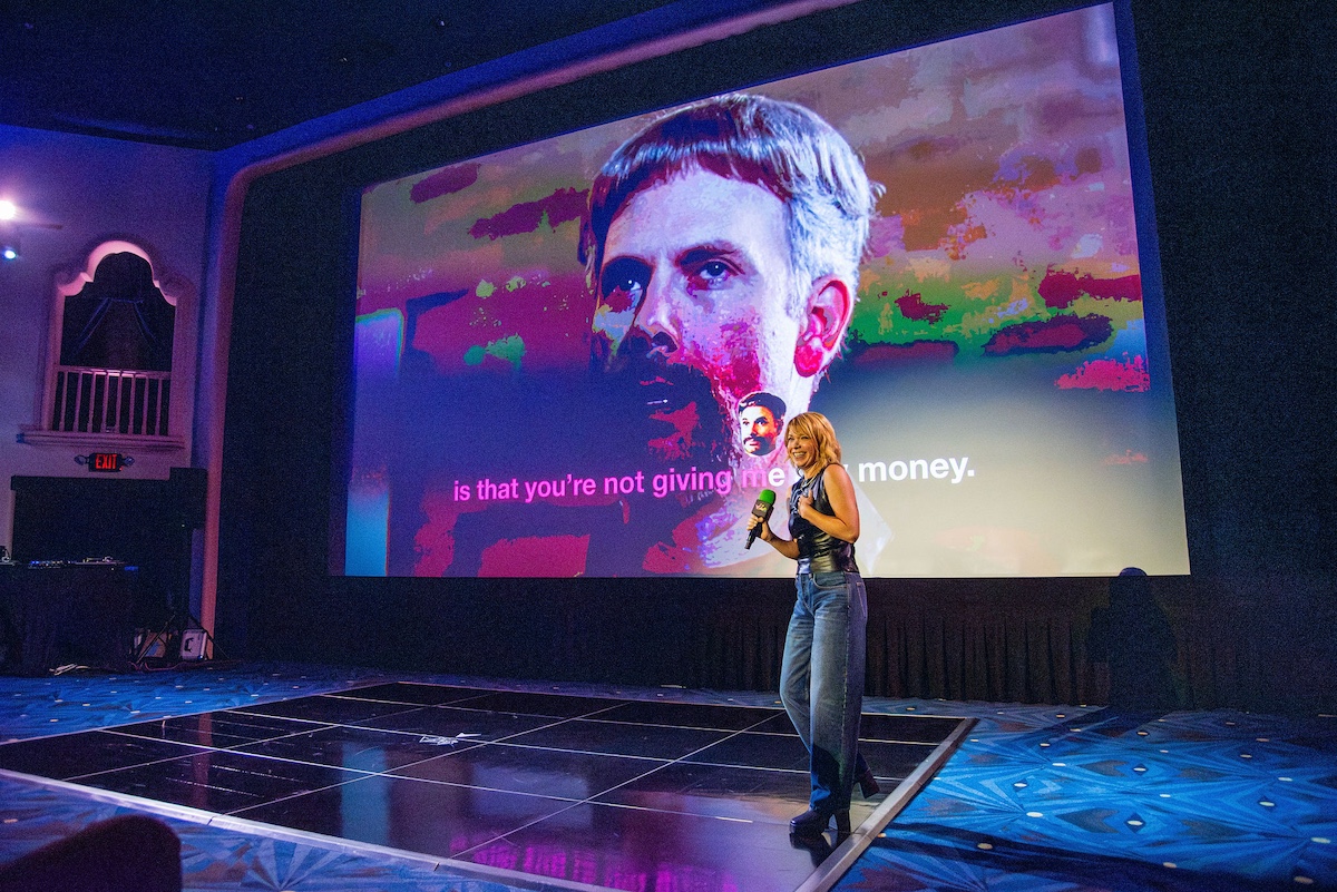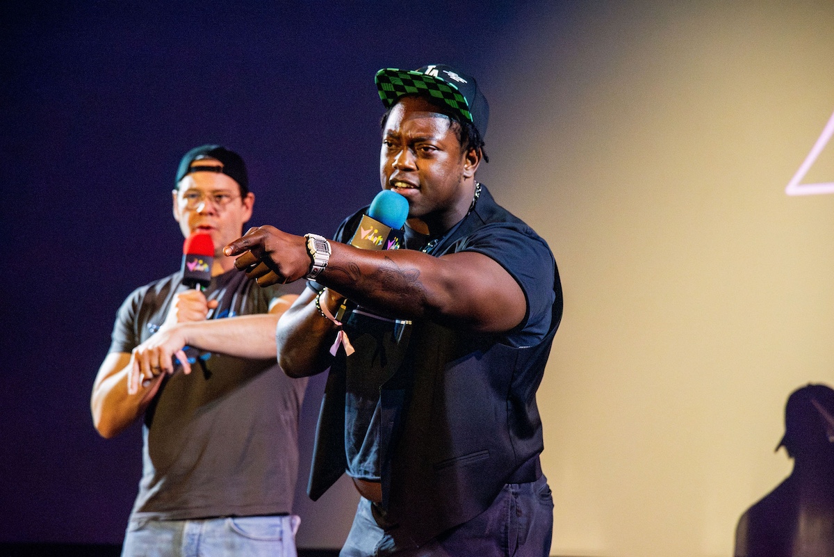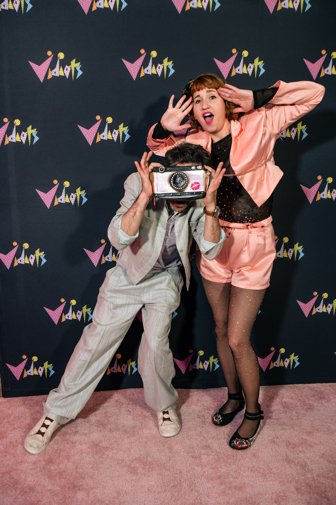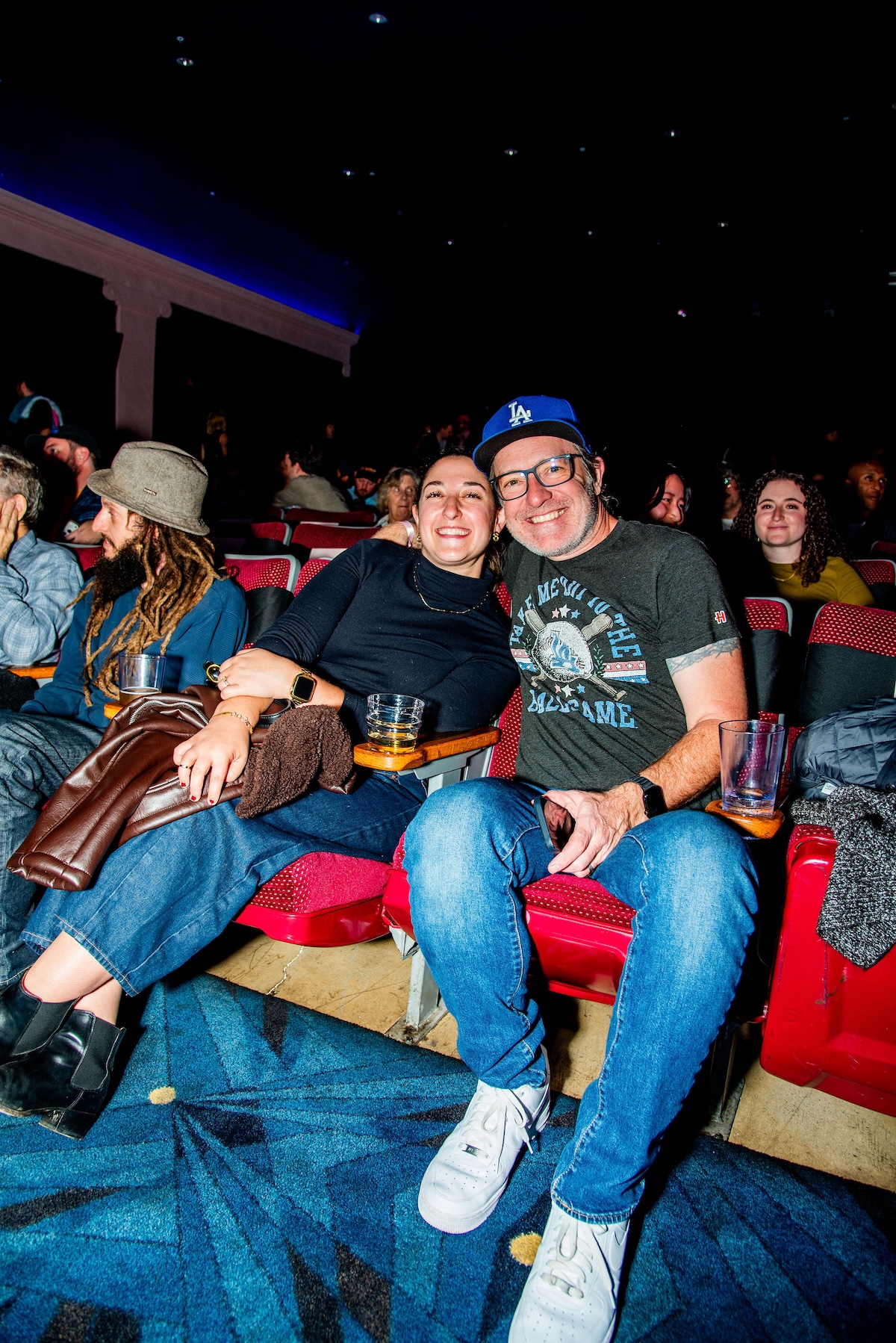 Throughout the night, surprise moments kept the crowd roaring. Tim Simons whispered “unbelievable” Hollywood gossip into two audience members’ ears; Kumail Nanjiani and Emily V. Gordon told their love story through movies that shaped their lives; Blakely Thornton delivered a comedic masterclass reviewing Scream fashion; Mary Elizabeth Ellis led a talk-along performance from Waiting for Guffman; Ify Nwadiwe stormed the stage as Vidiots’ self-appointed “bouncer”; and Tai Leclaire explained, convincingly, that Twister made him gay.