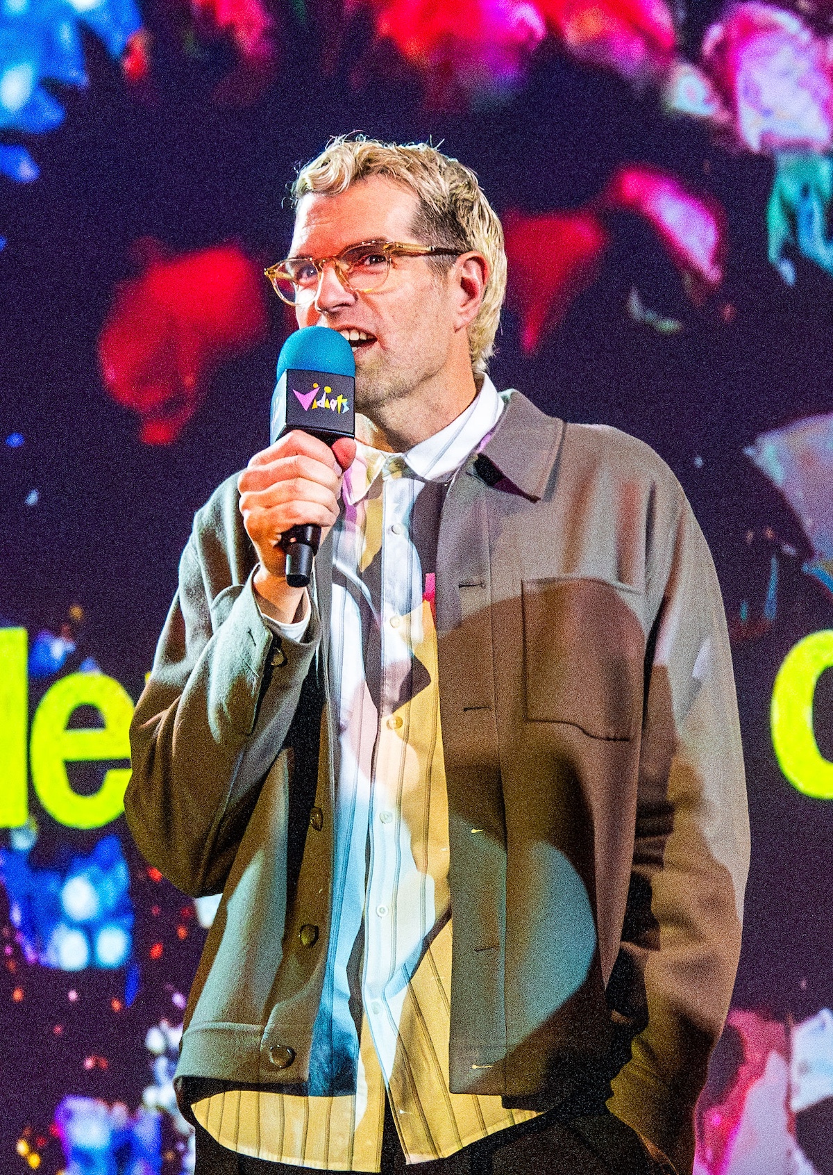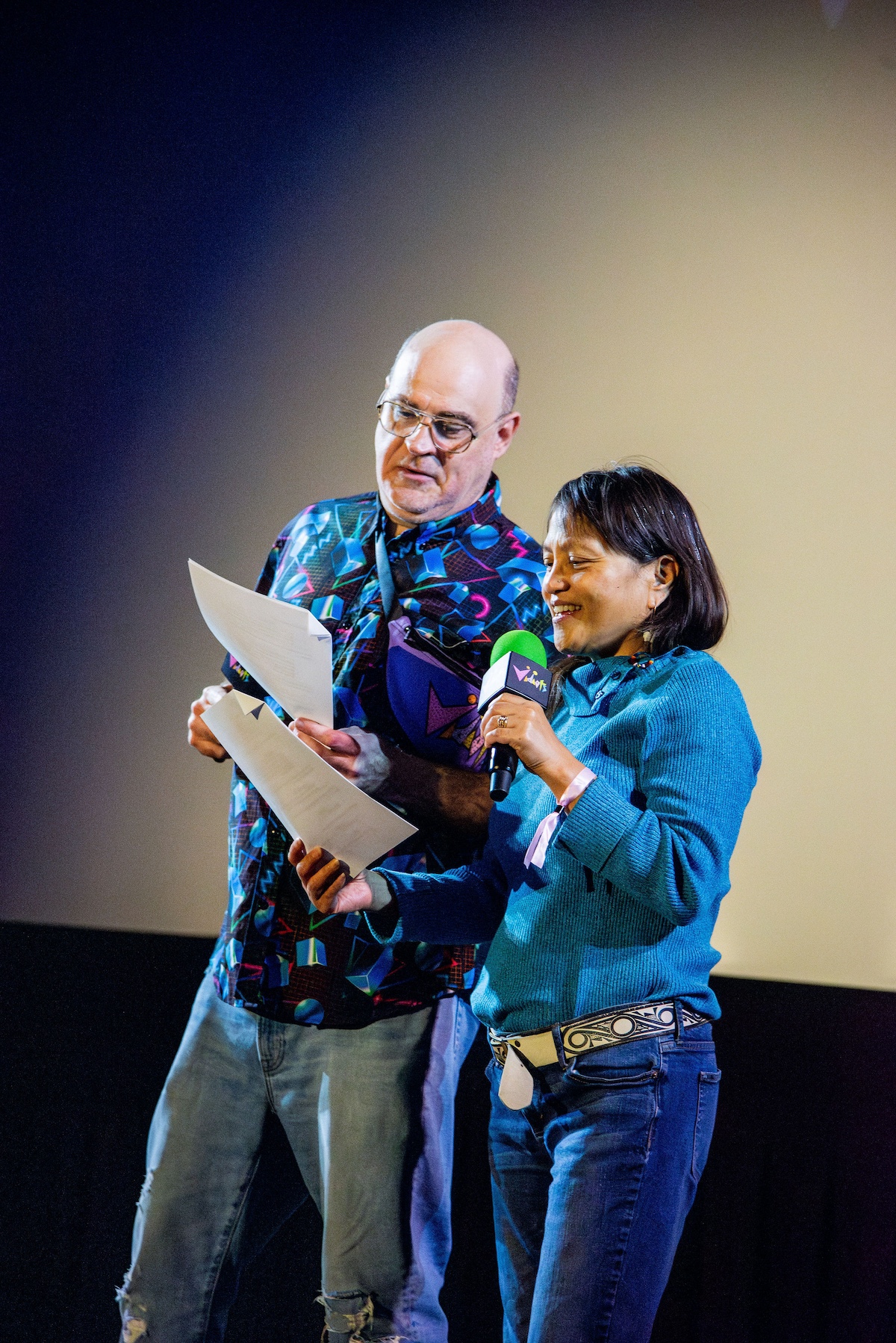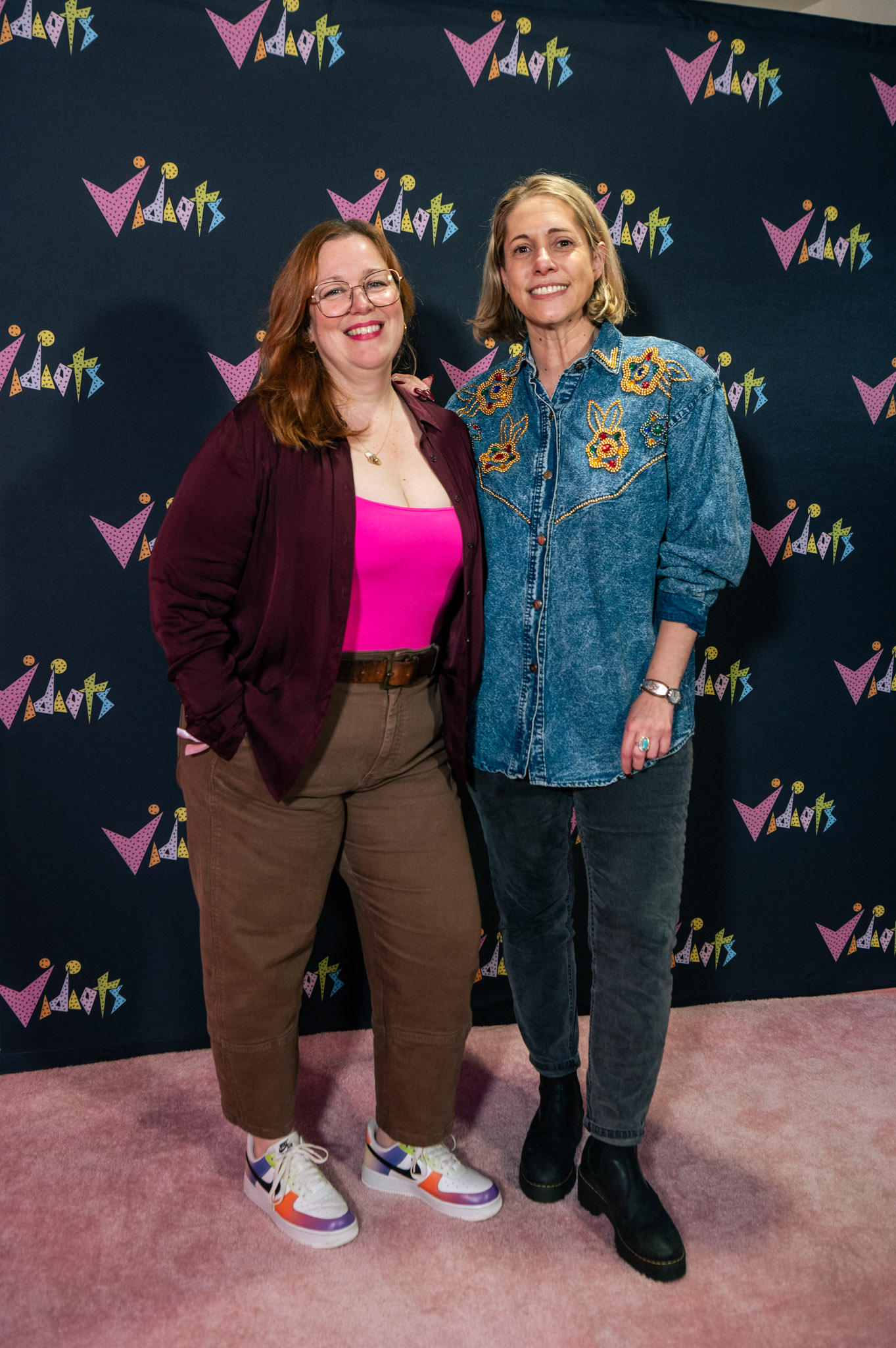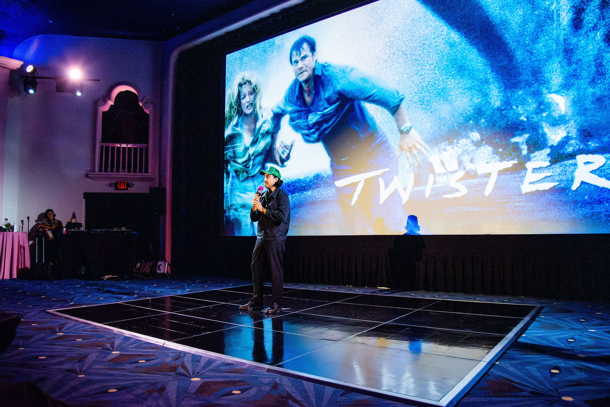Throughout the night, surprise moments kept the crowd roaring. Tim Simons whispered “unbelievable” Hollywood gossip into two audience members’ ears; Kumail Nanjiani and Emily V. Gordon told their love story through movies that shaped their lives; Blakely Thornton delivered a comedic masterclass reviewing Scream fashion; Mary Elizabeth Ellis led a talk-along performance from Waiting for Guffman; Ify Nwadiwe stormed the stage as Vidiots’ self-appointed “bouncer”; and Tai Leclaire explained, convincingly, that Twister made him gay.