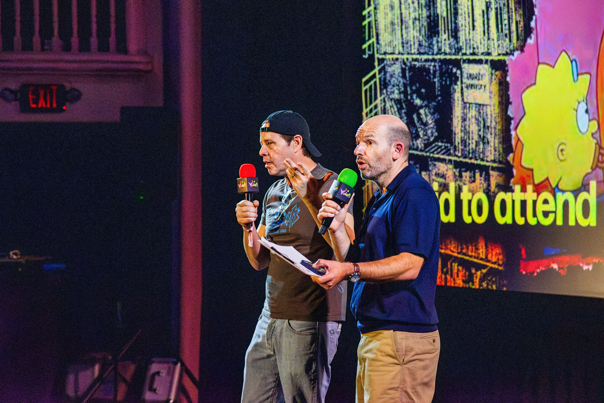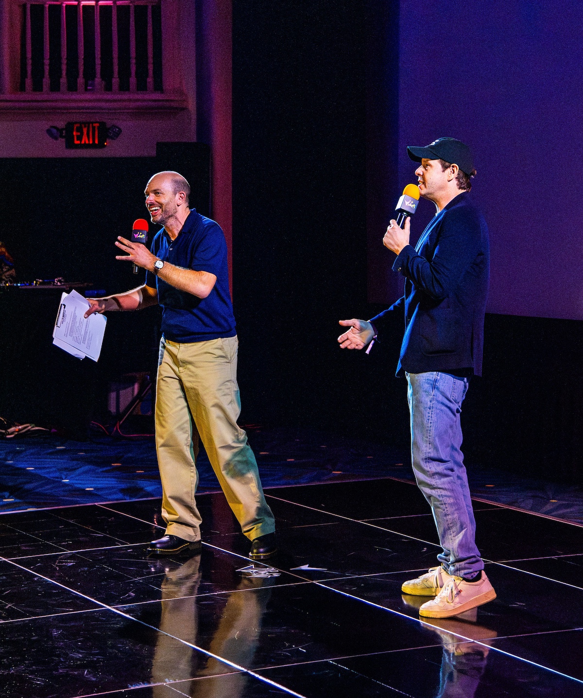At around 8 pm, hosts Paul Scheer and Ike Barinholtz took the stage, launching a high-energy program that barely let the audience catch its breath between laughs. The entire evening was structured in segments, each featuring a different celebrity guest performing stand-up, reviewing movies, re-enacting scenes, roasting red carpet looks, or delivering heartfelt tributes to the film sanctuary that is Vidiots, all while encouraging attendees to donate.