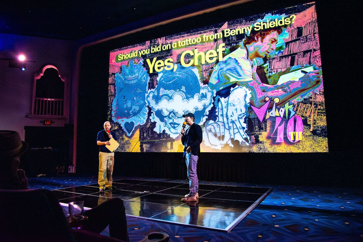 After a bustling and joyful cocktail reception, attendees joined celebrity hosts Paul Scheer and Ike Barinholtz in Vidiots’ Eagle Theatre for a celebration of 40 years of Vidiots. During the comedy special, comedians, actors and directors alike, Tim Simons, Kumail Nanjiani, Emily V. Gordon, Lake Bell, Mary Elizabeth Ellis, Josh Rubin, Blakely Thorton, Ify Nwadiwe, Ben Rodgers, and Tai Leclaire performed sets throughout the night.