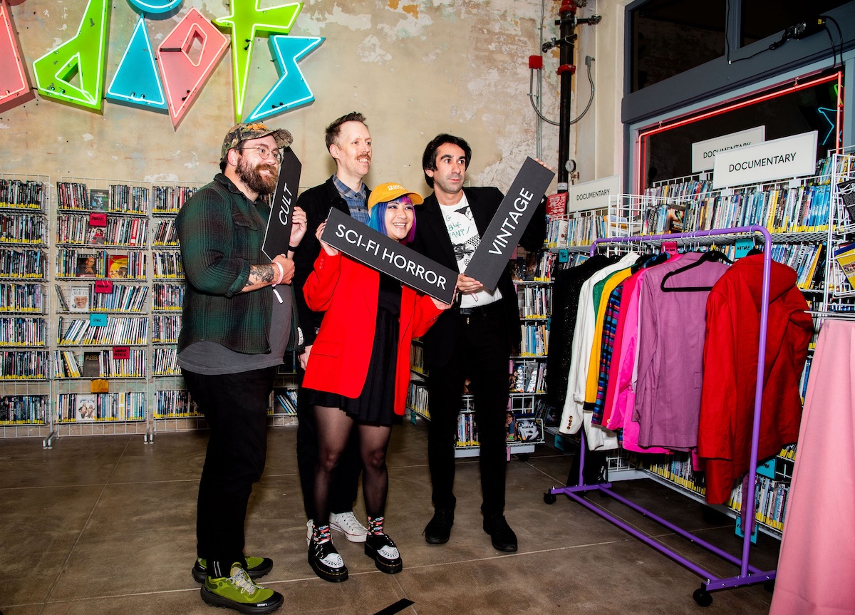 The night began with a lively mixer where guests ate, drank, reunited, and took photos in dazzling ’80s attire, instantly transforming the space into a nostalgic time warp. An event that felt equal parts birthday party, comedy show, and fan-driven rally for the preservation of physical media and an L.A. institution.