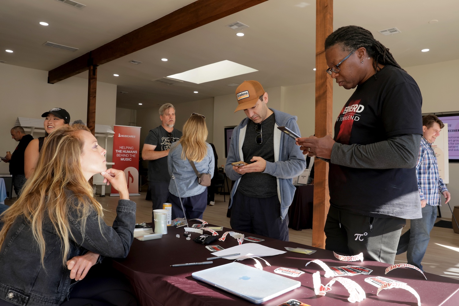 Throughout the day, local musicians, engineers, producers, and other music professionals came together for mental health appointments, physical therapy, vision care, hearing support including custom ear molds, and more. What began as a wellness clinic quickly became a place for survivors to connect, many for the first time, and share what they’ve carried since evacuating their homes earlier this year.
