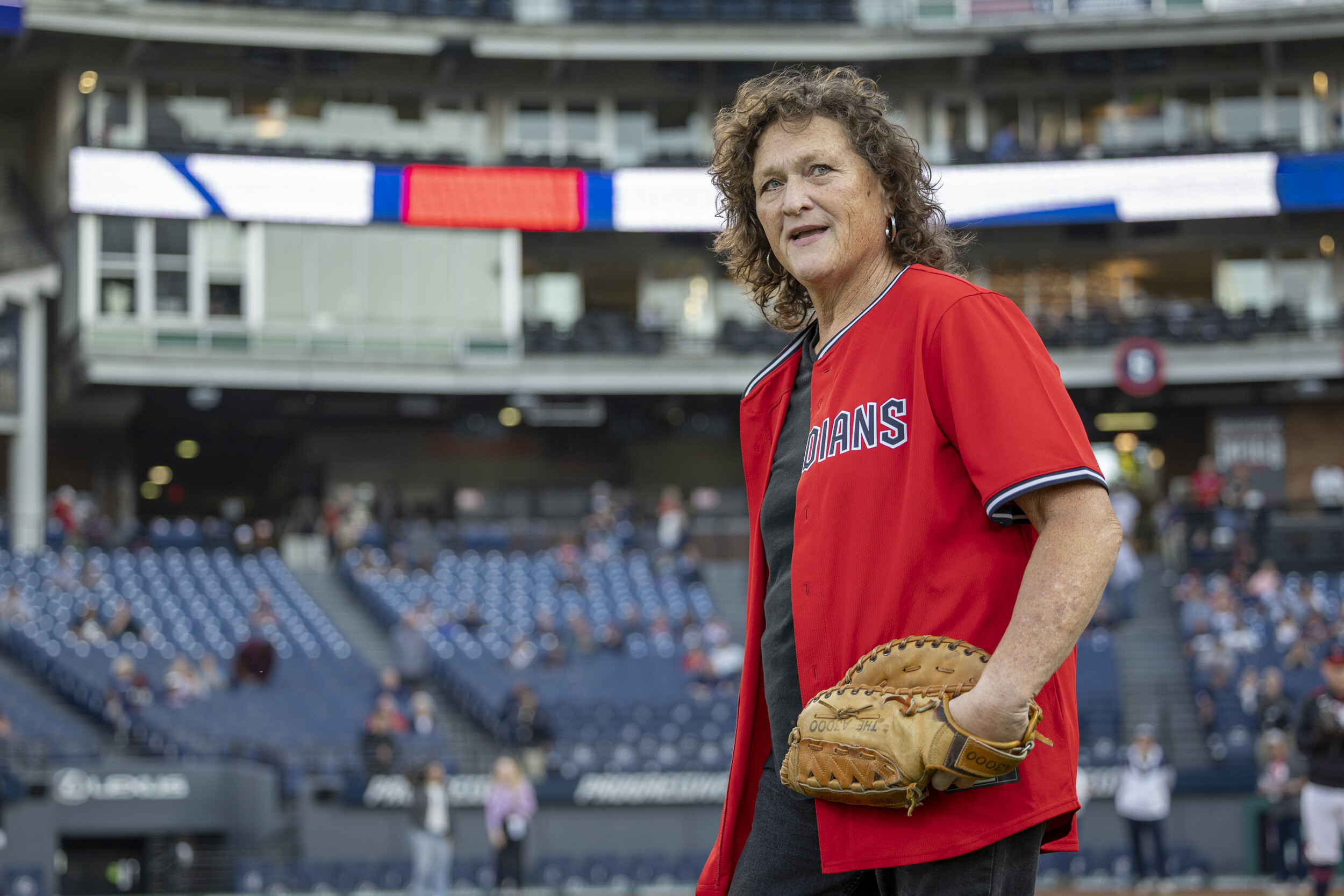 Dot-Marie Jones throws out first pitch, and Santino Fontana performs “God Bless America” in Cleveland to kick off “Lost & Found in Cleveland” on Thursday, September 11, 2025 at Progressive Field.