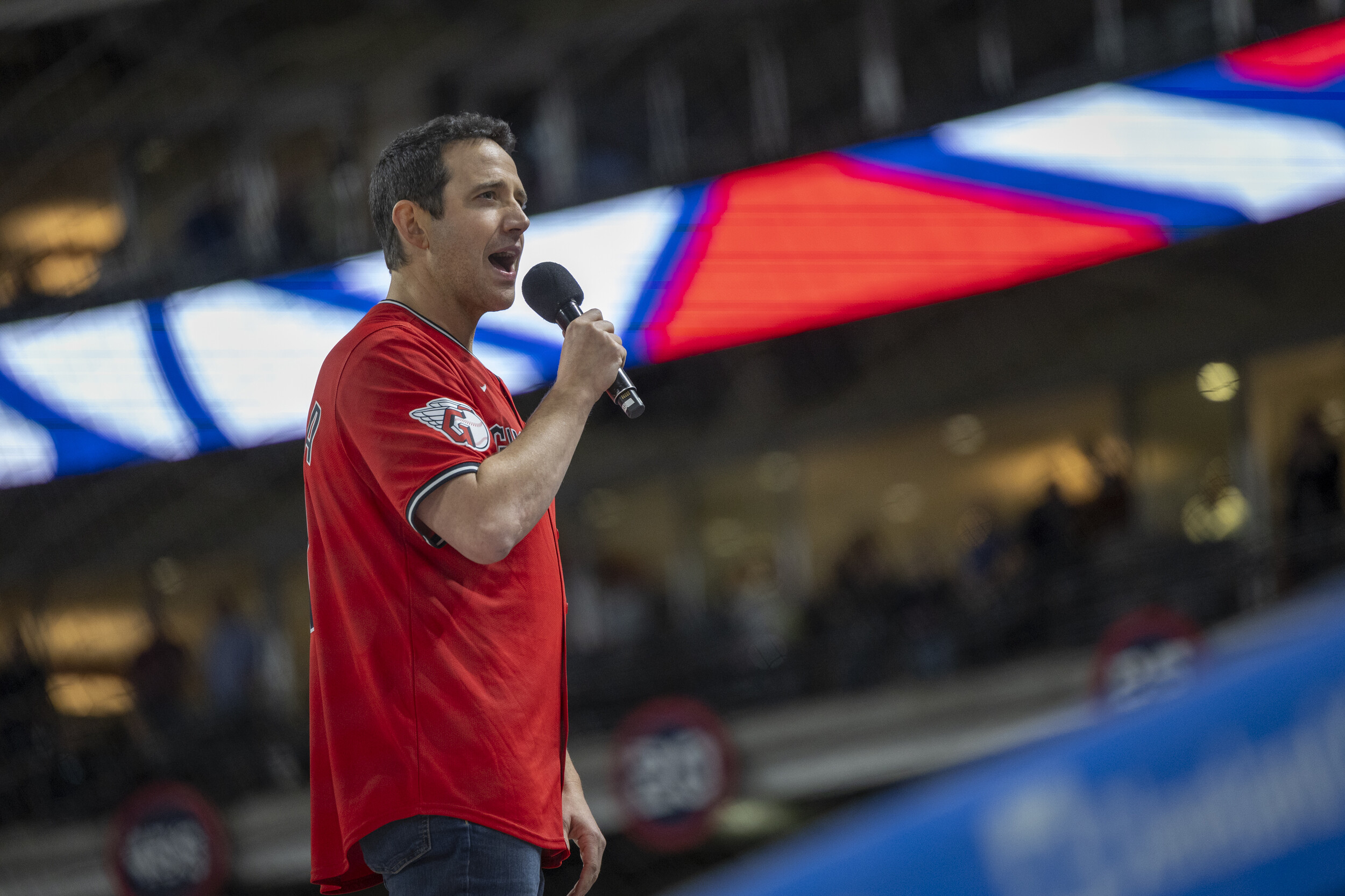“Lost & Found in Cleveland” hits a home run at the Cleveland Guardians game last night! Tony Award® winner Santino Fontana (cast) performed “God Bless America” and “Take Me Out to the Ball Game”, while Emmy® nominee Dot-Marie Jones (cast) threw out the ceremonial first pitch and hosted a Deal or no Deal giveaway. Fans also got a first look at the film with the trailer showcased on the Jumbotron before the pitch.