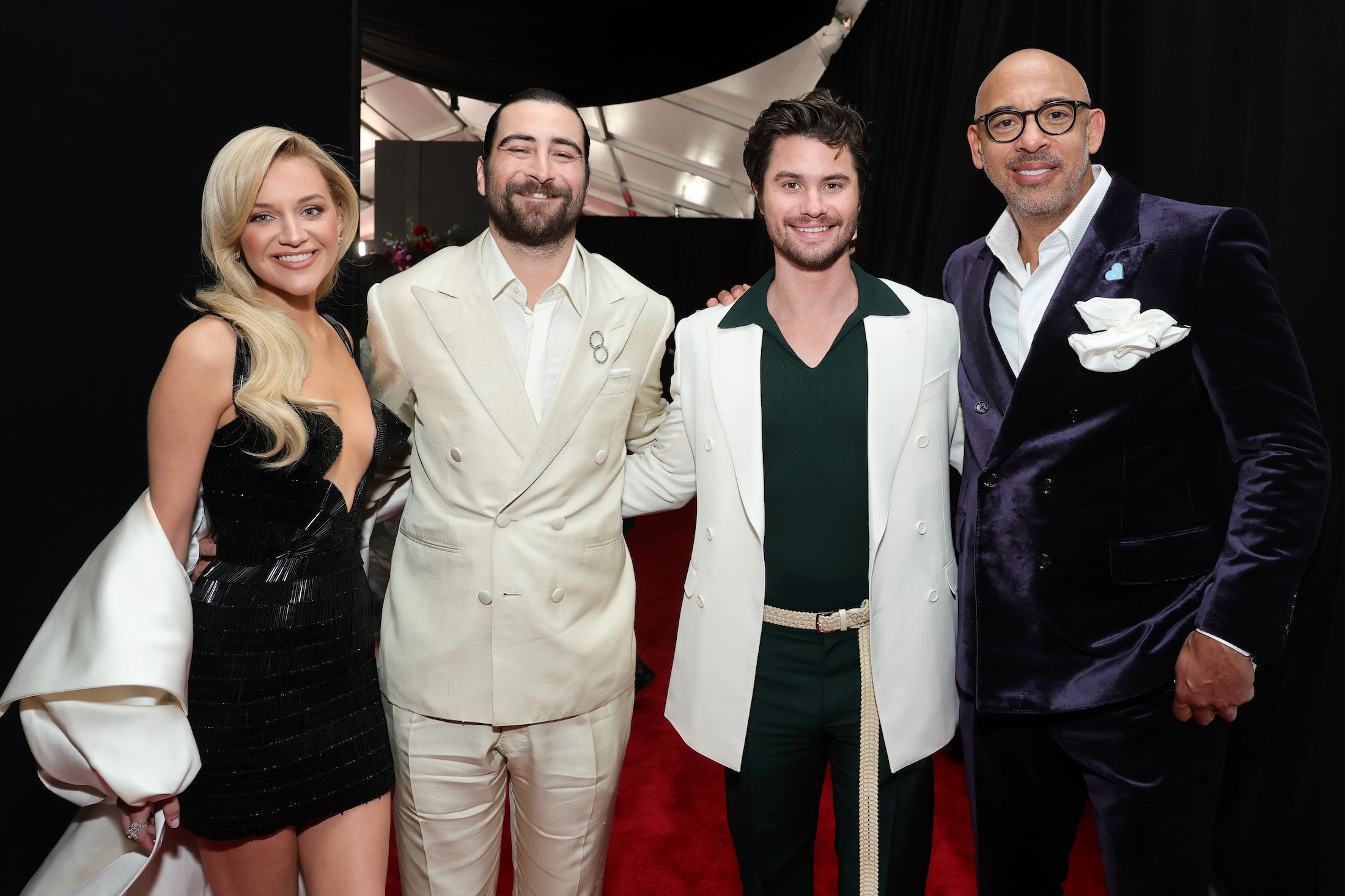 LOS ANGELES, CALIFORNIA - FEBRUARY 02: (L-R) Kelsea Ballerini, Noah Kahan, Chase Stokes and Harvey Mason jr., CEO, MusicCares & Recording Academy attend the 67th Annual GRAMMY Awards at Crypto.com Arena on February 02, 2025 in Los Angeles, California. (Photo by Emma McIntyre/Getty Images for The Recording Academy)