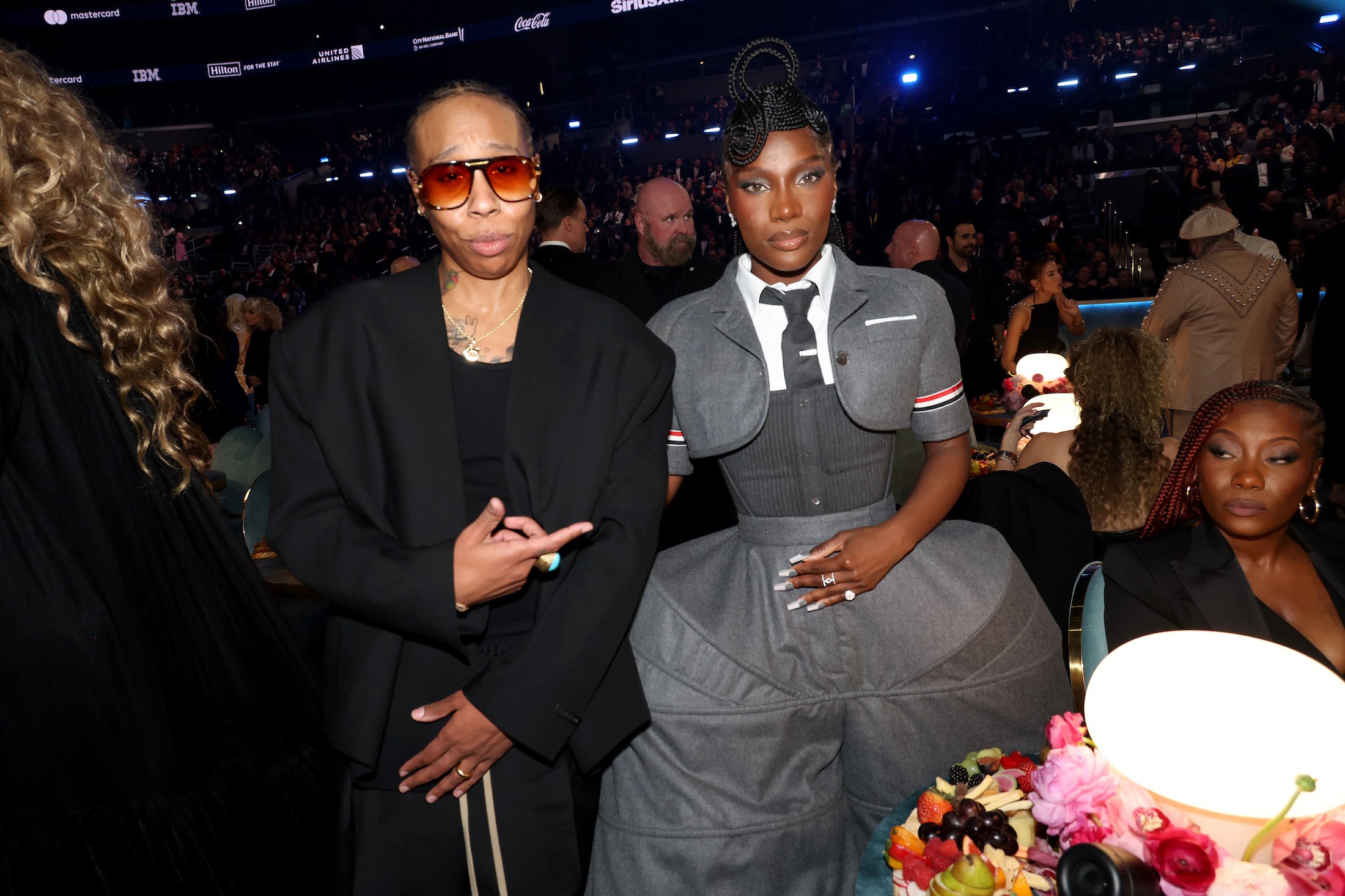 LOS ANGELES, CALIFORNIA - FEBRUARY 02: (L-R) Lena Waithe and Doechii attend the 67th Annual GRAMMY Awards at Crypto.com Arena on February 02, 2025 in Los Angeles, California. (Photo by Johnny Nunez/Getty Images for The Recording Academy)
