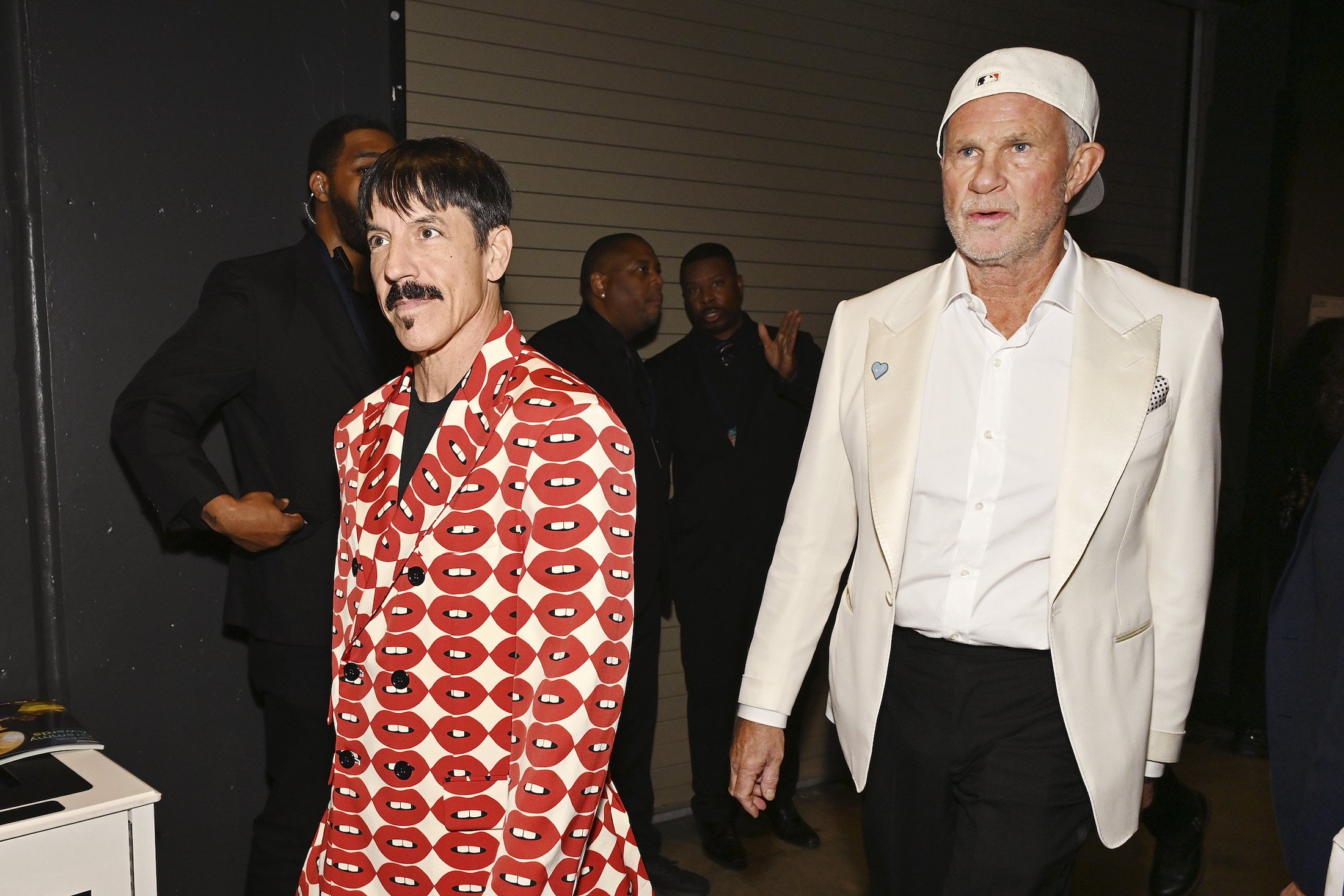LOS ANGELES, CALIFORNIA - FEBRUARY 02: (L-R) Anthony Kiedis and Chad Smith attend the 67th Annual GRAMMY Awards at Crypto.com Arena on February 02, 2025 in Los Angeles, California. (Photo by Lester Cohen/Getty Images for The Recording Academy)