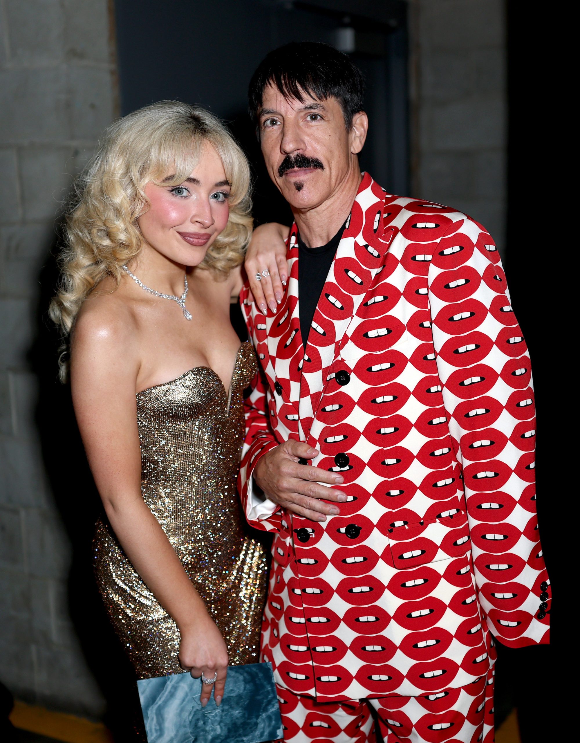 LOS ANGELES, CALIFORNIA - FEBRUARY 02: (L-R) Sabrina Carpenter and Anthony Kiedis attend the 67th Annual GRAMMY Awards at Crypto.com Arena on February 02, 2025 in Los Angeles, California. (Photo by Matt Winkelmeyer/Getty Images for The Recording Academy)