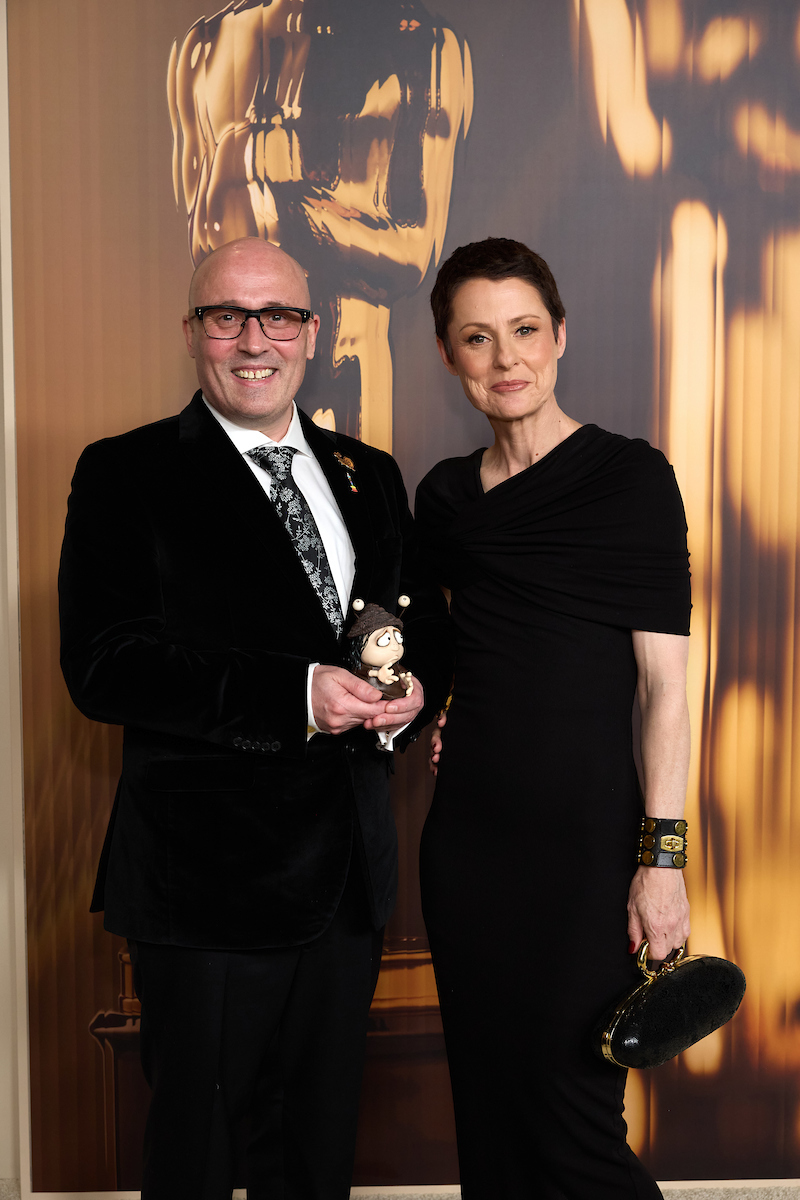 Adam Elliot and Liz Kearney at the 97th Oscars Nominees dinner at the Academy Museum of Motion Pictures on Tuesday, February 25, 2025.
