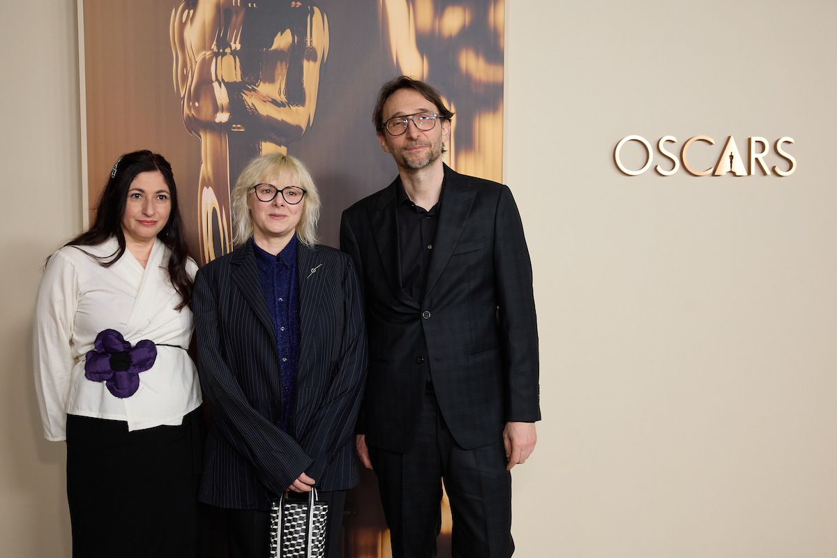 Kelsey Mann, Merlin Crossingham and Nick Park at the 97th Oscars Nominees dinner at the Academy Museum of Motion Pictures on Tuesday, February 25, 2025.