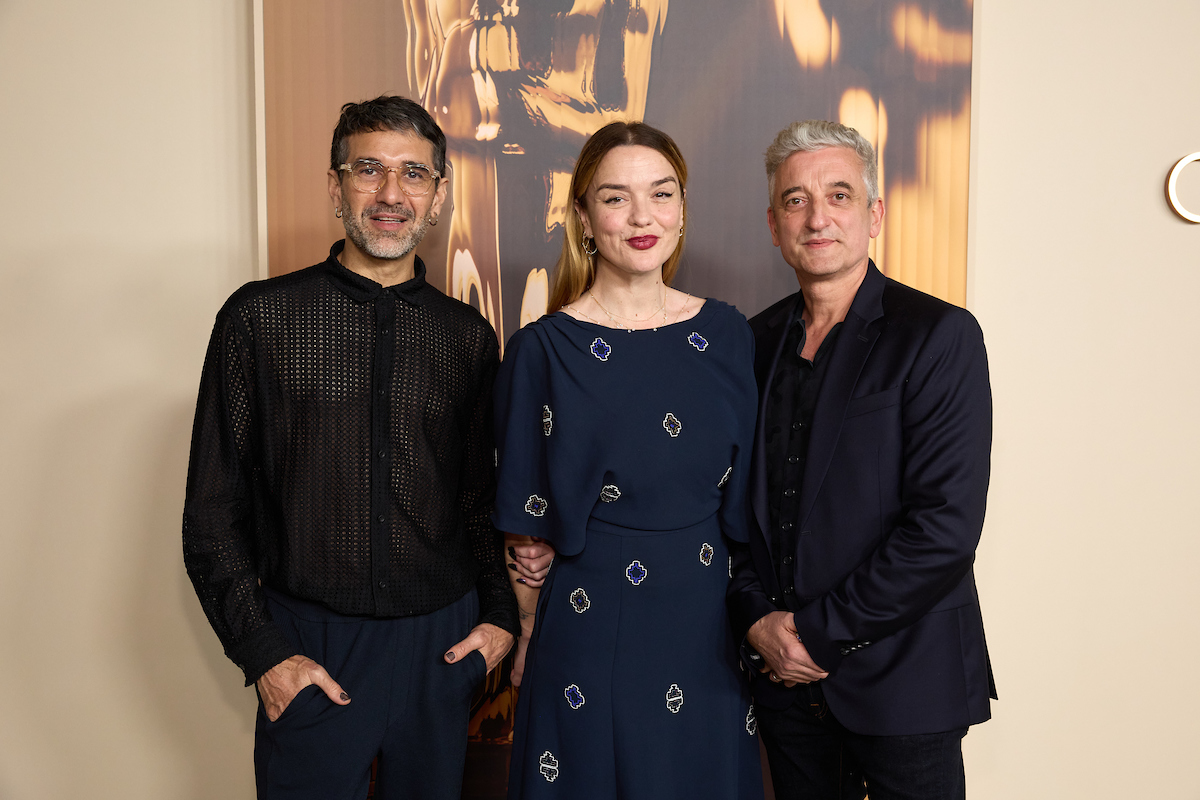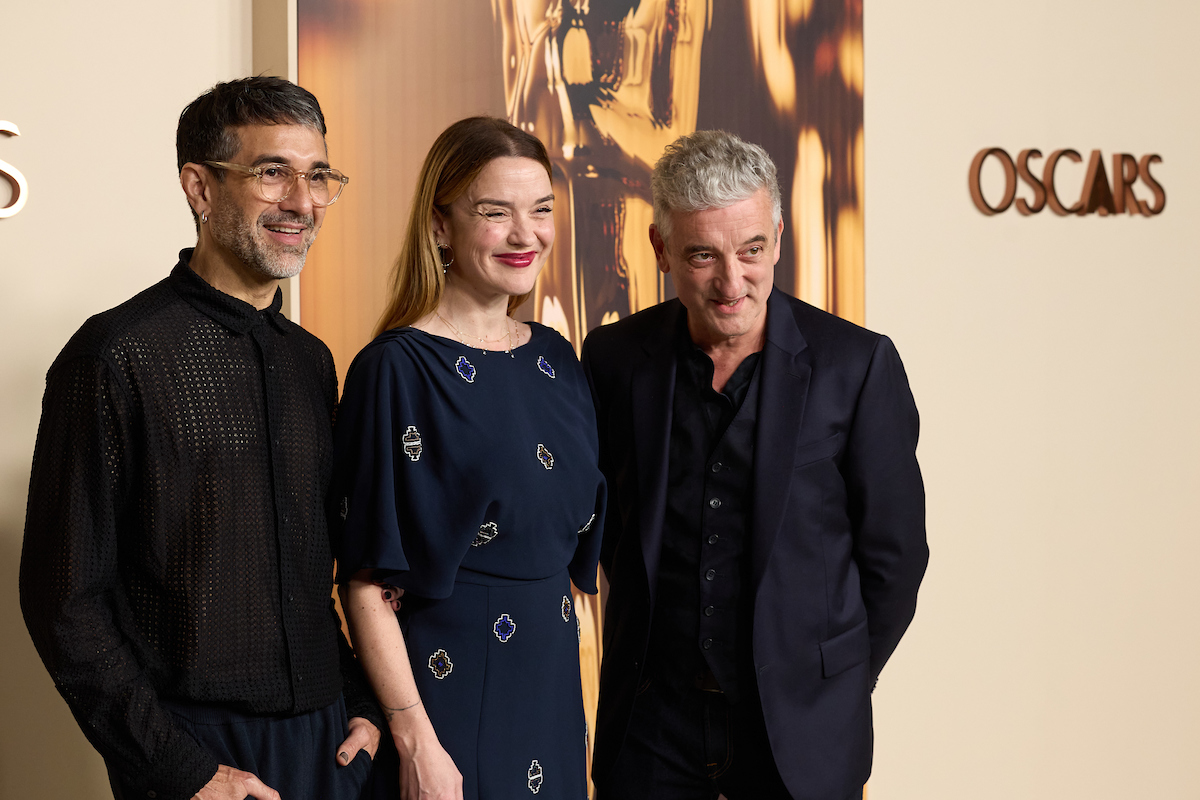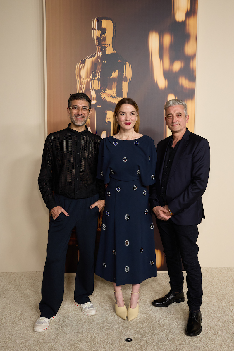Emmanuel Janvier, Julia Floch Carbonel and Jean-Christophe Spadaccini at the 97th Oscars Nominees dinner at the Academy Museum of Motion Pictures on Tuesday, February 25, 2025.