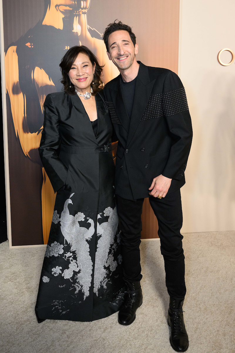 Academy President Janet Yang and Adrien Brody at the 97th Oscars Nominees dinner at the Academy Museum of Motion Pictures on Tuesday, February 25, 2025.