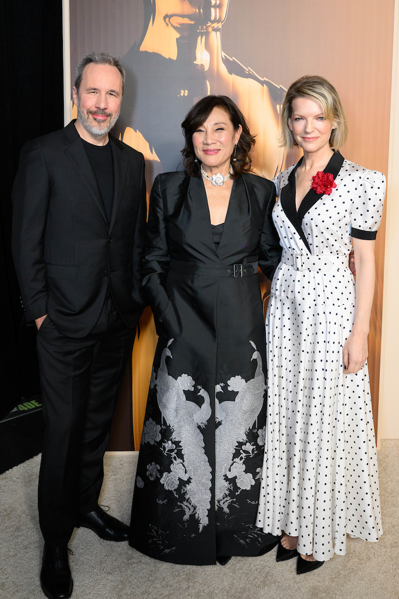 Academy President Janet Yang with Denis Villeneuve and Tanya Lapointe at the 97th Oscars Nominees dinner at the Academy Museum of Motion Pictures on Tuesday, February 25, 2025.