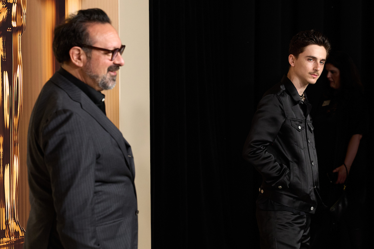 James Mangold and Timothee Chalamet at the 97th Oscars Nominees dinner at the Academy Museum of Motion Pictures on Tuesday, February 25, 2025.