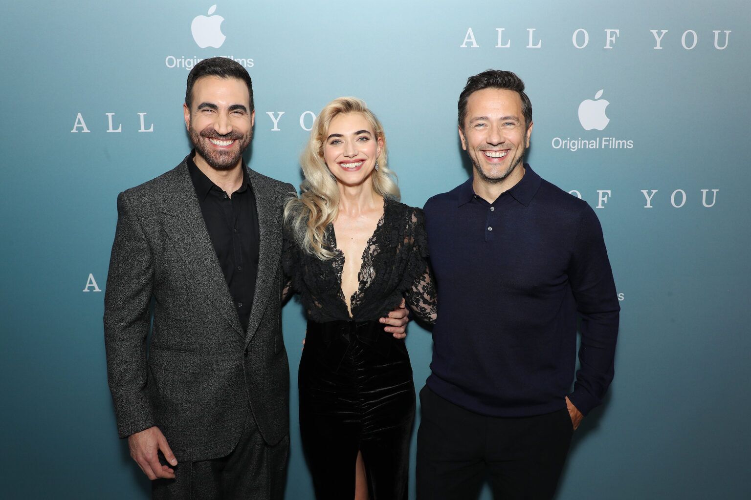 New York, New York - 9/17/25 - Brett Goldstein (Co-writer,Producer), Imogen Poots and William Bridges (Director,Producer) attends the U.S. premiere screening of Apple Original Films’ “All of You” at The Whitby Theater. “All of You” streams globally on Apple TV+ on Friday, September 26, 2025. - PICTURED: Brett Goldstein (Co-writer,Producer), Imogen Poots and William Bridges (Director,Producer) - PHOTO by: Marion Curtis / StarPix for Apple Original Films - Location: The Whitby Theater