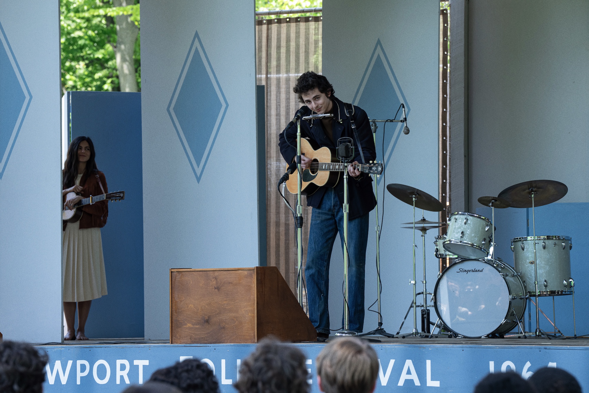 Timothée Chalamet and Monica Barbaro in A COMPLETE UNKNOWN. Photo Courtesy of Searchlight Pictures. © 2024 Searchlight Pictures All Rights Reserved.