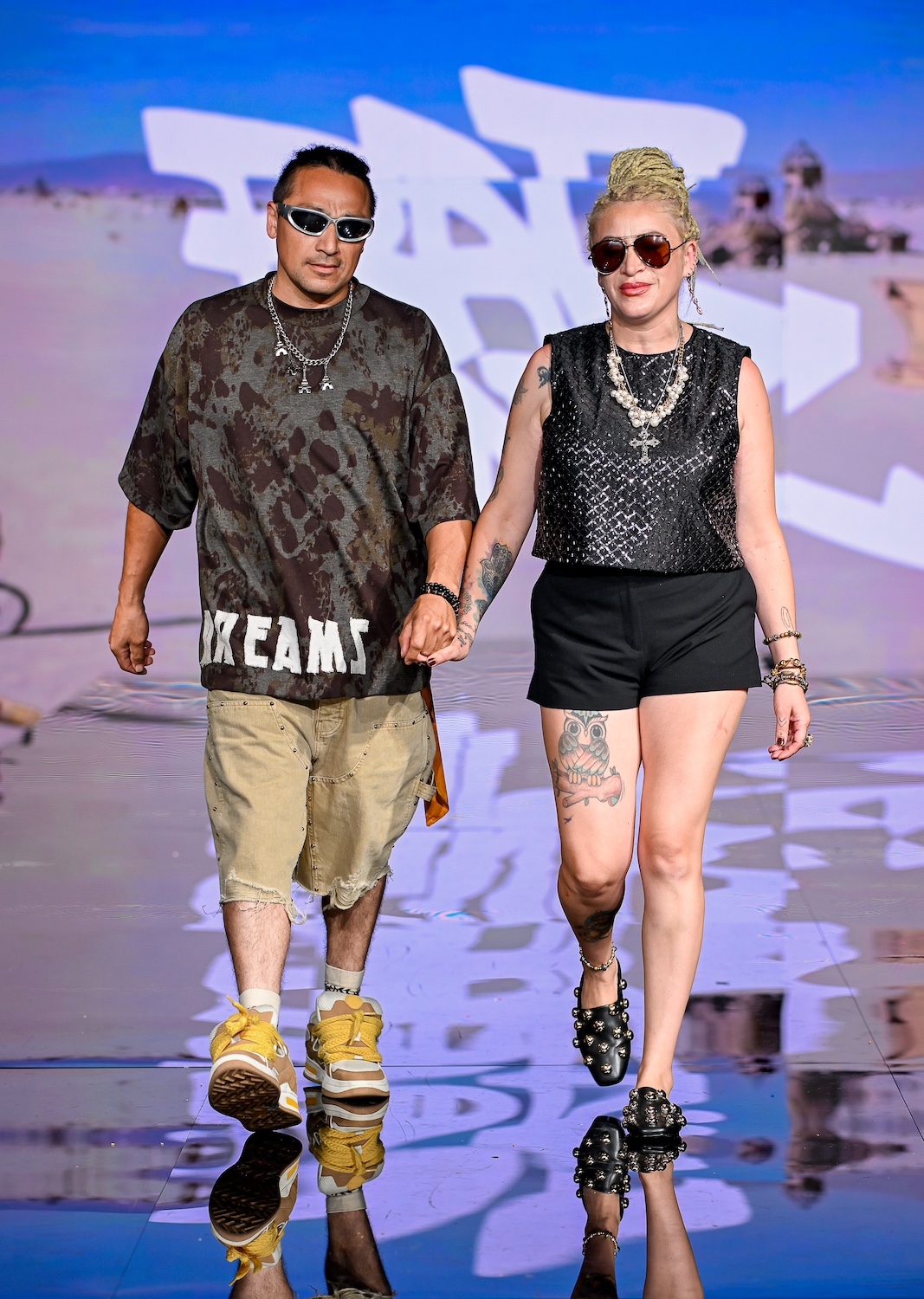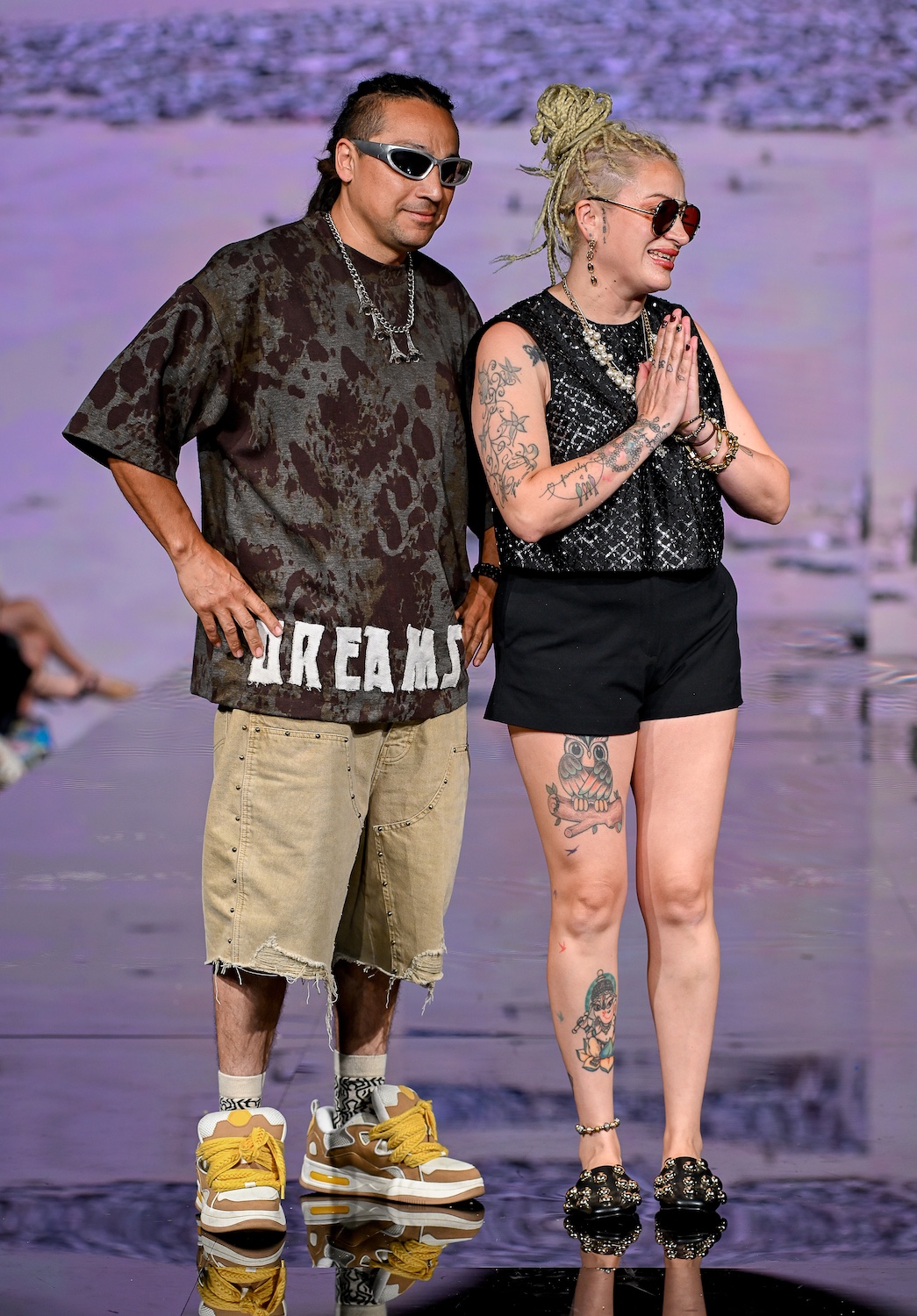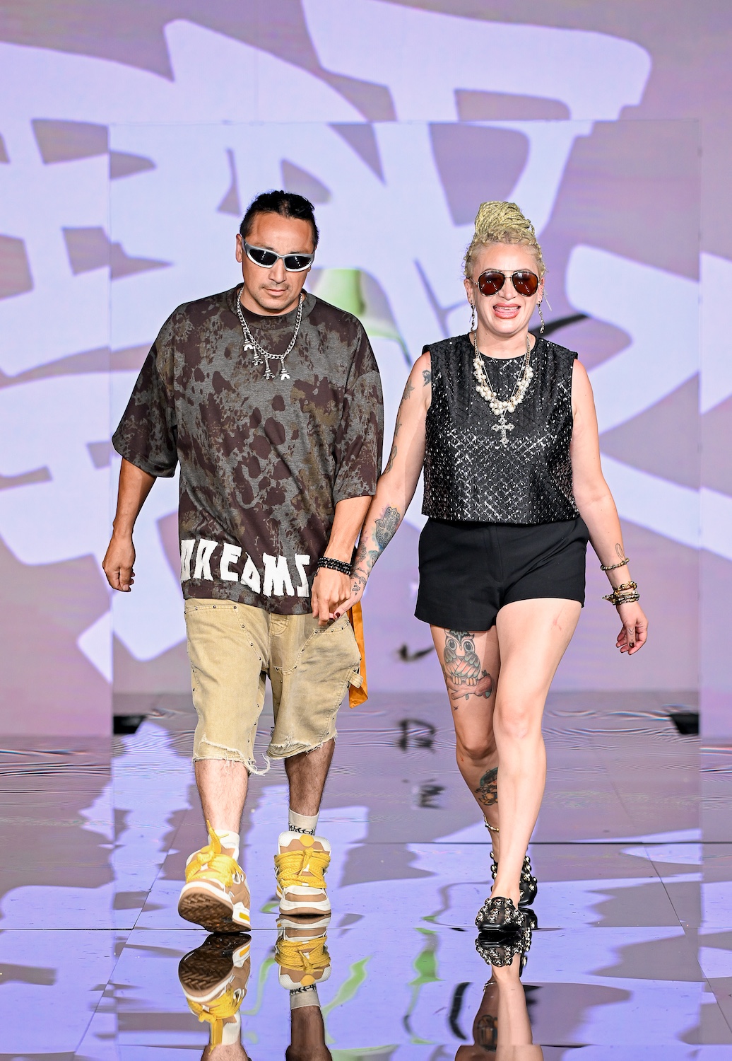MIAMI BEACH, FLORIDA - MAY 31: Designer Maria Ramirez and guest walk the runway at the Bad Pink show during Miami Swim Week Powered By Art Hearts Fashion at Eden Roc Hotel on May 31, 2025 in Miami Beach, Florida. (Photo by Mark Gunter/Getty Images for Art Hearts Fashion)