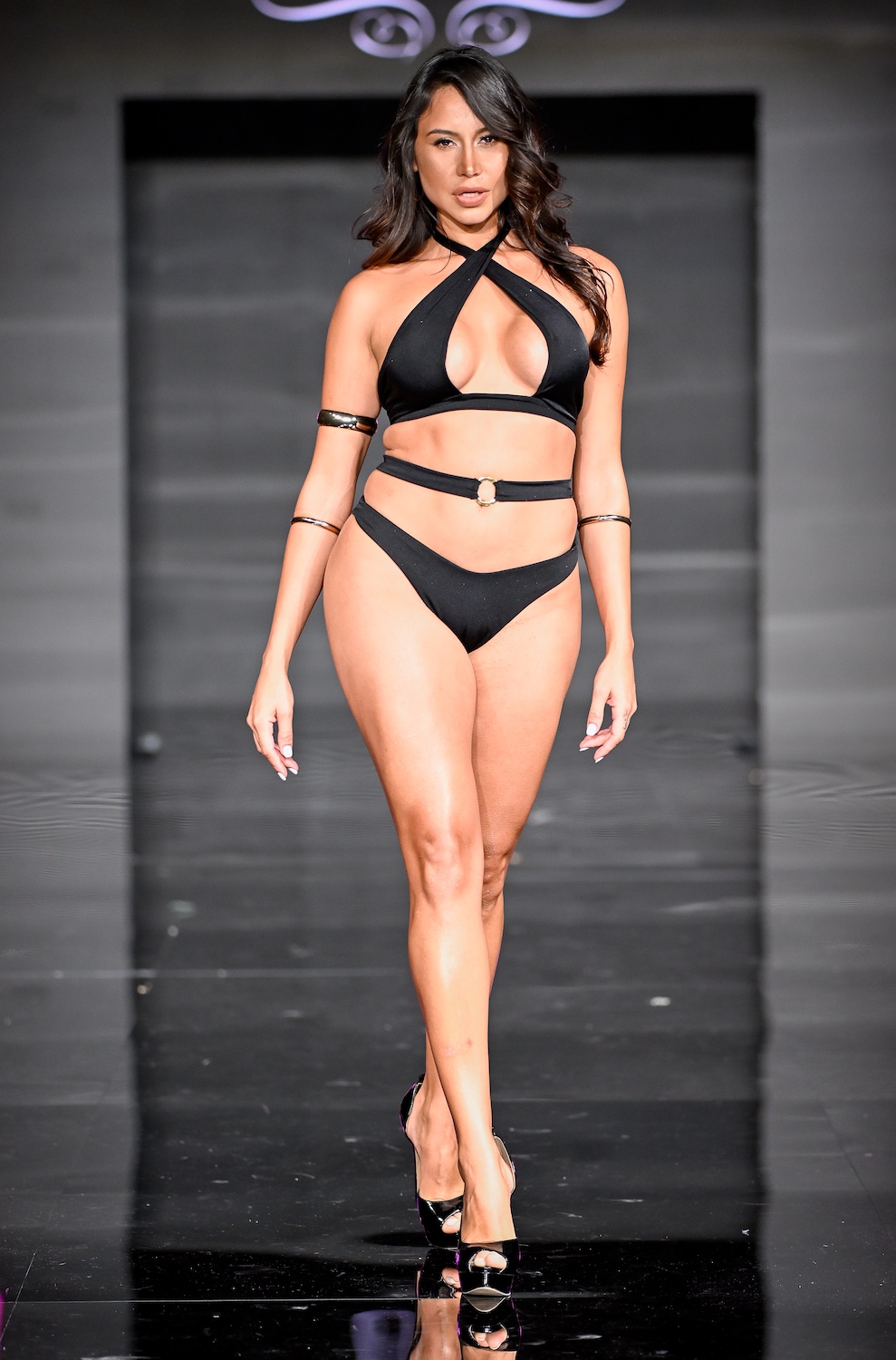 MIAMI BEACH, FLORIDA - MAY 29: A model walks the runway at the Belle D'Amour show during Miami Swim Week Powered By Art Hearts Fashion at Eden Roc Hotel on May 29, 2025 in Miami Beach, Florida. (Photo by Arun Nevader/Getty Images for Art Hearts Fashion)