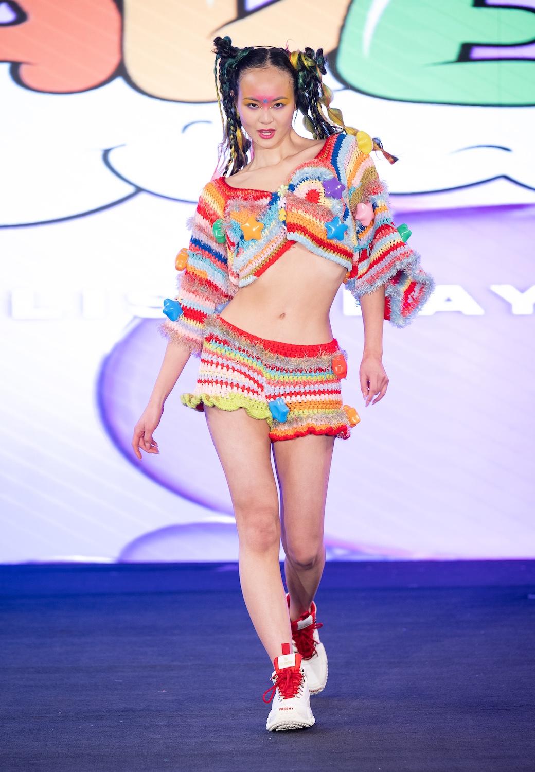 NEW YORK, NEW YORK - FEBRUARY 09: Model Audrey Lim walks the runway at the Chavelis Playhouse show during New York Fashion Week Powered By Art Hearts Fashion at The Angel Orensanz Foundation on February 09, 2025 in New York City. (Photo by Mark Gunter/Getty Images for Art Hearts Fashion)
