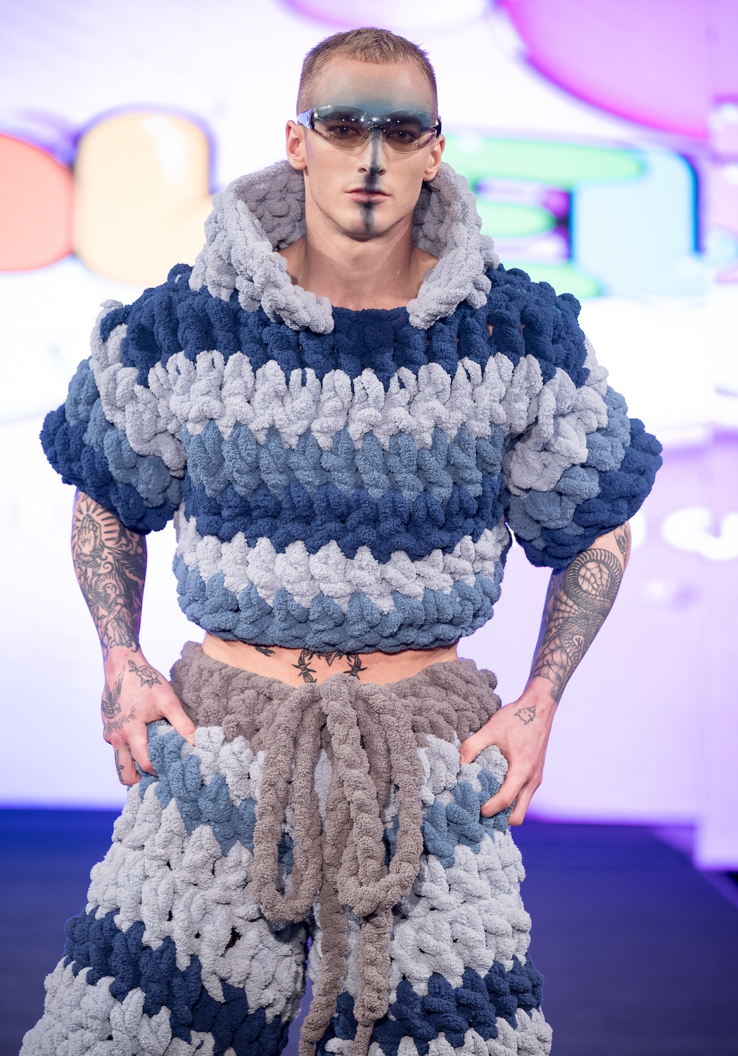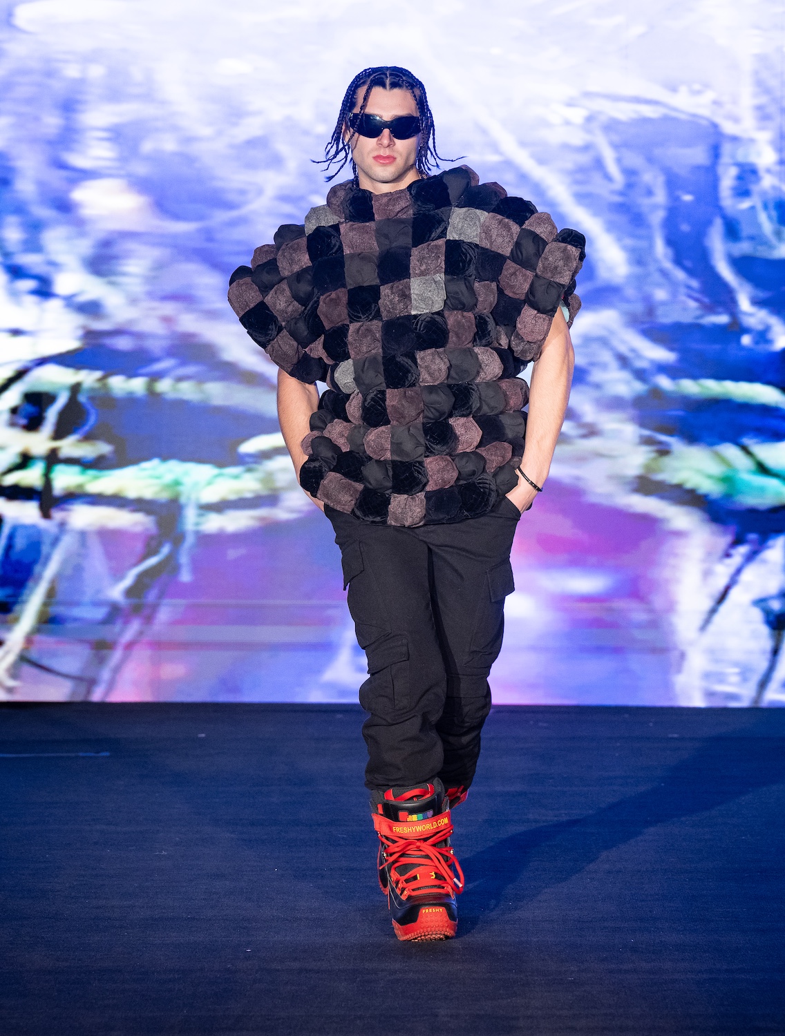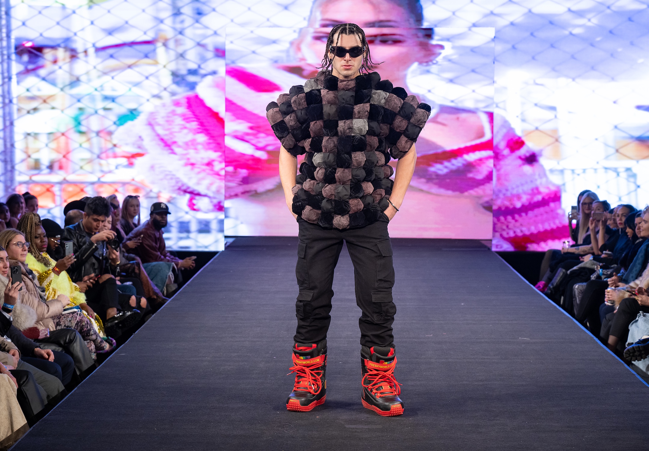 NEW YORK, NEW YORK - FEBRUARY 09: Model Colin Flynn walks the runway at the Chavelis Playhouse show during New York Fashion Week Powered By Art Hearts Fashion at The Angel Orensanz Foundation on February 09, 2025 in New York City. (Photo by Mark Gunter/Getty Images for Art Hearts Fashion)