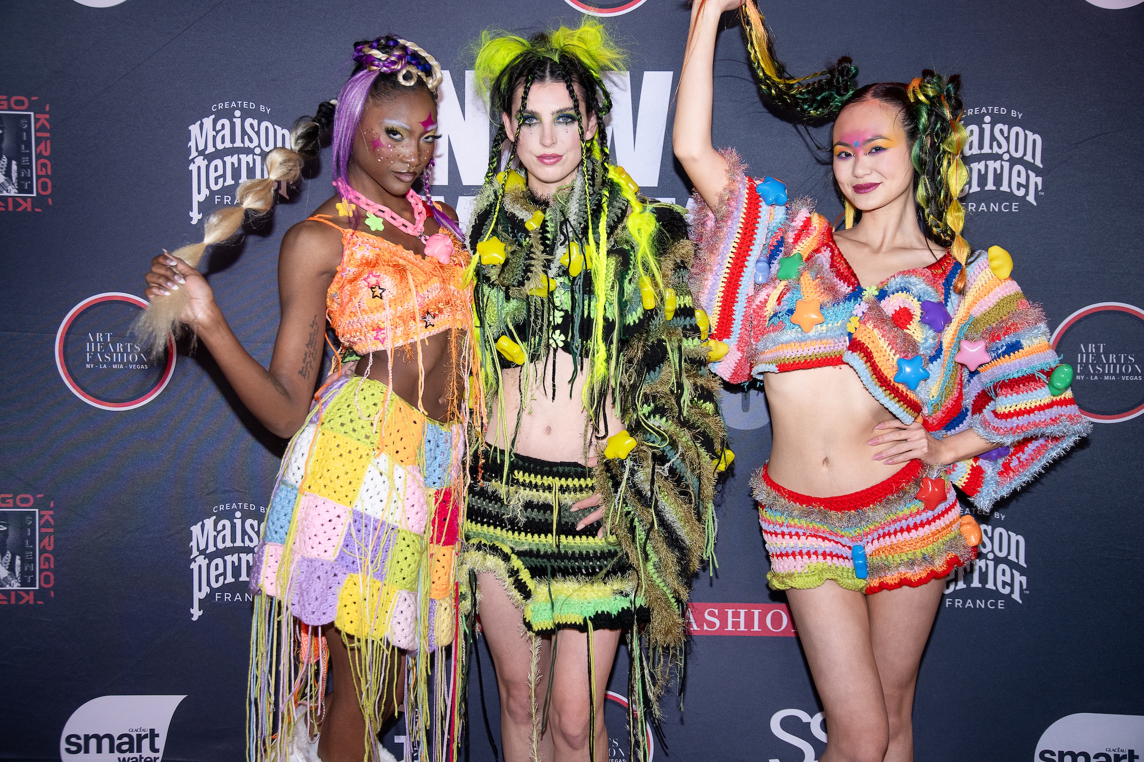 NEW YORK, NEW YORK - FEBRUARY 09: Models arrive on the red carpet wearing Chavelis Playhouse during New York Fashion Week Powered By Art Hearts Fashion at The Angel Orensanz Foundation on February 09, 2025 in New York City. (Photo by Mark Gunter/Getty Images for Art Hearts Fashion)