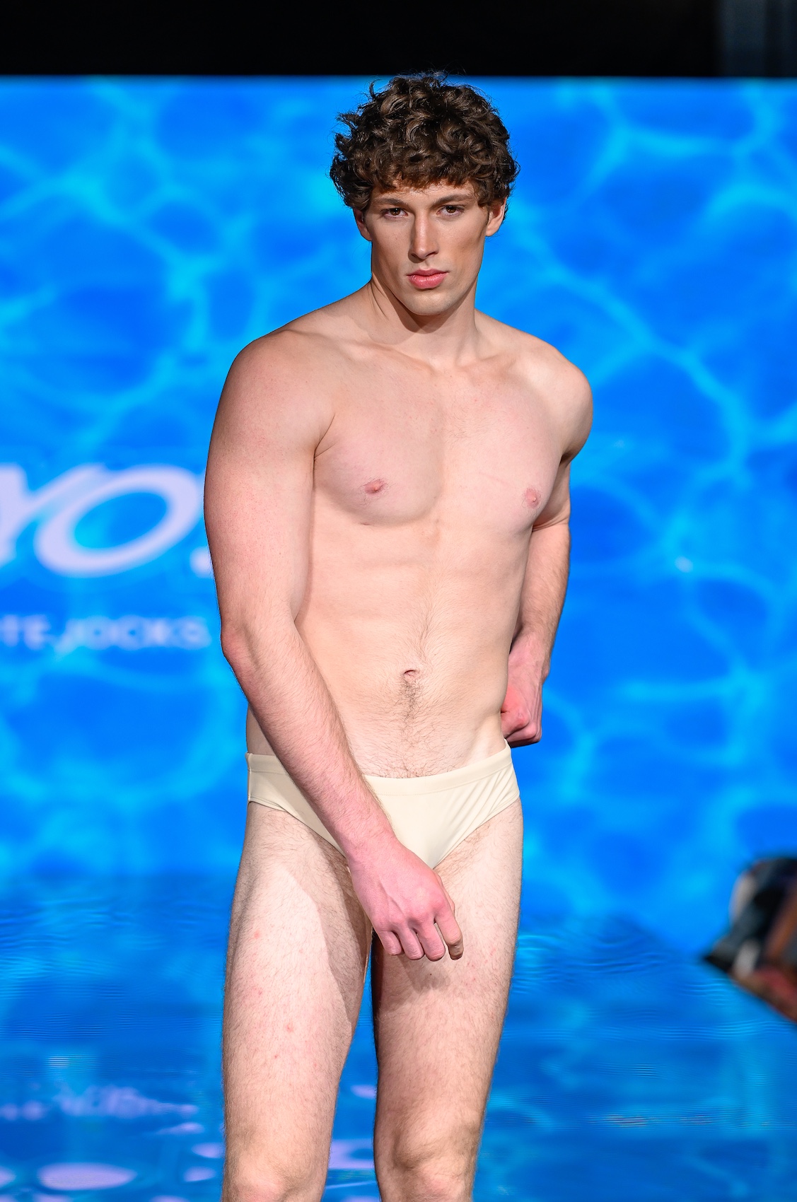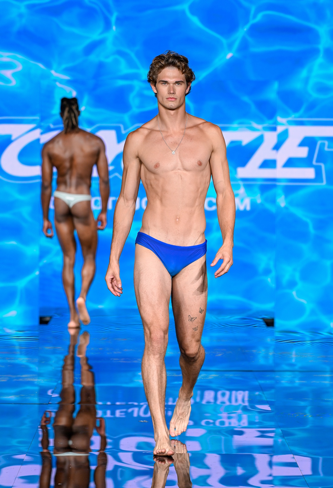 MIAMI BEACH, FLORIDA - MAY 30: A model walks the runway at the Coyote Jocks show during Miami Swim Week Powered By Art Hearts Fashion at Eden Roc Hotel on May 30, 2025 in Miami Beach, Florida. (Photo by Arun Nevader/Getty Images for Art Hearts Fashion)
