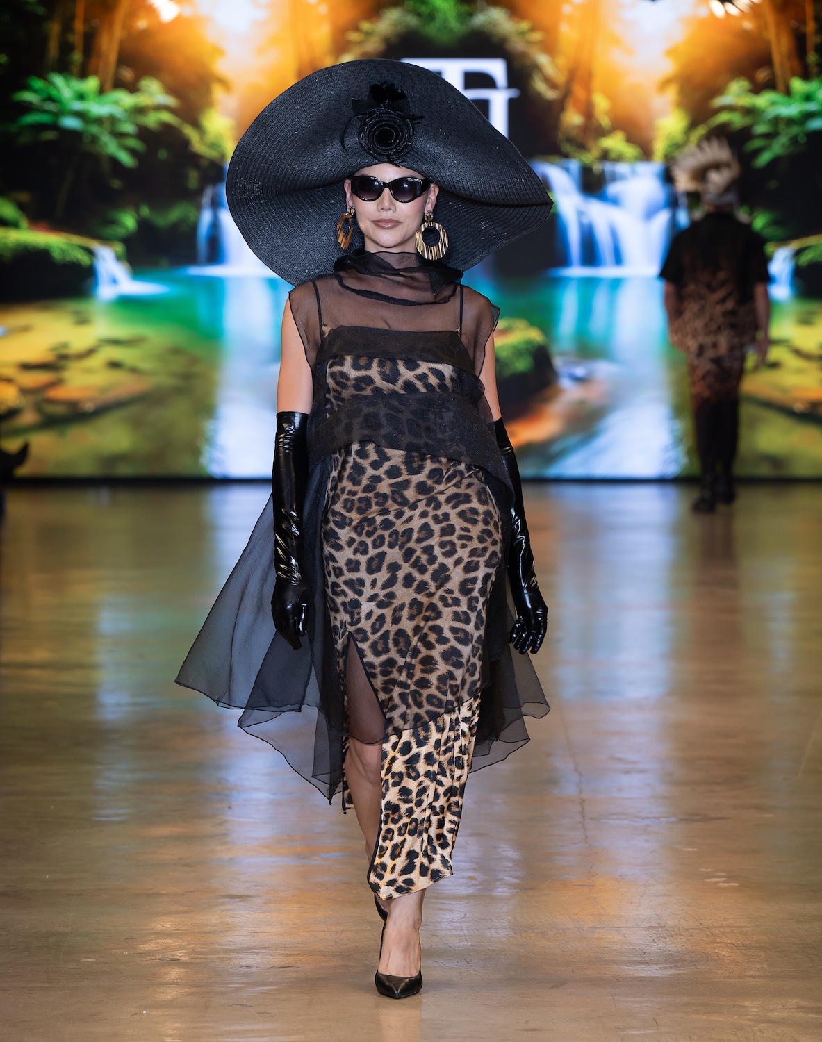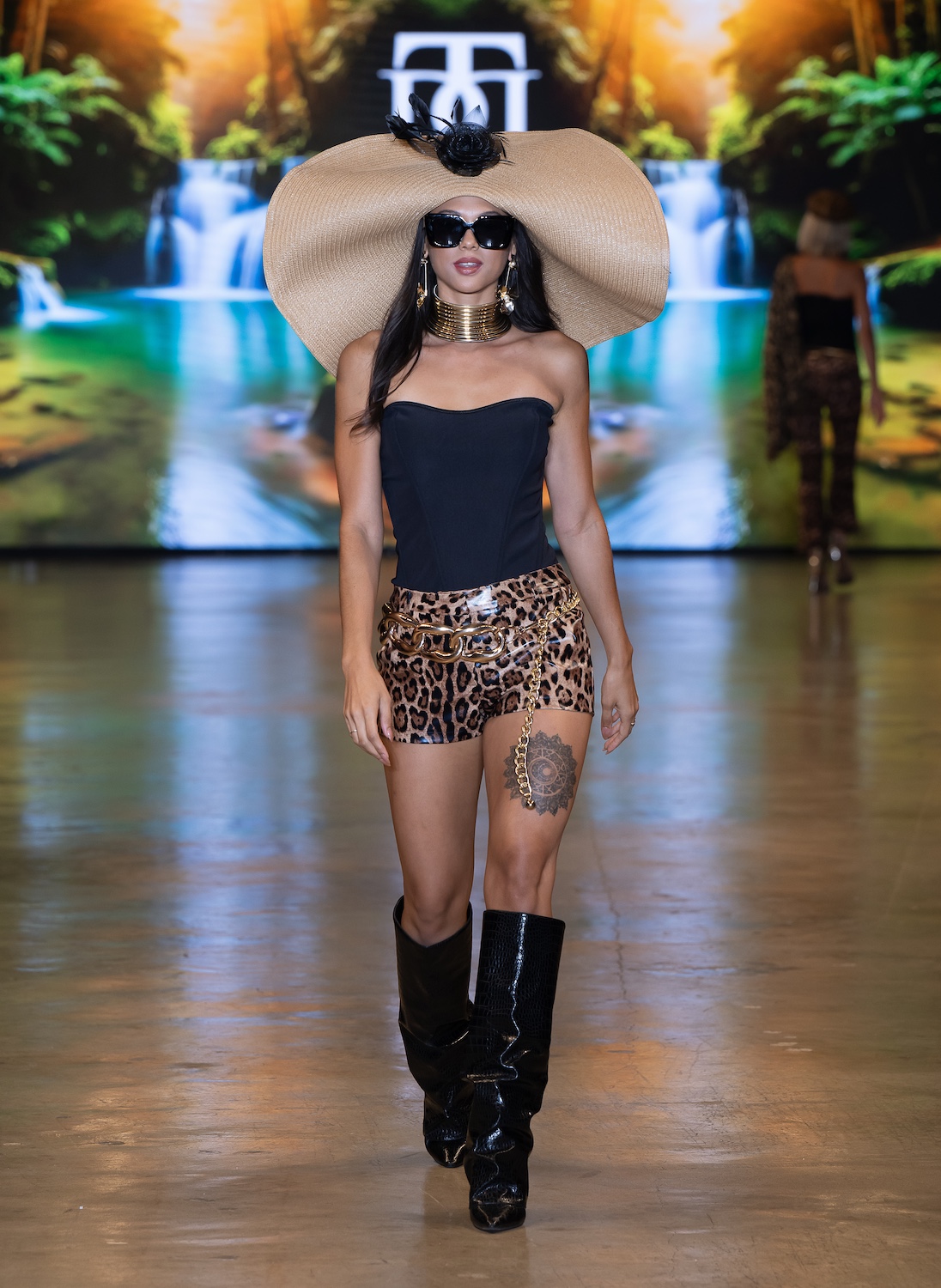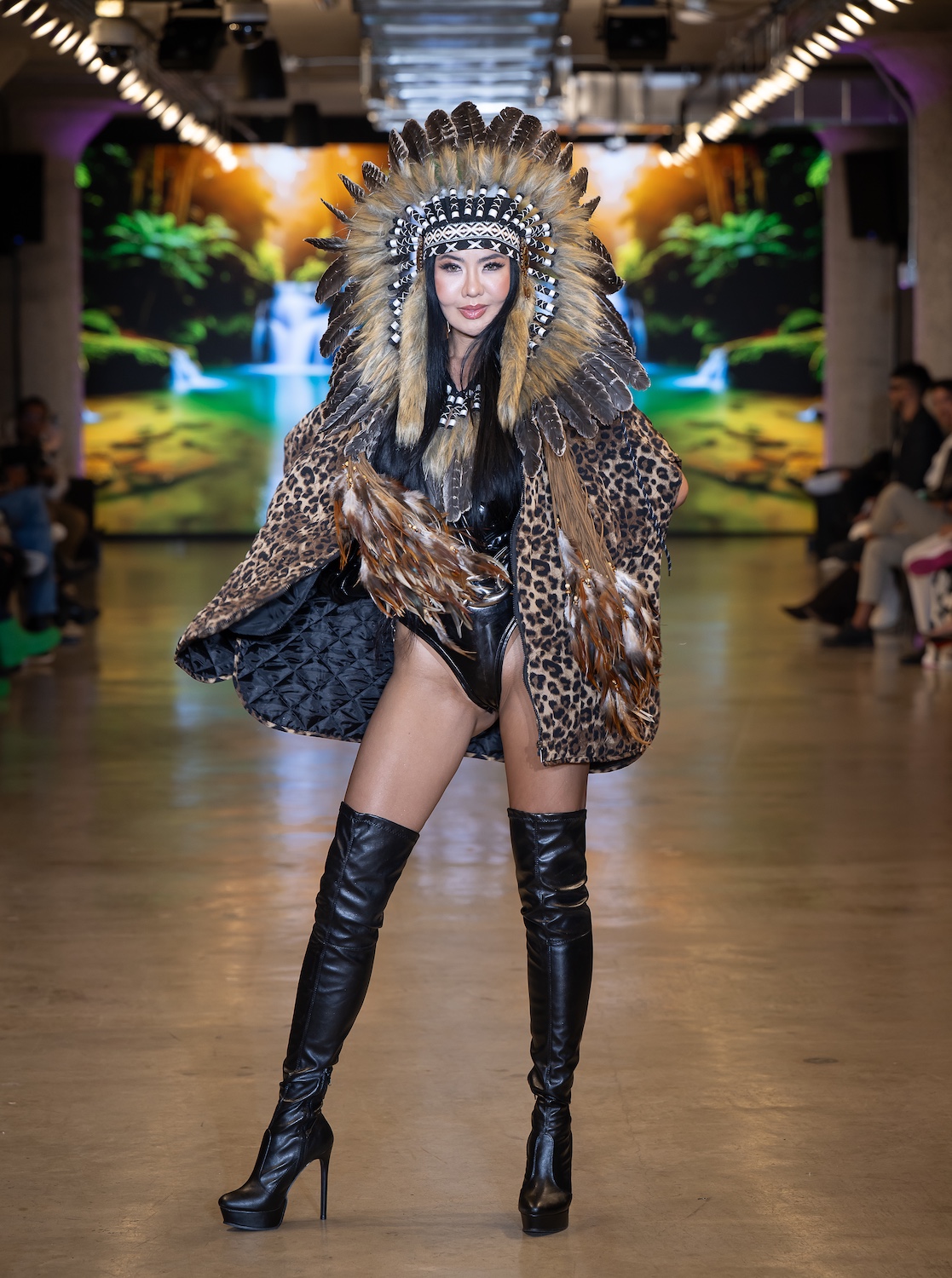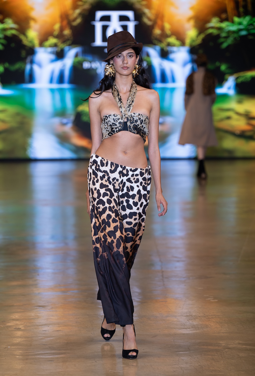 LOS ANGELES, CALIFORNIA - OCTOBER 16: Model Net CH walks the runway at the David Tupaz show during Los Angeles Fashion Week Powered By Art Hearts Fashion at The New Mart on October 16, 2025 in Los Angeles, California. (Photo by Mark Gunter/Getty Images for Art Hearts Fashion)