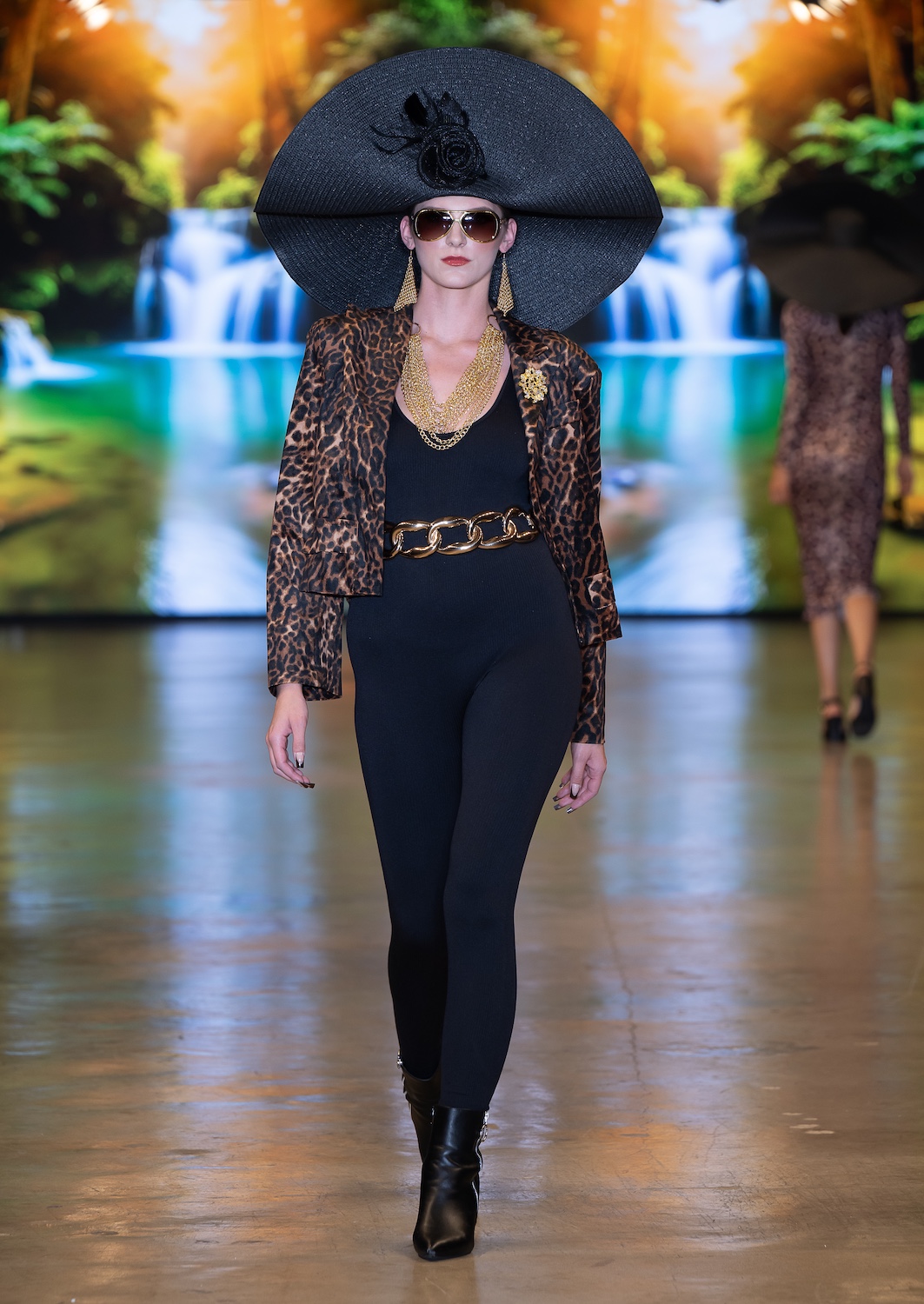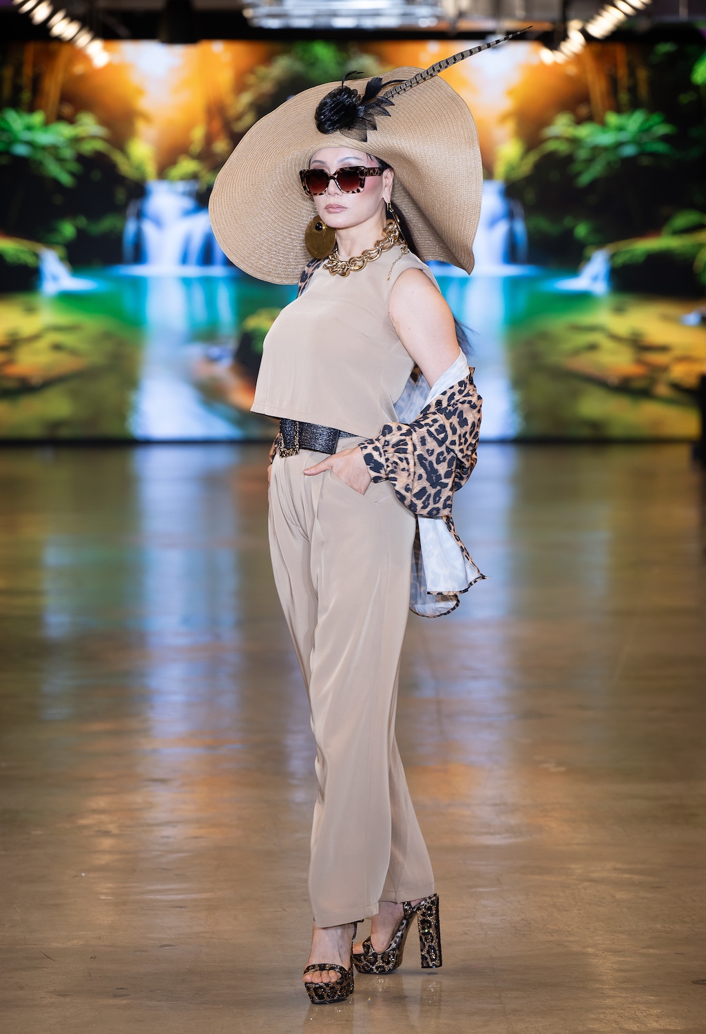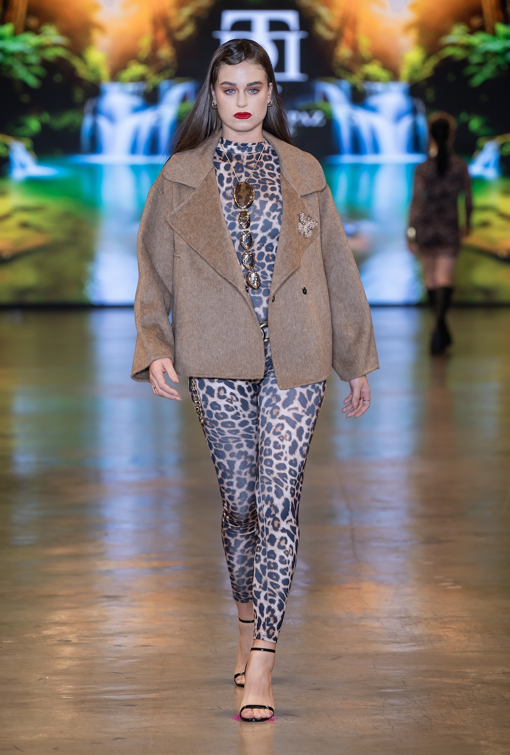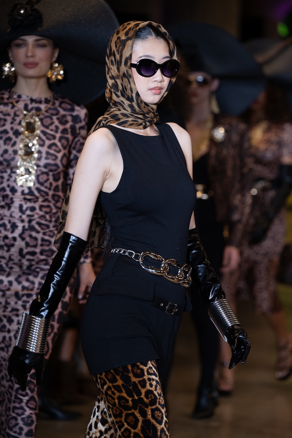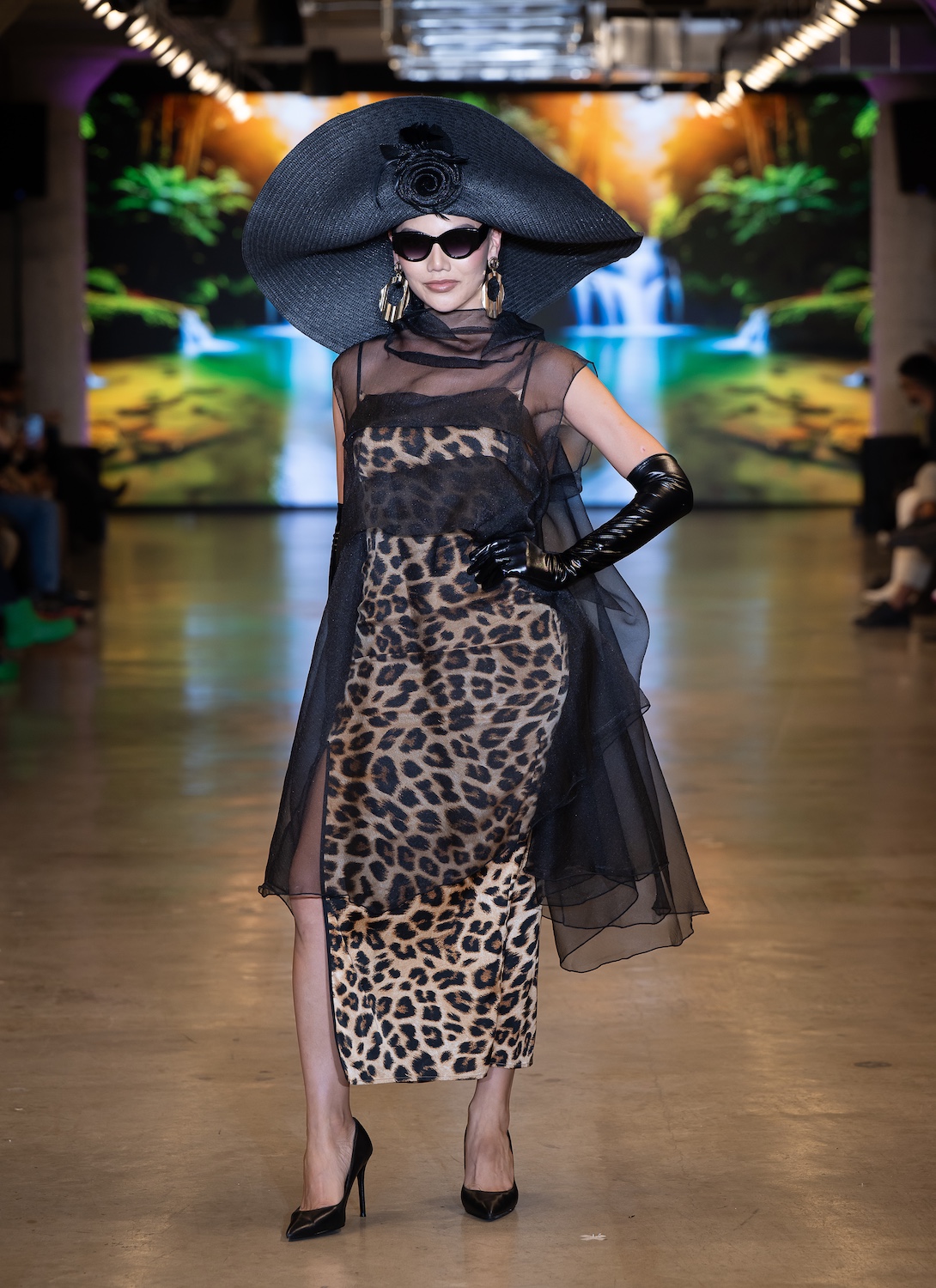 LOS ANGELES, CALIFORNIA - OCTOBER 16: Model Net CH walks the runway at the David Tupaz show during Los Angeles Fashion Week Powered By Art Hearts Fashion at The New Mart on October 16, 2025 in Los Angeles, California. (Photo by Mark Gunter/Getty Images for Art Hearts Fashion)