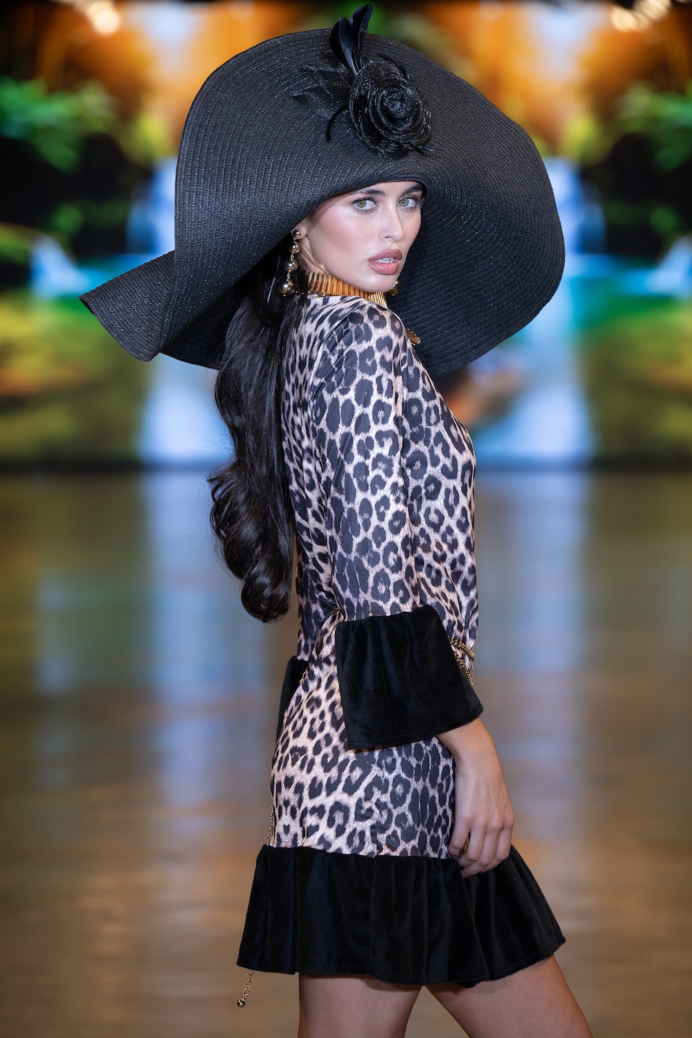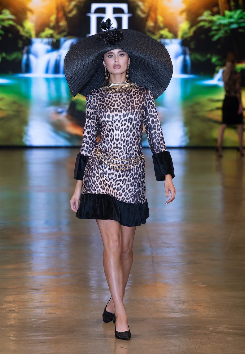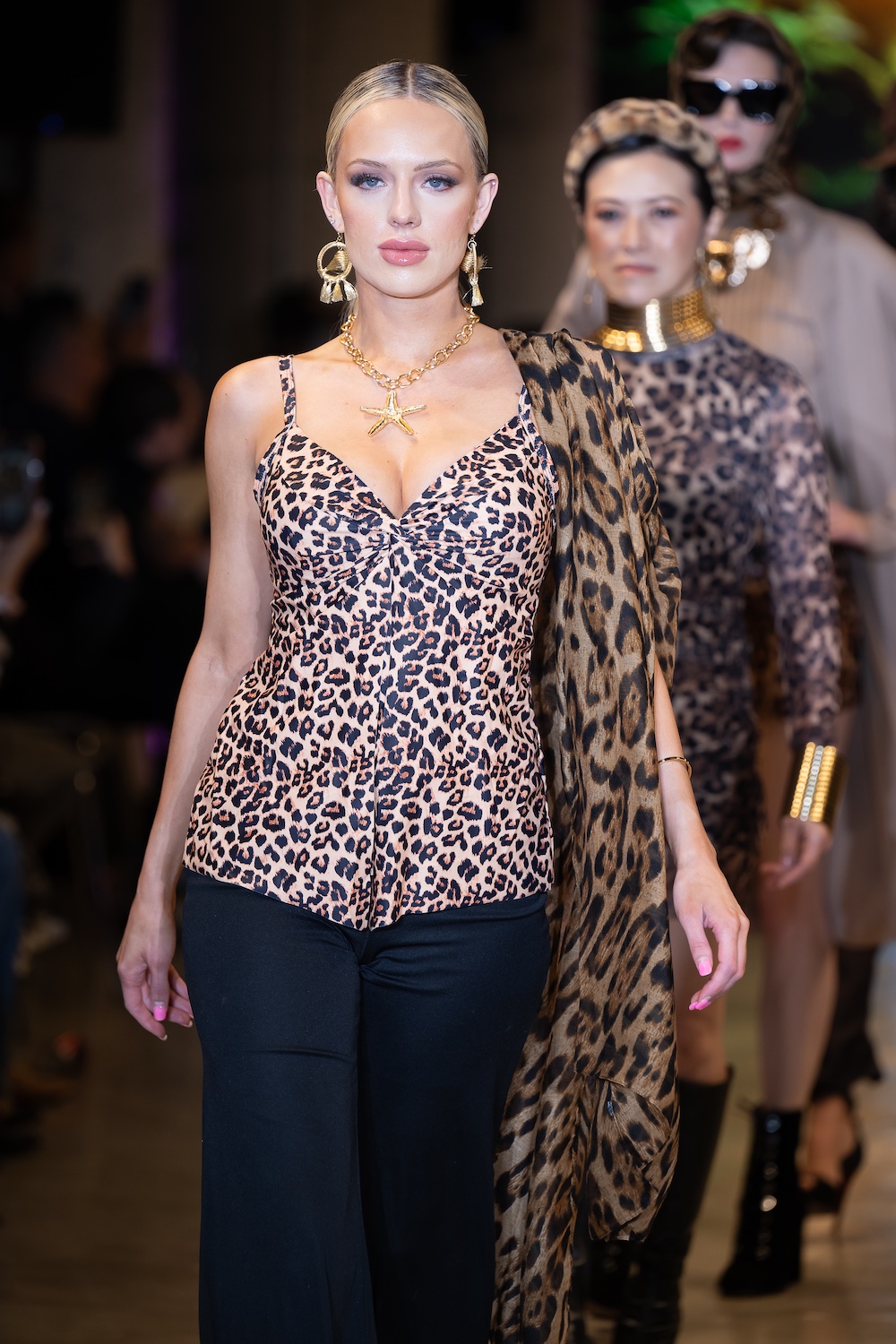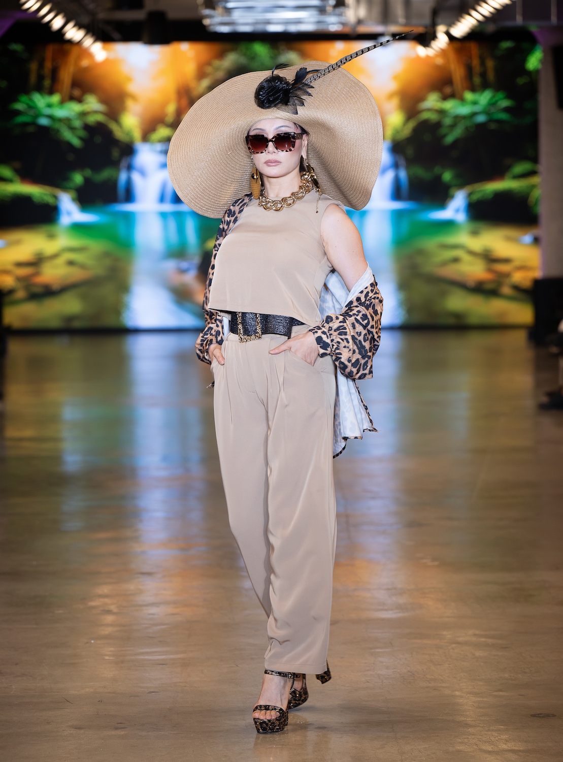 LOS ANGELES, CALIFORNIA - OCTOBER 16: Model Net CH walks the runway at the David Tupaz show during Los Angeles Fashion Week Powered By Art Hearts Fashion at The New Mart on October 16, 2025 in Los Angeles, California. (Photo by Mark Gunter/Getty Images for Art Hearts Fashion)