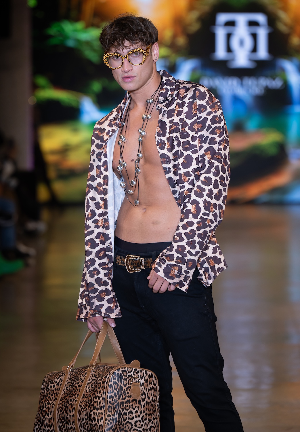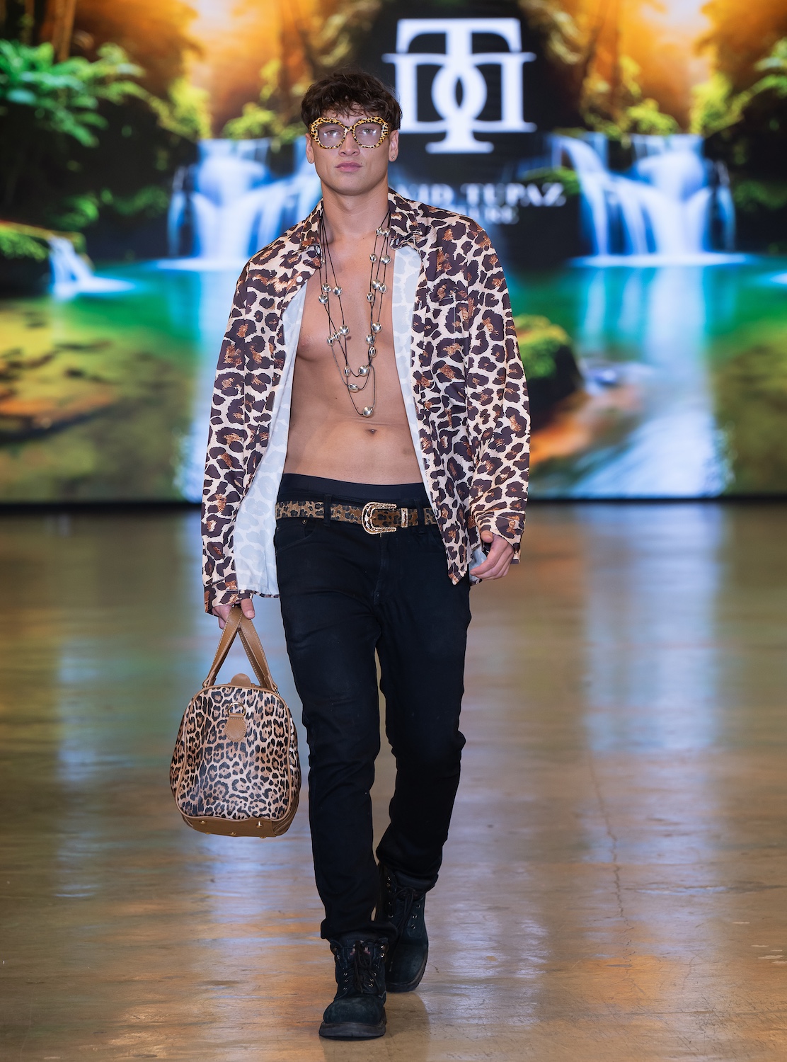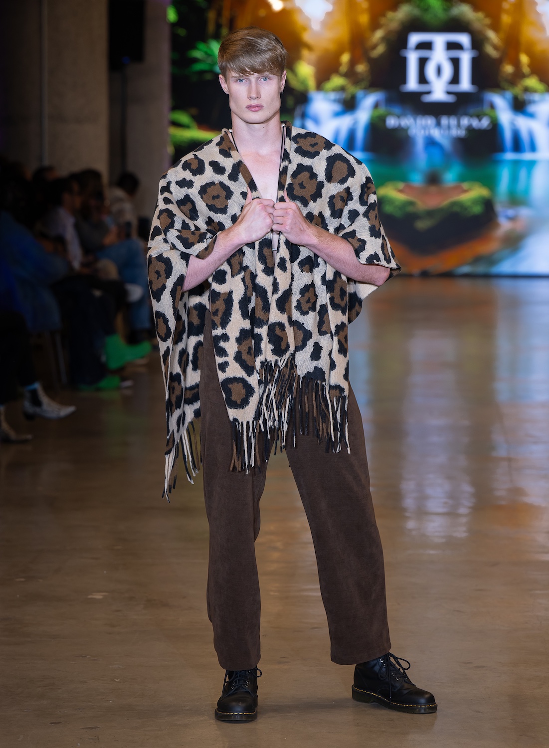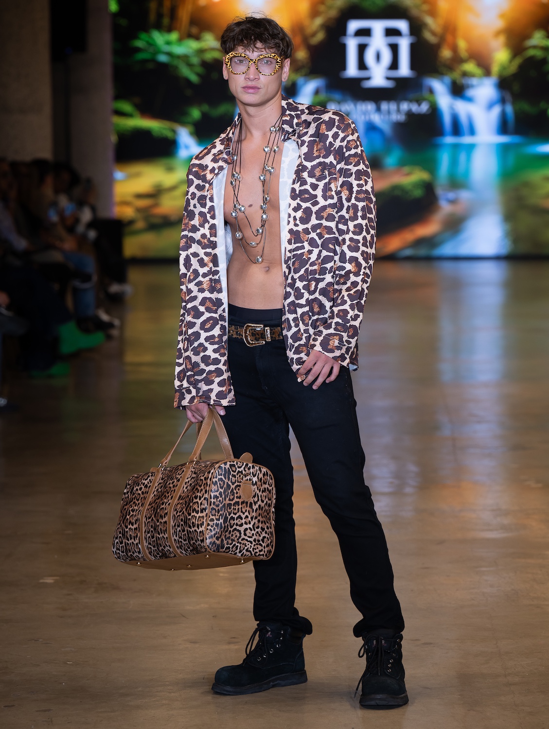 LOS ANGELES, CALIFORNIA - OCTOBER 16: Model James Barranca walks the runway at the David Tupaz show during Los Angeles Fashion Week Powered By Art Hearts Fashion at The New Mart on October 16, 2025 in Los Angeles, California. (Photo by Mark Gunter/Getty Images for Art Hearts Fashion)