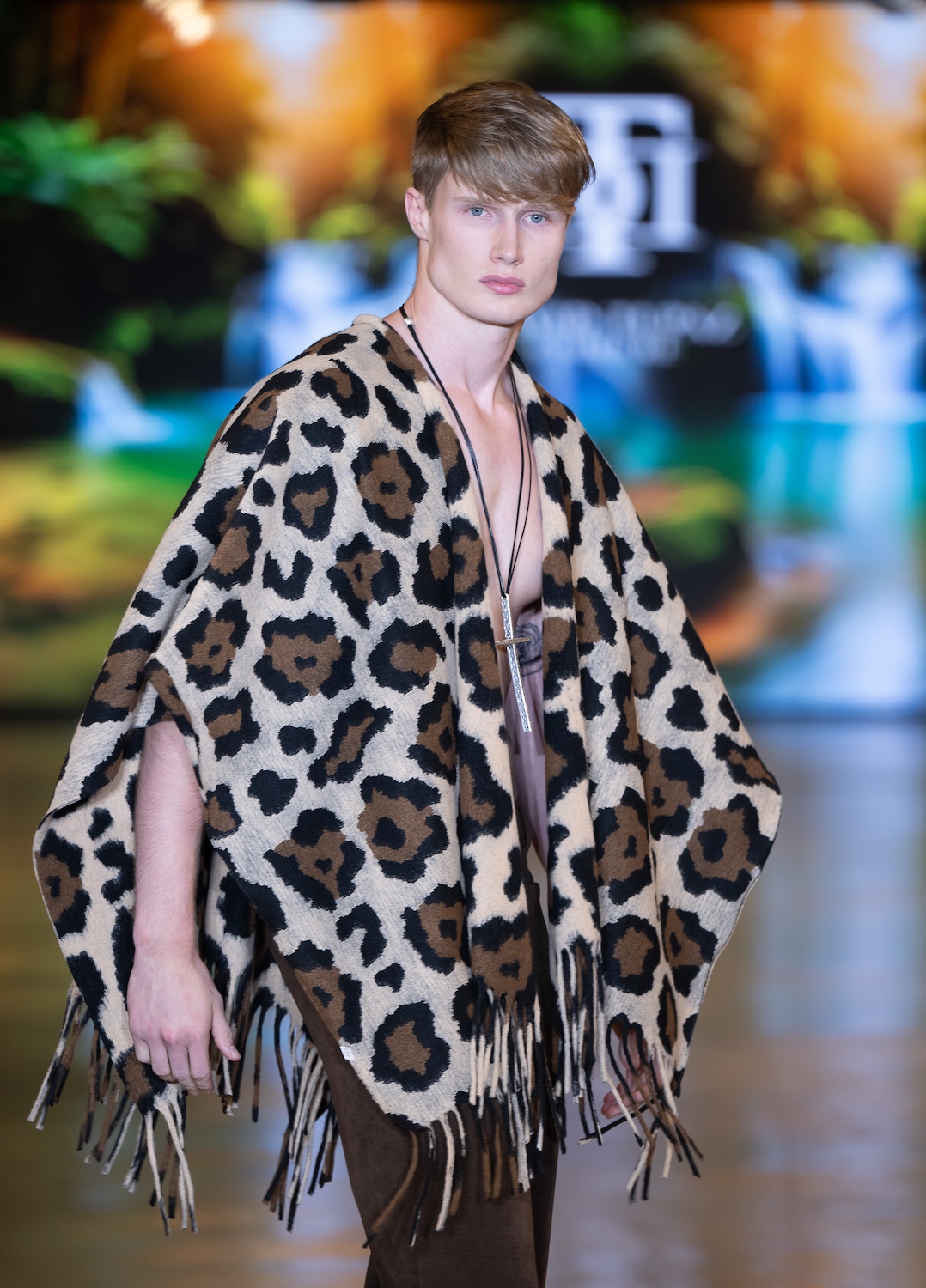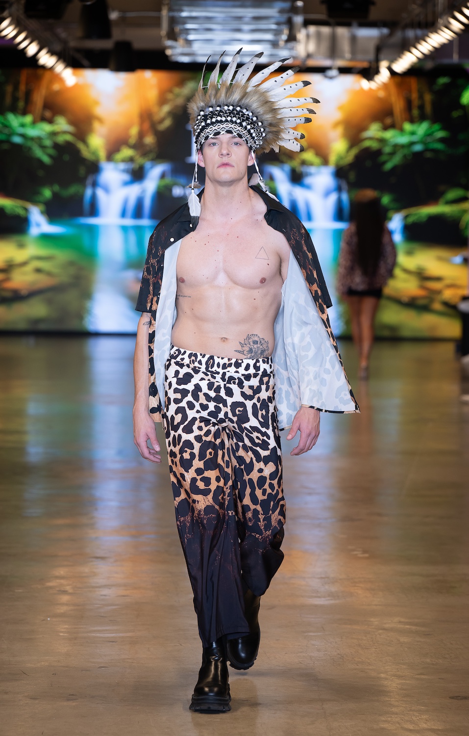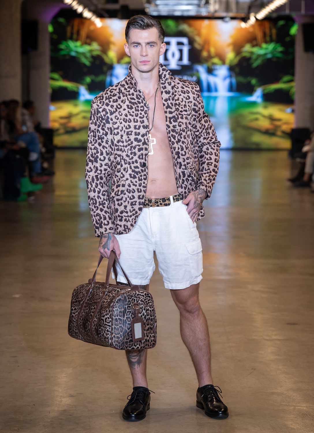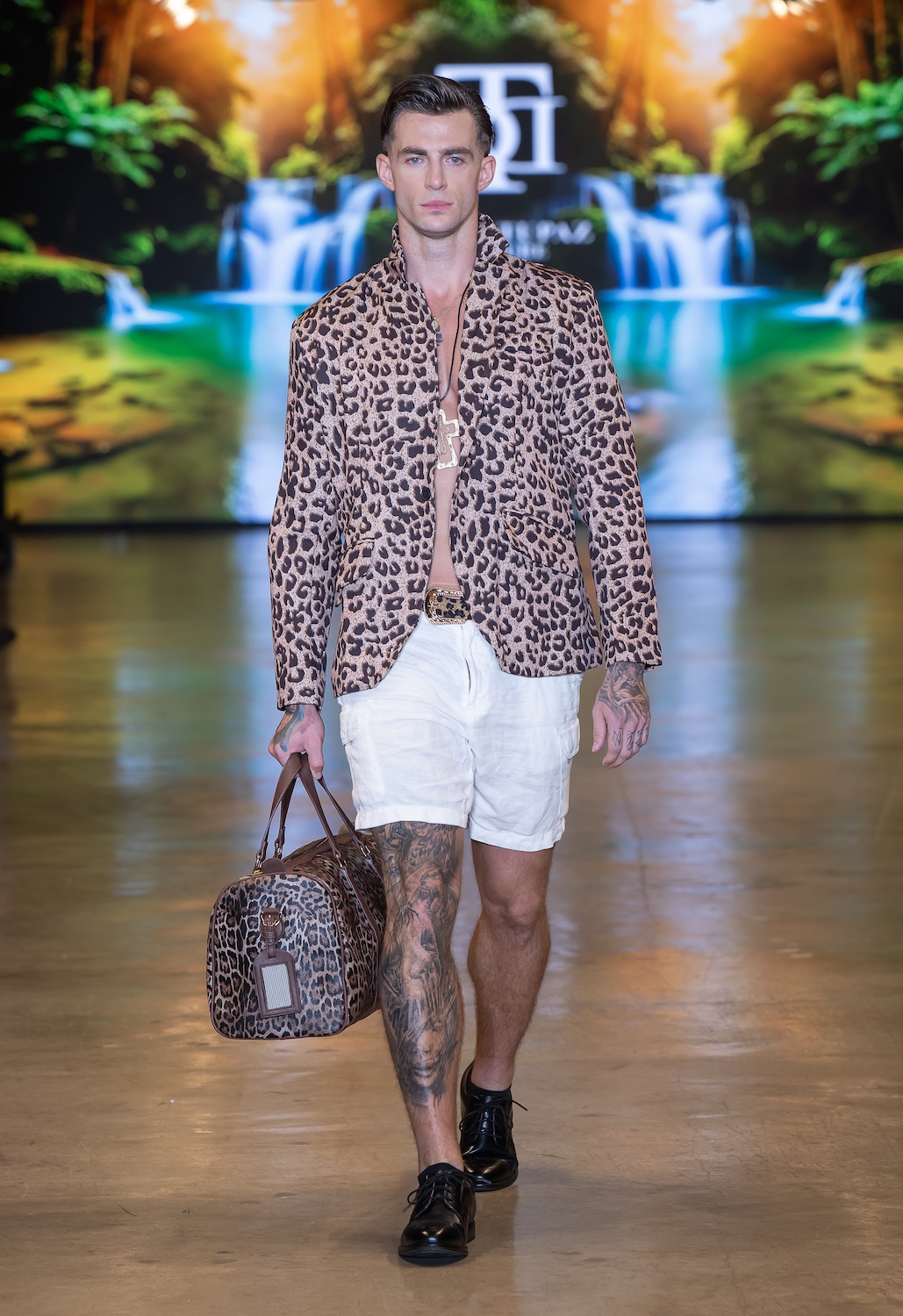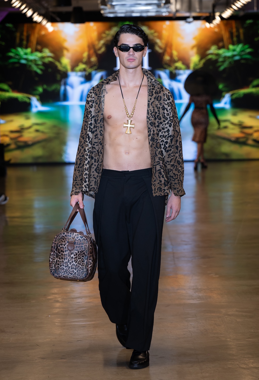 LOS ANGELES, CALIFORNIA - OCTOBER 16: Model James Barranca walks the runway at the David Tupaz show during Los Angeles Fashion Week Powered By Art Hearts Fashion at The New Mart on October 16, 2025 in Los Angeles, California. (Photo by Mark Gunter/Getty Images for Art Hearts Fashion)