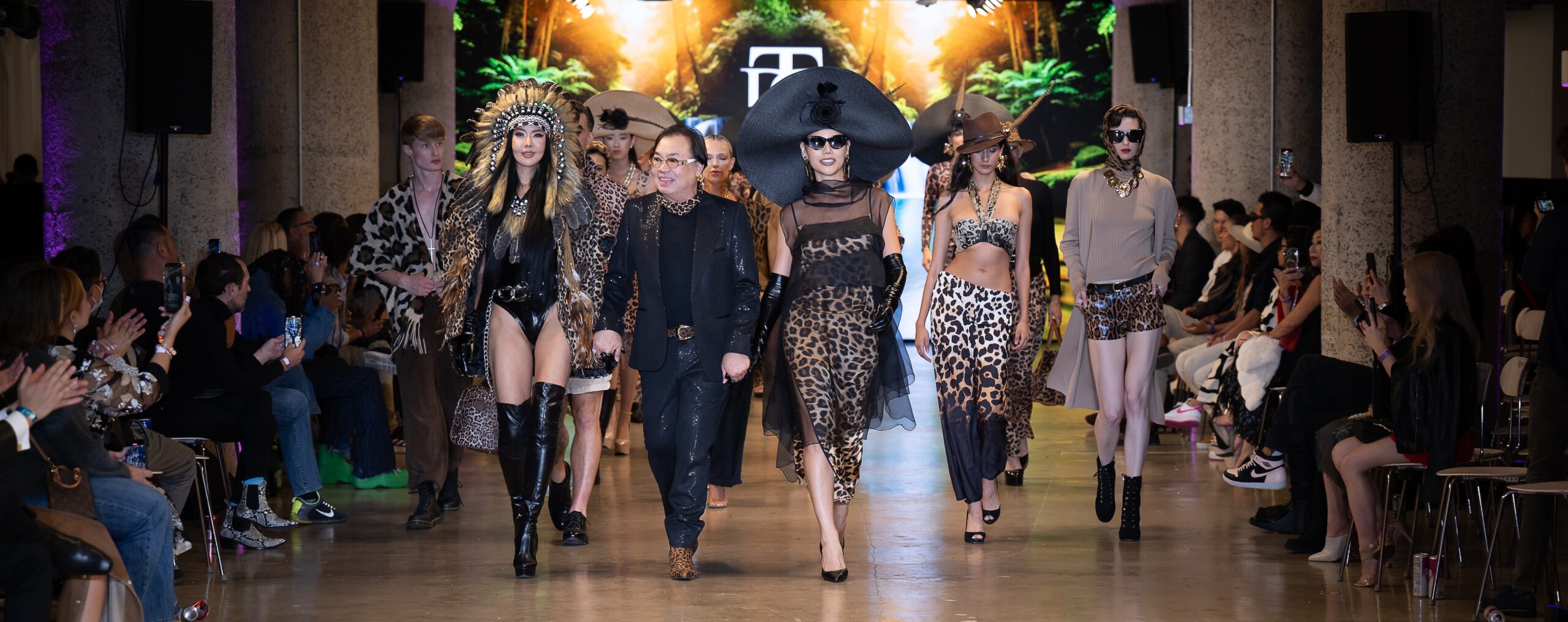 LOS ANGELES, CALIFORNIA - OCTOBER 16: Designer David Tupaz and models walk the runway at the David Tupaz show during Los Angeles Fashion Week Powered By Art Hearts Fashion at The New Mart on October 16, 2025 in Los Angeles, California. (Photo by Mark Gunter/Getty Images for Art Hearts Fashion)