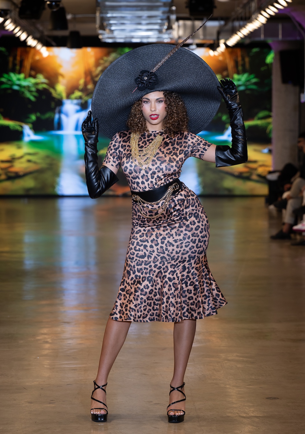 LOS ANGELES, CALIFORNIA - OCTOBER 16: A model walks the runway at the David Tupaz show during Los Angeles Fashion Week Powered By Art Hearts Fashion at The New Mart on October 16, 2025 in Los Angeles, California. (Photo by Mark Gunter/Getty Images for Art Hearts Fashion)