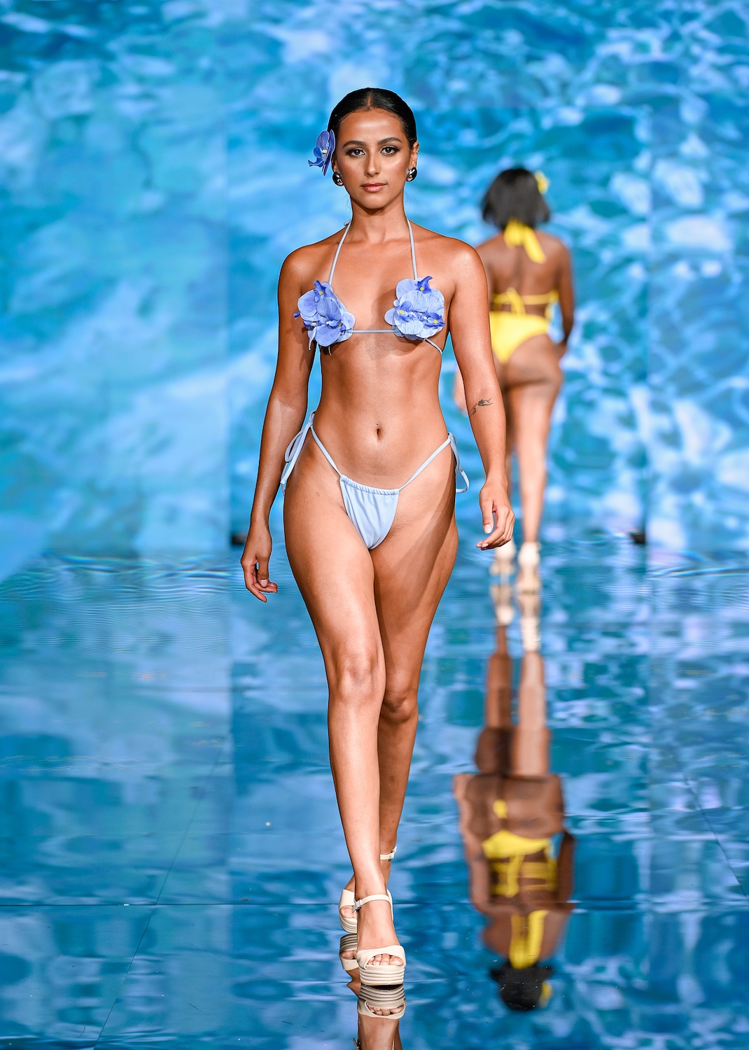 MIAMI BEACH, FLORIDA - MAY 30: Pollito Tropical walks the runway at the Diva Couture show during Miami Swim Week Powered By Art Hearts Fashion at Eden Roc Hotel on May 30, 2025 in Miami Beach, Florida. (Photo by Arun Nevader/Getty Images for Art Hearts Fashion)