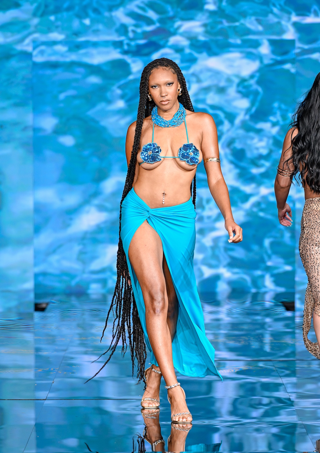 MIAMI BEACH, FLORIDA - MAY 30: Eva Quiala walks the runway at the Diva Couture Show during Miami Swim Week Powered By Art Hearts Fashion at Eden Roc Hotel on May 30, 2025 in Miami Beach, Florida. (Photo by Arun Nevader/Getty Images for Art Hearts Fashion)