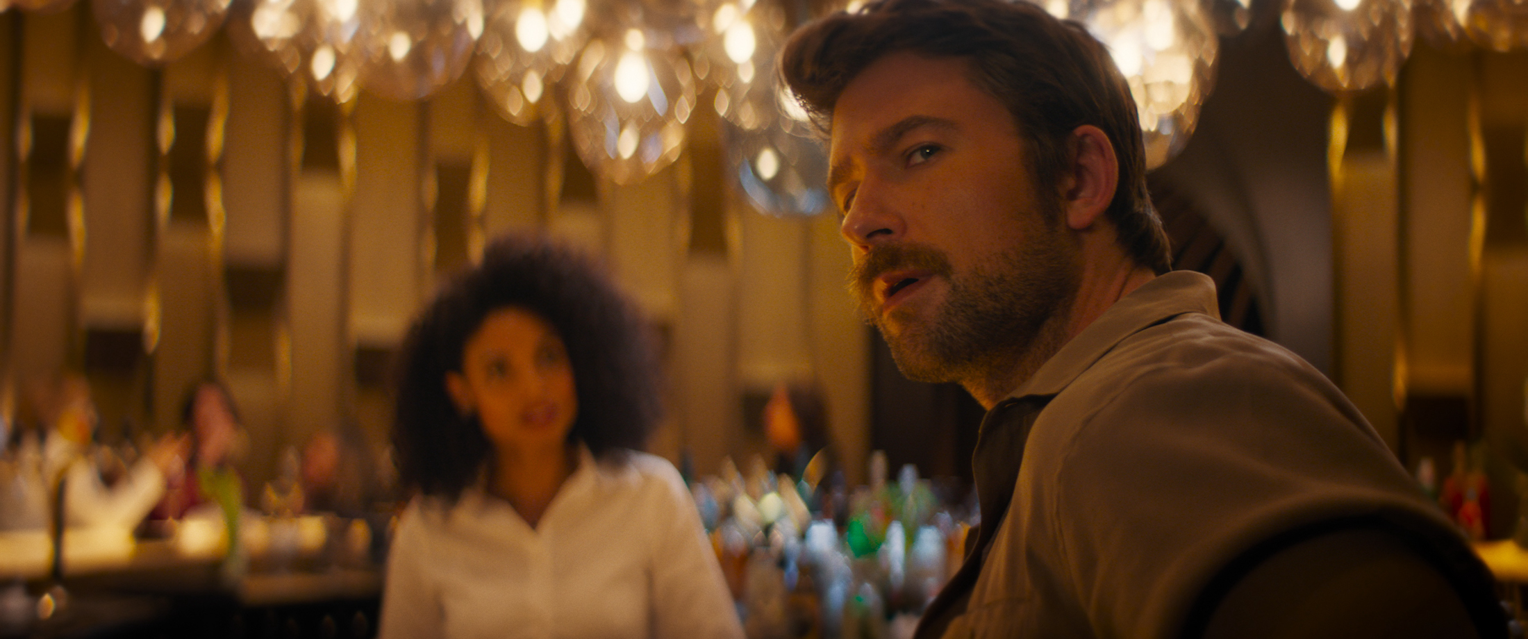 (from left) Violet (Meghann Fahy) and Henry (Brandon Sklenar) in Drop, directed by Christopher Landon.