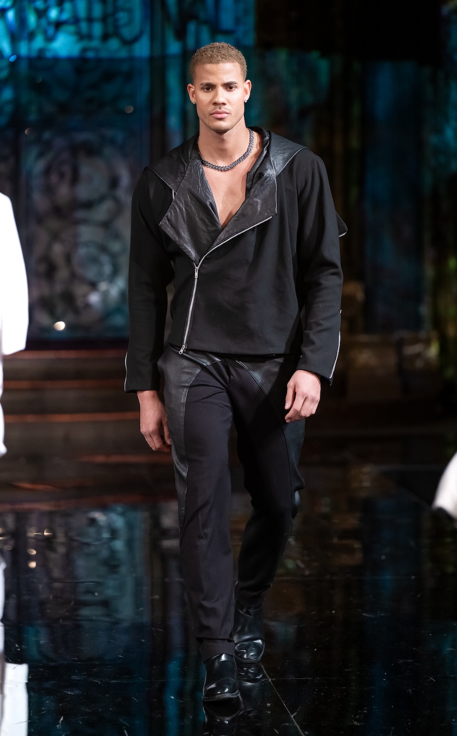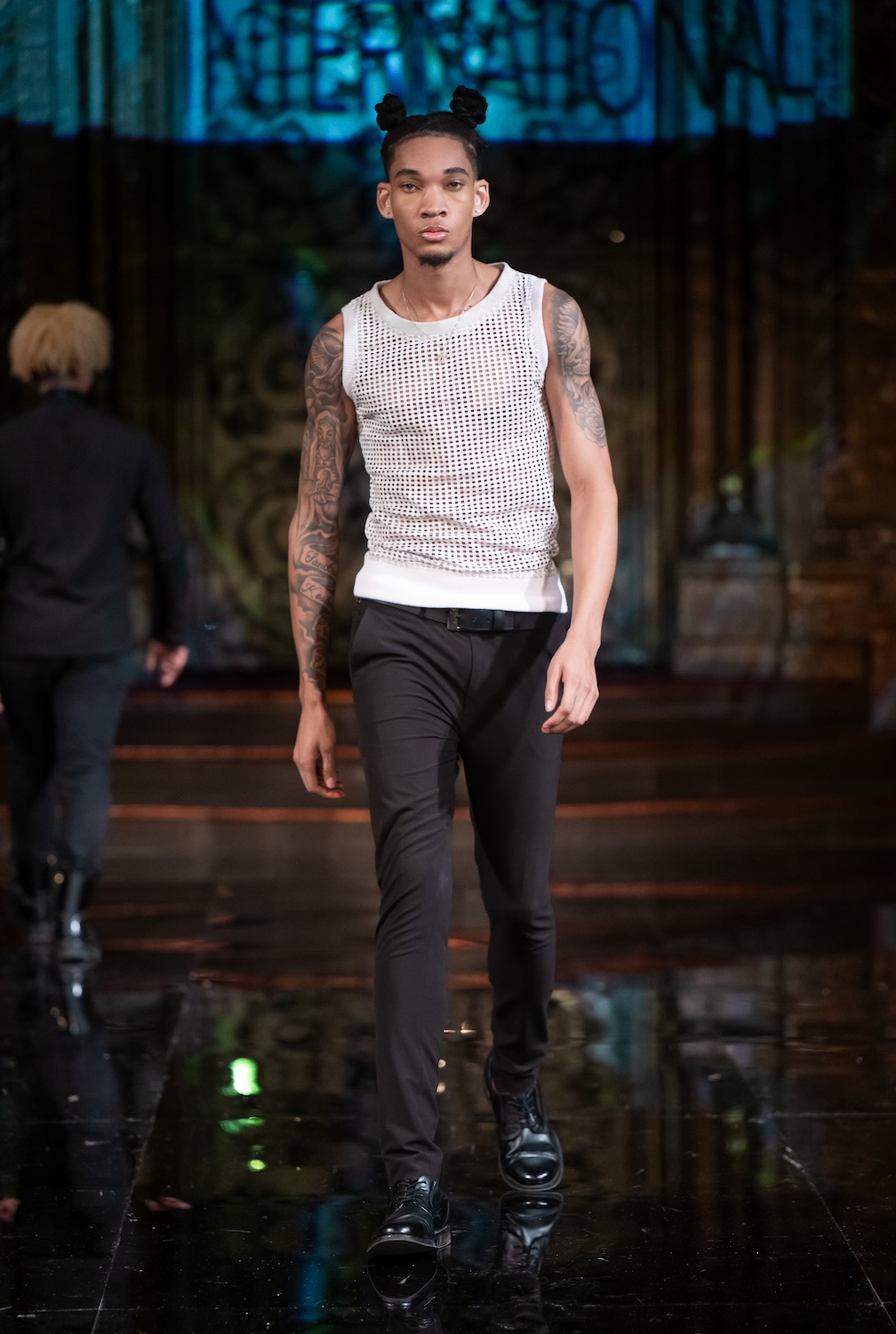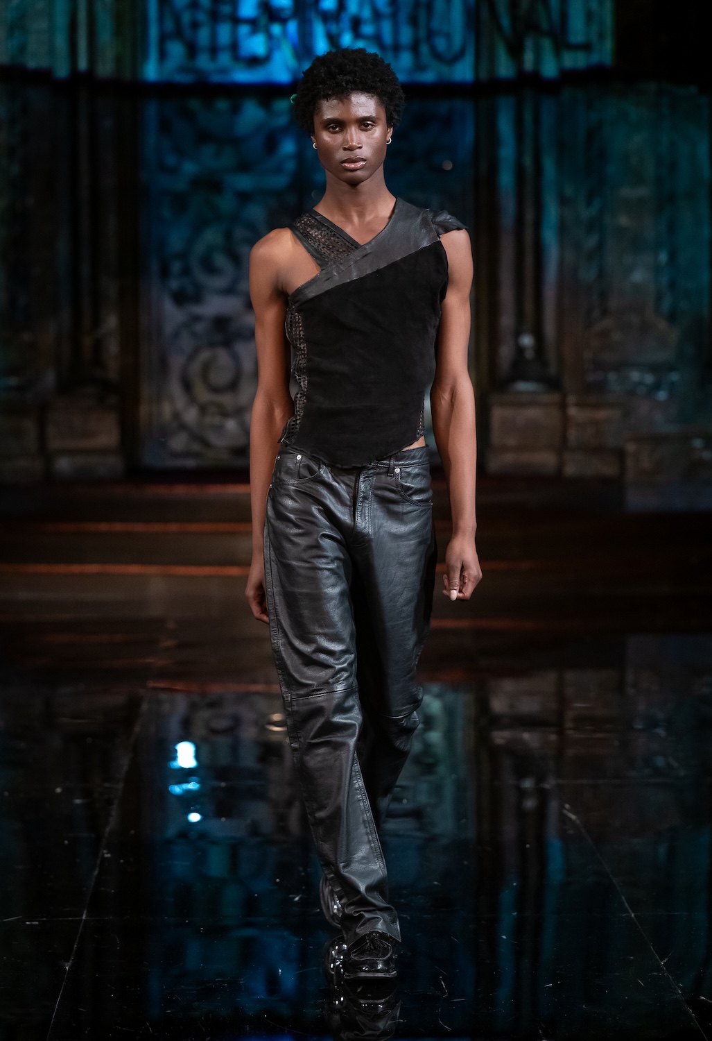 NEW YORK, NEW YORK - FEBRUARY 13: A model walks the runway at the George Styler show during New York Fashion Week Powered By Art Hearts Fashion at The Angel Orensanz Foundation on February 13, 2026 in New York City. (Photo by Mark Gunter/Getty Images for Art Hearts Fashion)