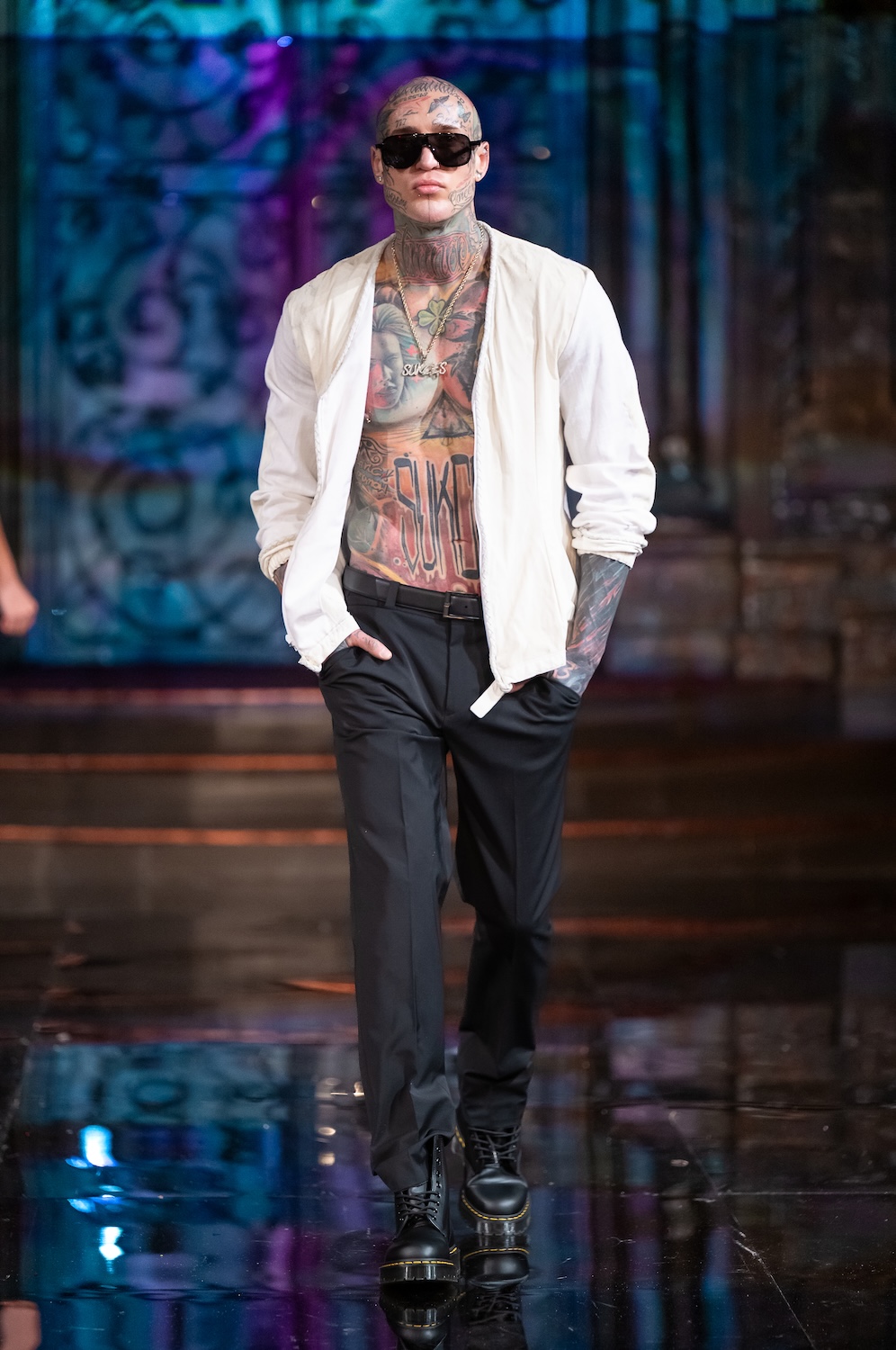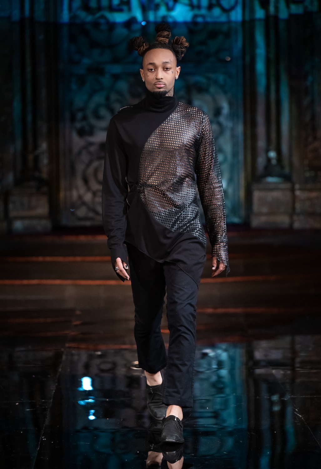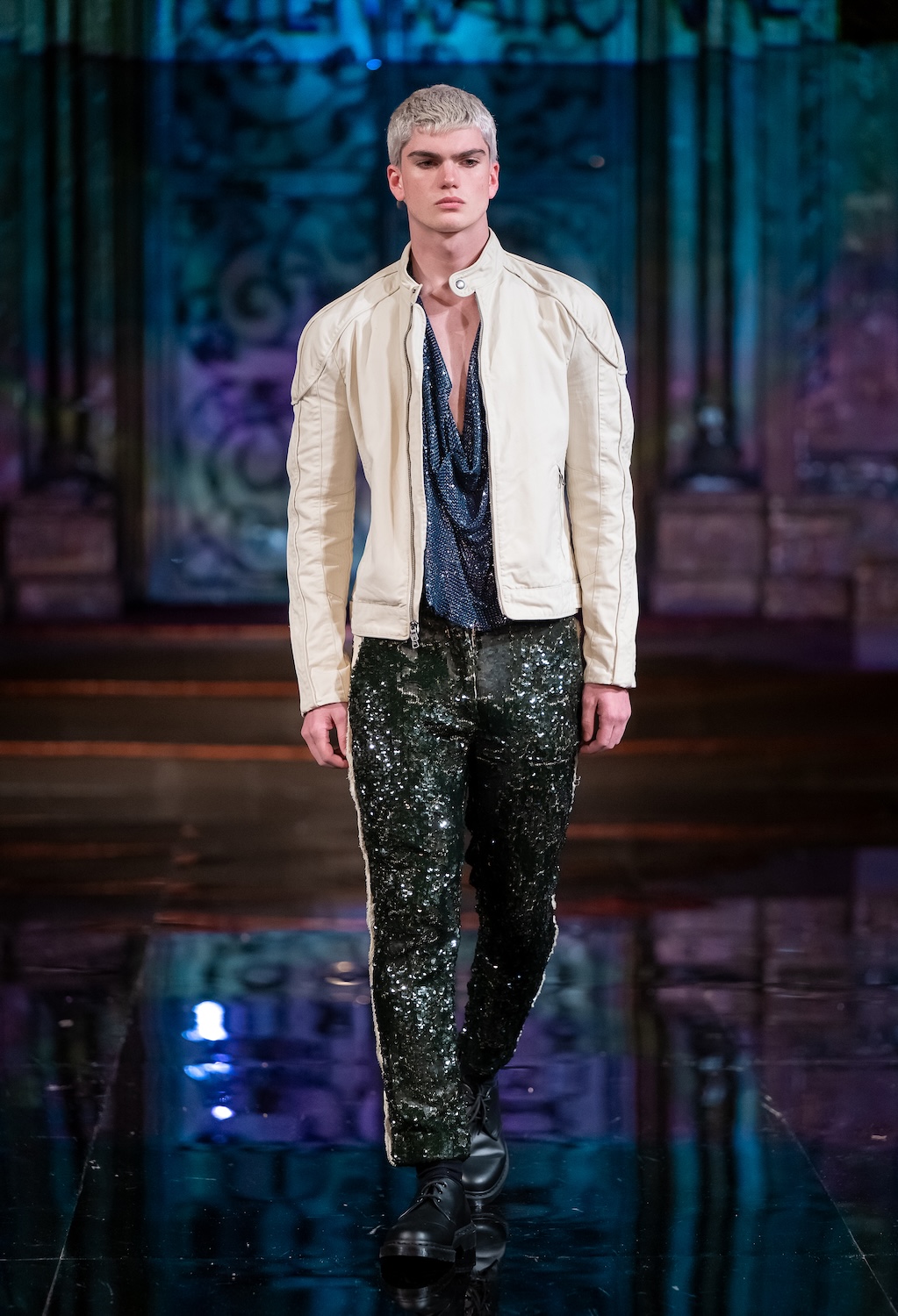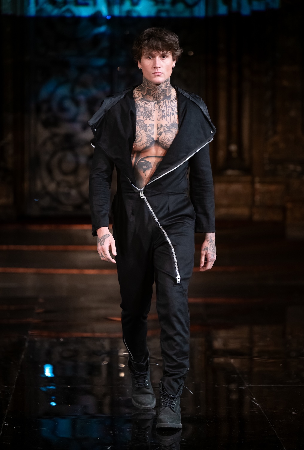 NEW YORK, NEW YORK - FEBRUARY 13: A model walks the runway at the George Styler show during New York Fashion Week Powered By Art Hearts Fashion at The Angel Orensanz Foundation on February 13, 2026 in New York City. (Photo by Mark Gunter/Getty Images for Art Hearts Fashion)